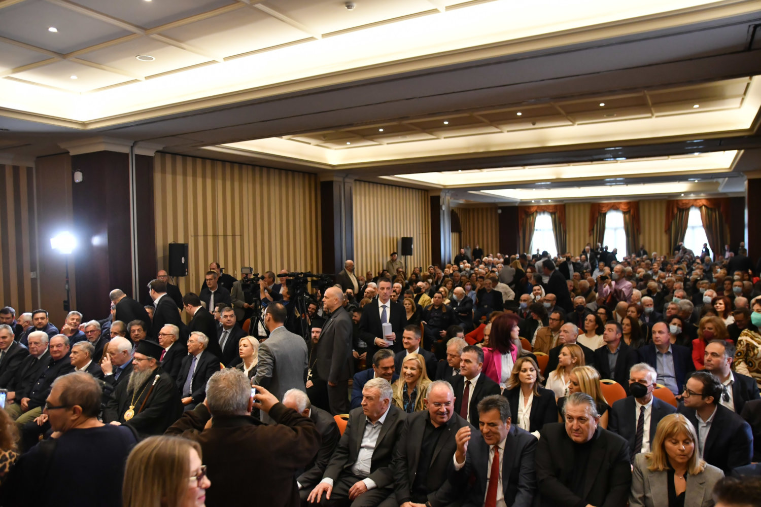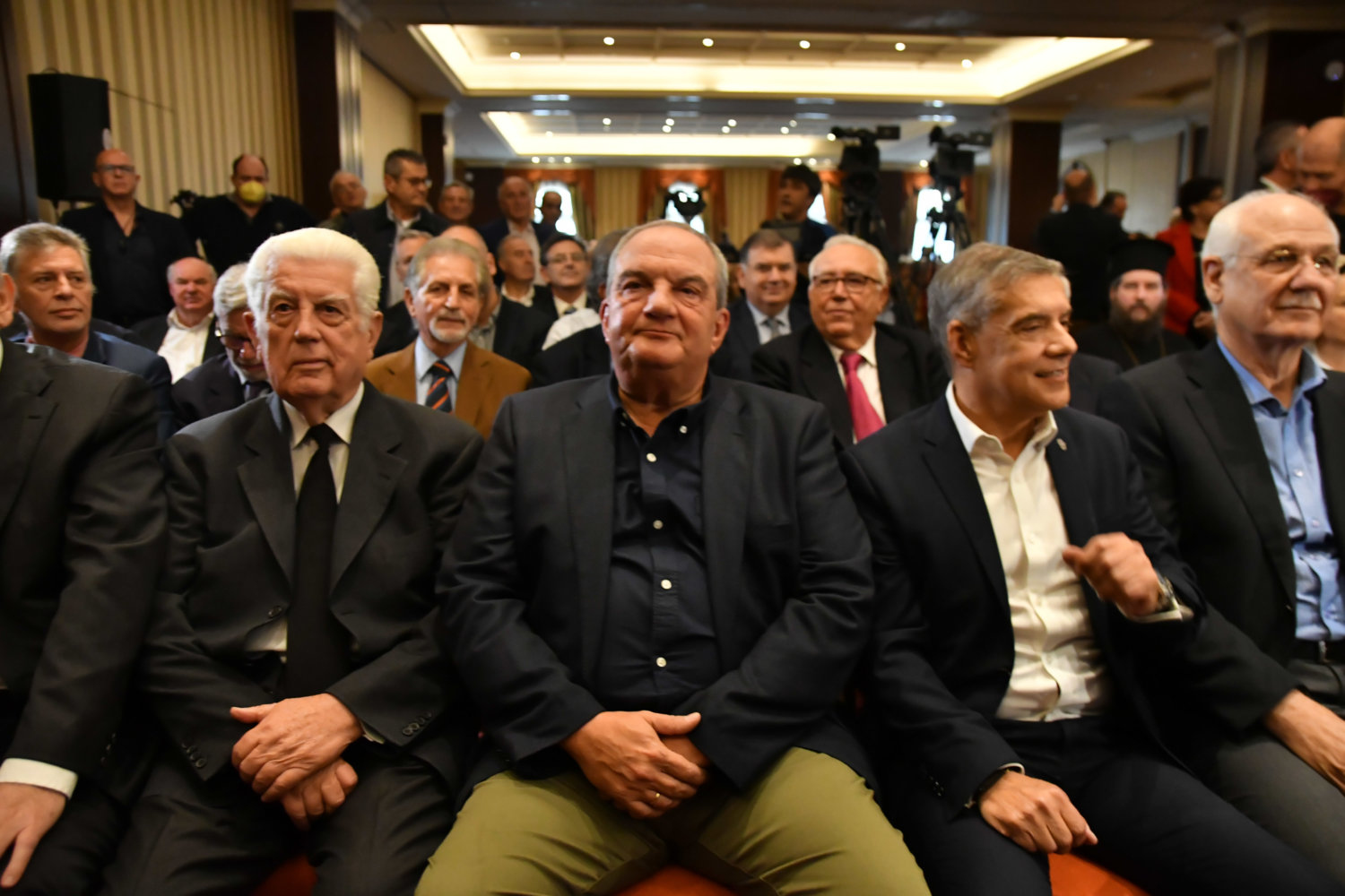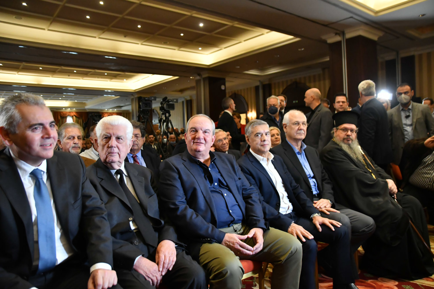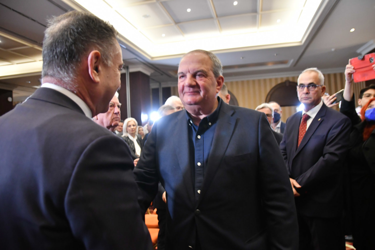 Η αίθουσα στο ξενοδοχείο «Imperial» είναι κατάμεστη, ενώ ο Κ. Καραμανλής ευδιάθετος συνομίλησε με όσους κατάφεραν να τον πλησιάσουν.