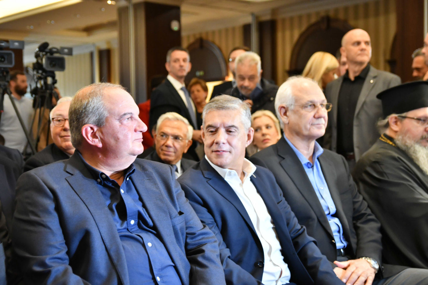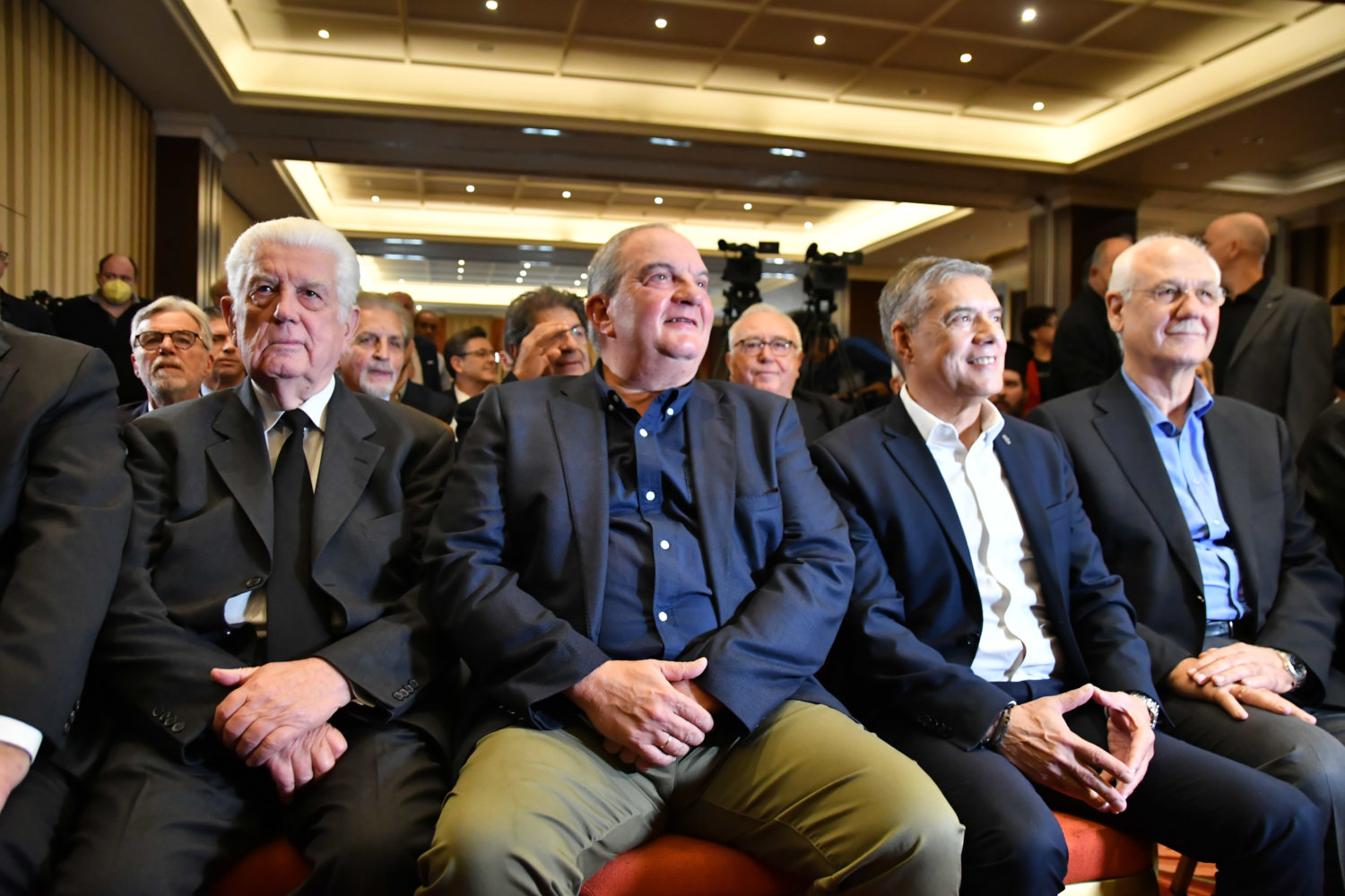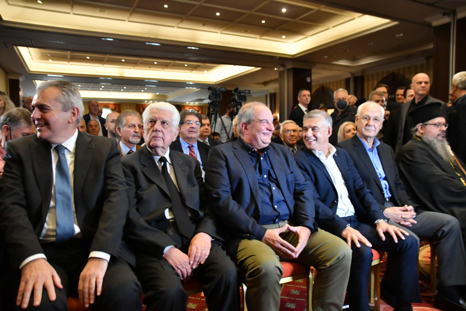 Η αίθουσα στο ξενοδοχείο «Imperial» είναι κατάμεστη, ενώ ο Κ. Καραμανλής ευδιάθετος συνομίλησε με όσους κατάφεραν να τον πλησιάσουν.