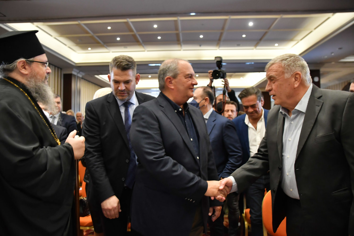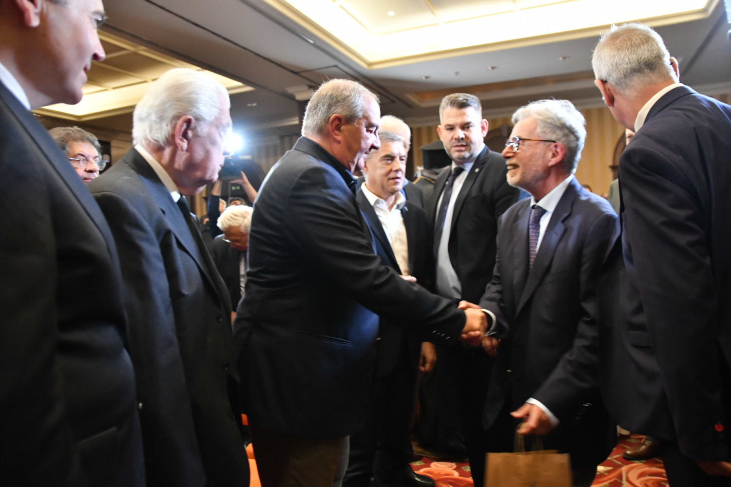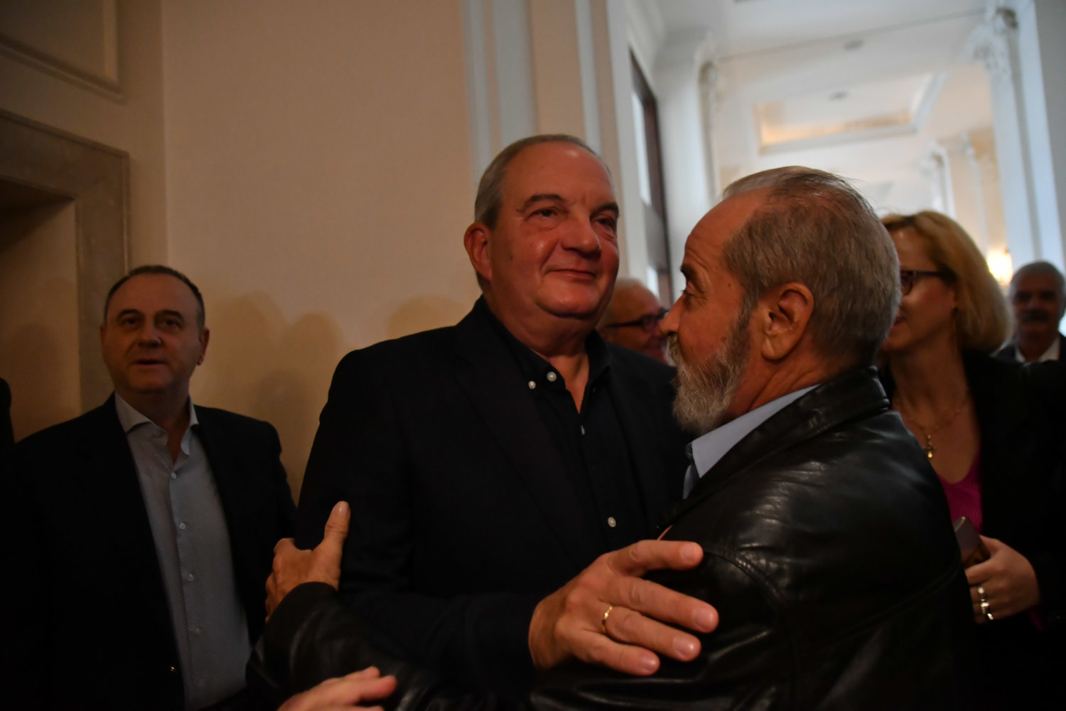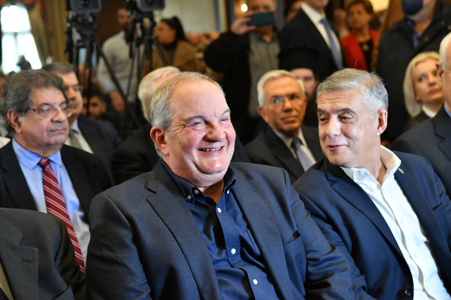 Η αίθουσα στο ξενοδοχείο «Imperial» είναι κατάμεστη, ενώ ο Κ. Καραμανλής ευδιάθετος συνομίλησε με όσους κατάφεραν να τον πλησιάσουν.