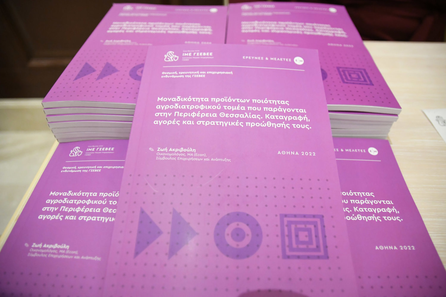 Παρουσιάστηκε σήμερα το απόγευμα από το ΙΜΕ ΓΣΕΒΕΕ παρουσιάζει η μελέτη της οικονομολόγου Ζωής Ακριβούλη με τίτλο «Μοναδικότητα προϊόντων ποιότητας αγροδιατροφικού τομέα που παράγονται στην Περιφέρεια Θεσσαλίας. Καταγραφή, αγορές και στρατηγικές προώθησής τους».