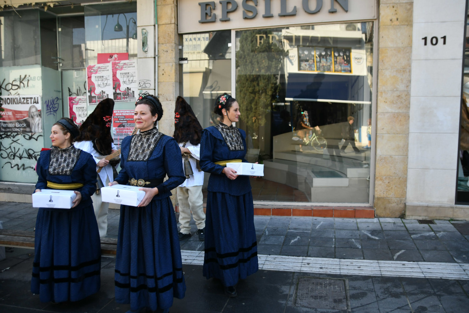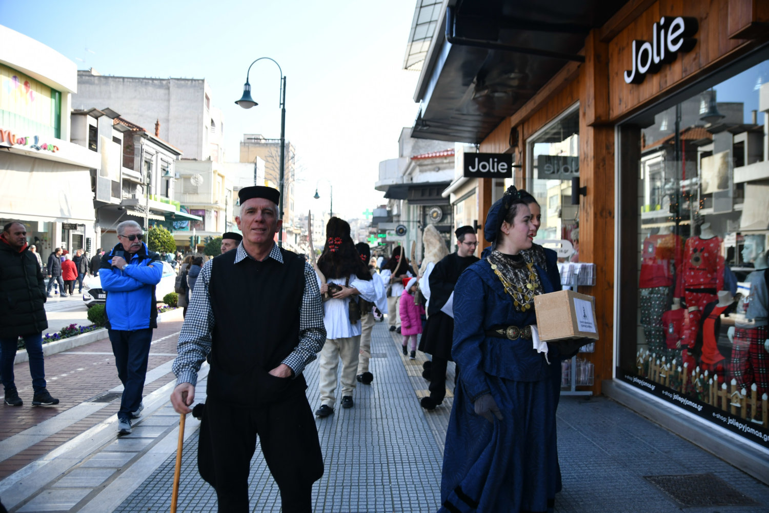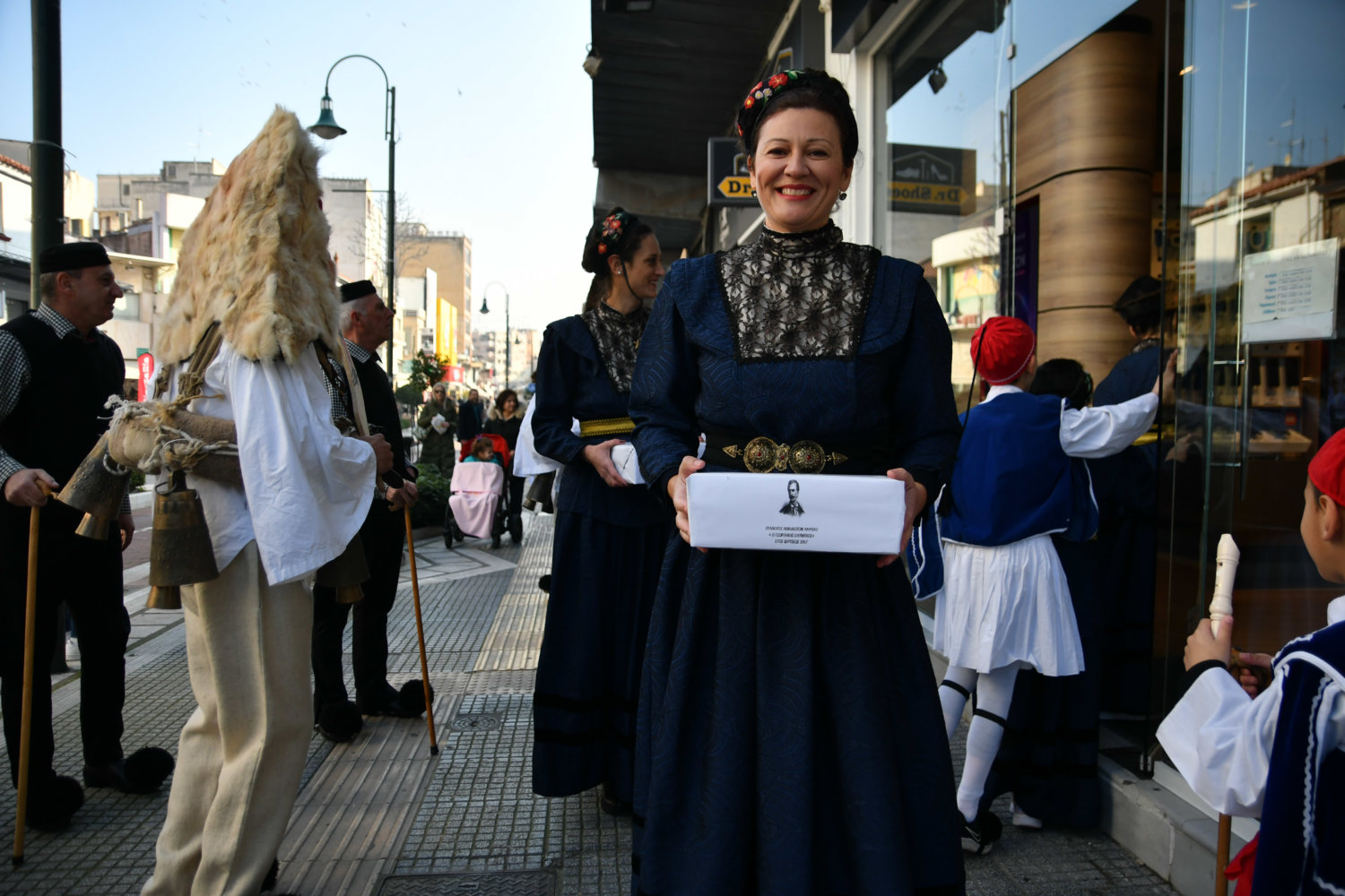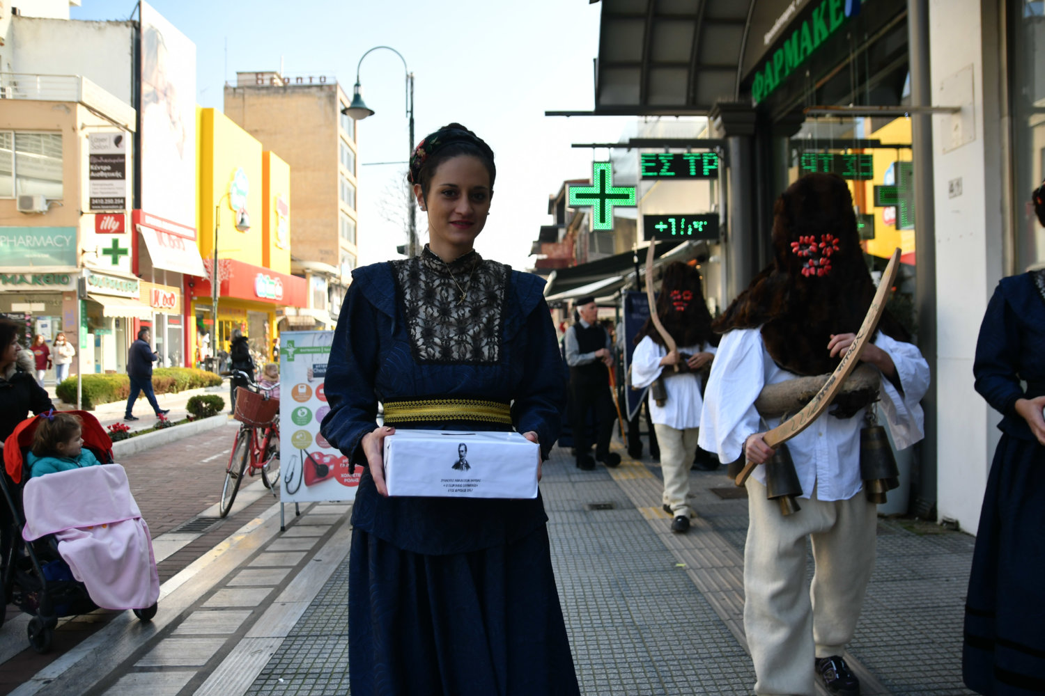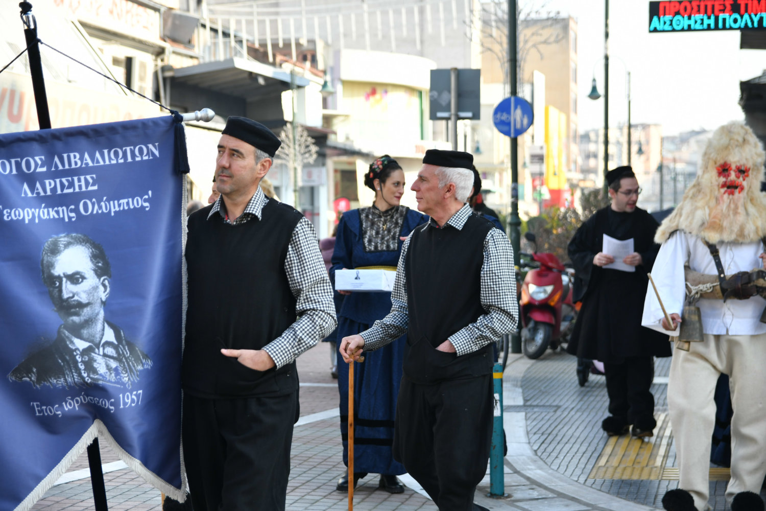 Ο Σύλλογος Λιβαδιωτών Λάρισας «Ο Γεωργάκης Ολύμπιος» με τα μέλη του κινήθηκαν στους κεντρικούς πεζοδρόμους, μπήκαν στα εμπορικά καταστήματα, ενώ έκαναν στάση μπροστά από το Α΄Αρχαίο Θέατρο Λάρισας.