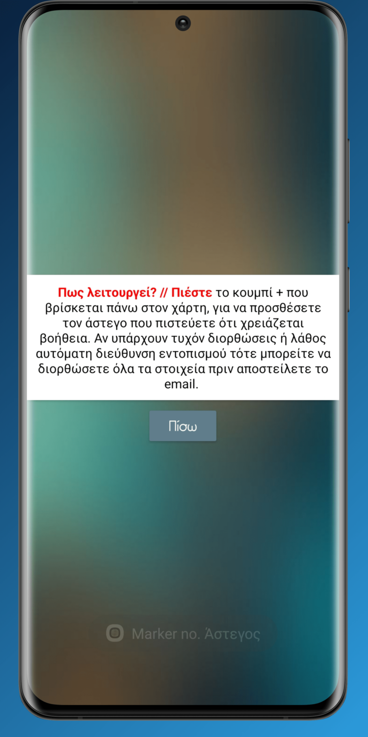 Η εφαρμογή είναι εύχρηστη και απλή ώστε να μπορεί να χρησιμοποιηθεί από όλες τις ηλικίες. Πιέστε το κουμπί + που βρίσκεται πάνω στον χάρτη, για να προσθέσετε τον άστεγο που πιστεύετε ότι χρειάζεται βοήθεια. Κατά την διάρκεια αυτής της διαδικασίας, δημιουργείτε ένα αυτόματο email με τα στοιχεία της τοποθεσίας σας και με τα σχόλια σας έτσι ώστε να σταλθεί στην αρμόδια αρχή βοήθειας αστέγων.