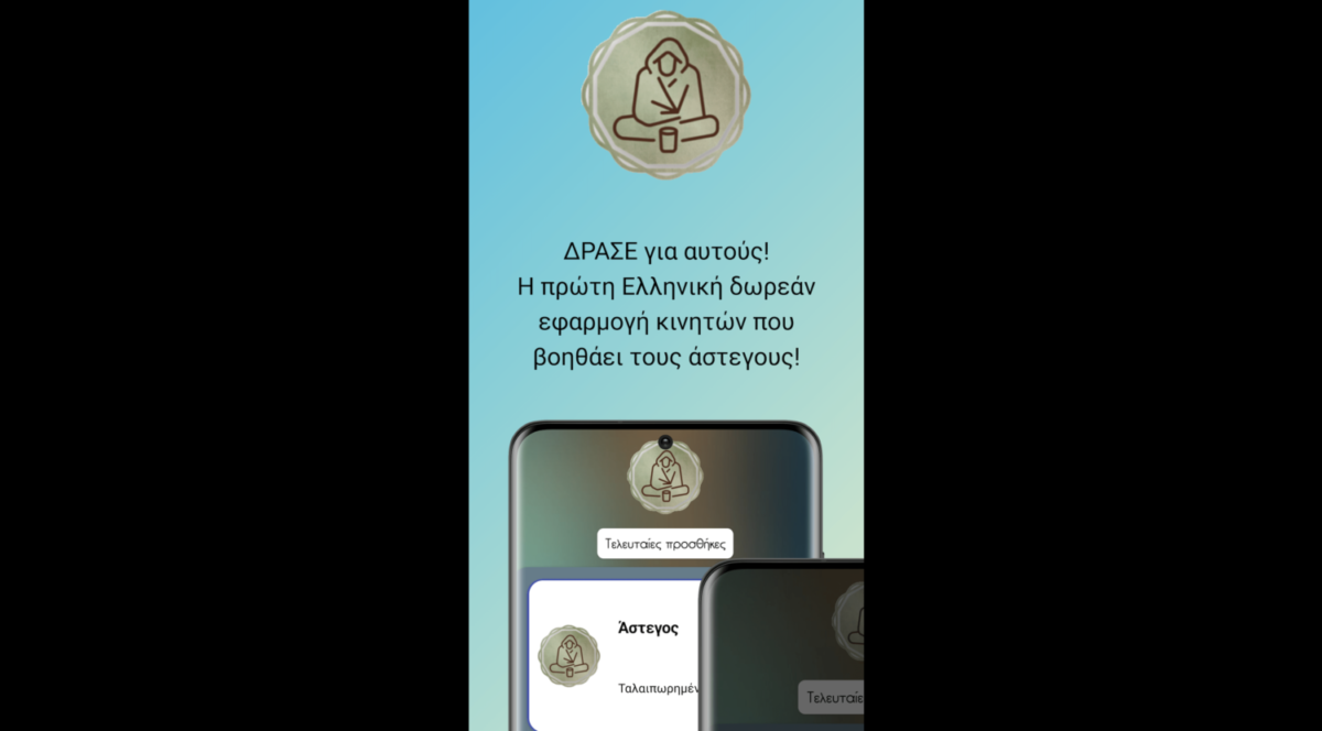 Η “ΔΡΑΣΕ για αυτούς” αποτελεί την πρώτη Ελληνική δωρεάν εφαρμογή κινητών η οποία σου δίνει την δυνατότητα να προσφέρεις βοήθεια σε άστεγους. Με μια μικρή δική σου πρωτοβουλία ο συνάνθρωπος που βρίσκεται υπό δυσμενείς συνθήκες διαβίωσης απέναντι σου μπορεί να σωθεί και να χαμογελάσει ξανά! Αναλυτικότερα, η εφαρμογή σου επιτρέπει να συμπληρώσεις μερικά στοιχεία και αυτόματα στέλνει ένα email στην αντίστοιχη αρχή ώστε εκείνη με την σειρά της να αναλάβει την περίθαλψη και την κατάλληλη στήριξη της ευπαθής αυτής κοινωνικής ομάδας. Στο Email συμπεριλαμβάνεται και η τοποθεσία(GPS) στην οποία δίνει στίγμα ο χρήστης καθορίζοντας την περιοχή που βρίσκεται ο άνθρωπος αυτός, έτσι ώστε να σταλθεί στο αντίστοιχο κέντρο κοινωνικής αλληλεγγύης. Μέσω της εφαρμογής “ΔΡΑΣΕ για αυτούς” μπορείς άμεσα και ευκολά να ειδοποιήσεις για βοήθεια και έτσι να χαρίσεις ελπίδα στους ανθρώπους που πραγματικά το χρειάζονται.