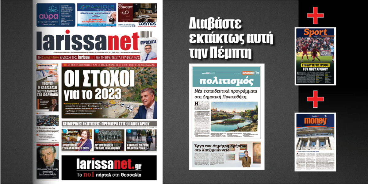 Ρεπορτάζ, άρθρα, συνεντεύξεις και όλο το παρασκήνιο της εβδομάδας στο νέο φύλλο της Larissanet.
