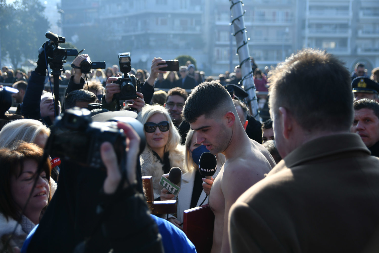 Ο 22χρονος ανθυπολοχαγός Ιωάννης Ζιώγας έπιασε φέτος τον Τίμιο Σταυρό στα νερά του Πηνειού ποταμού, στη Λάρισα…