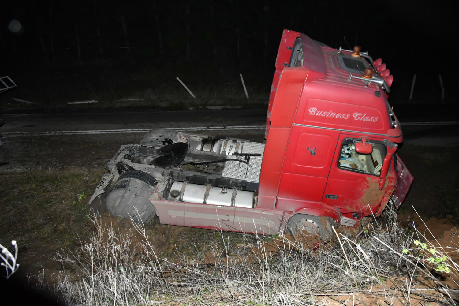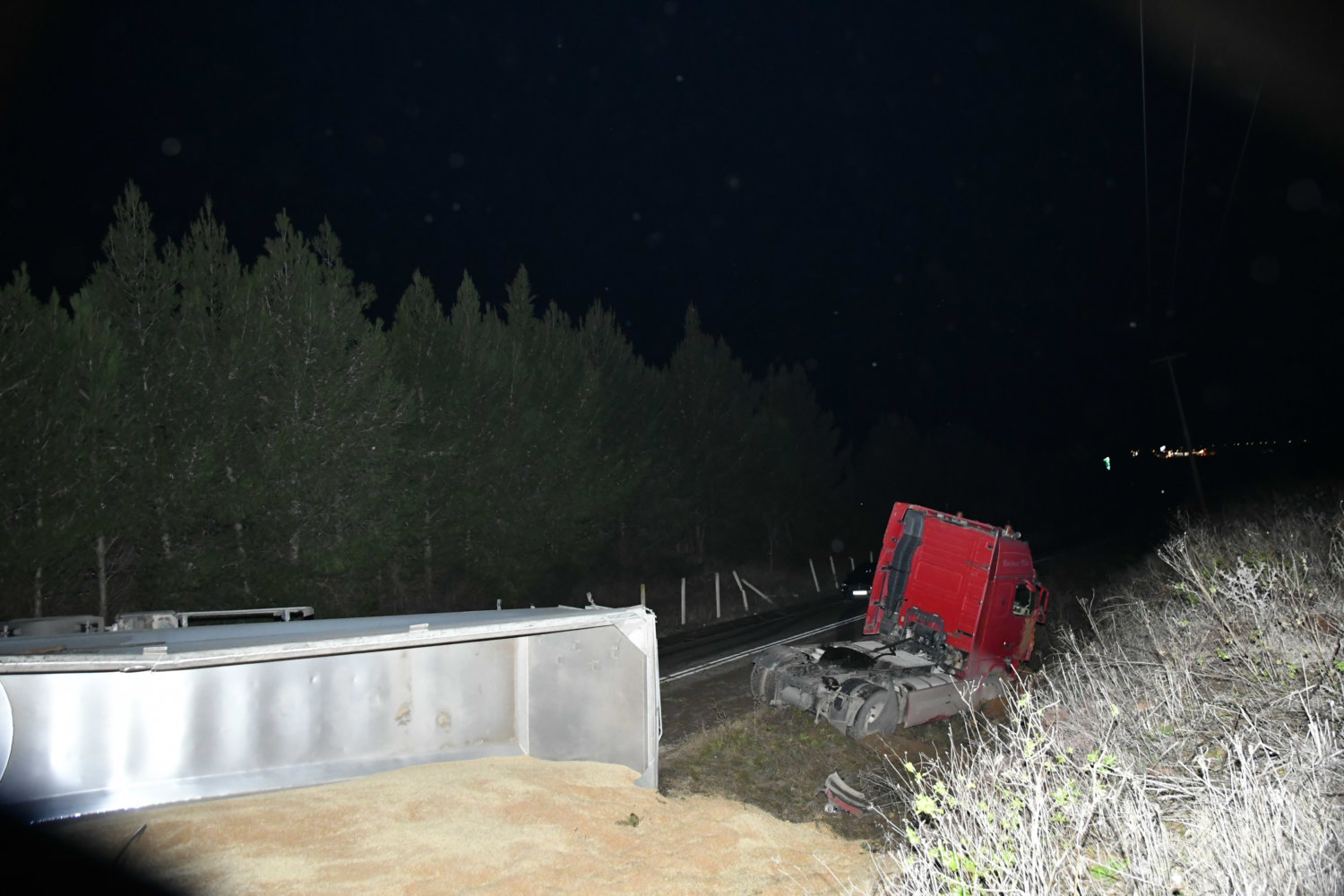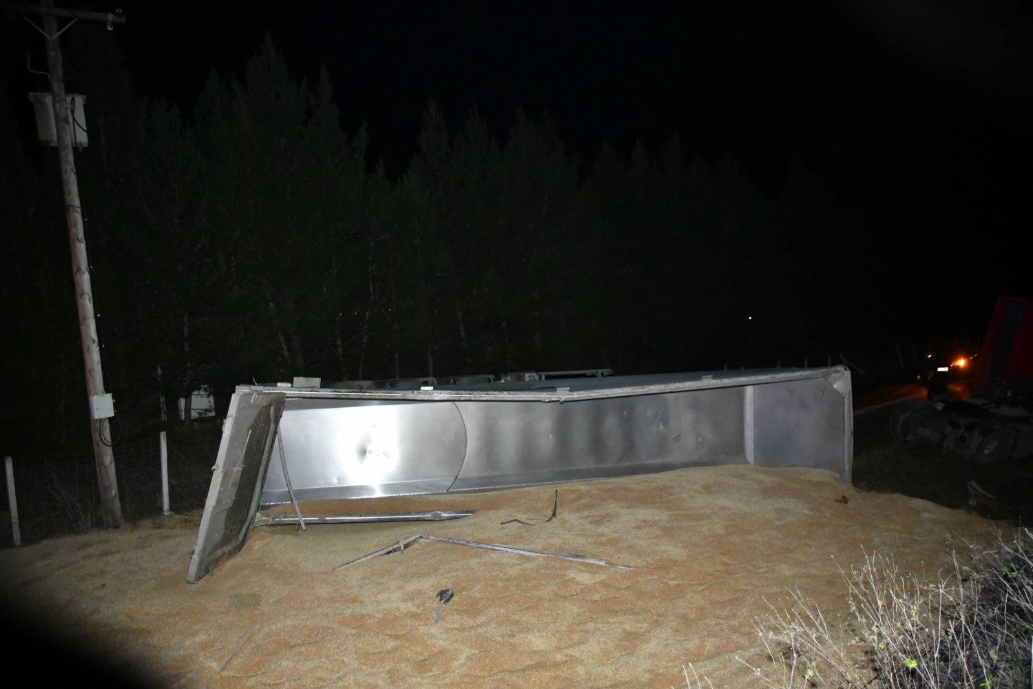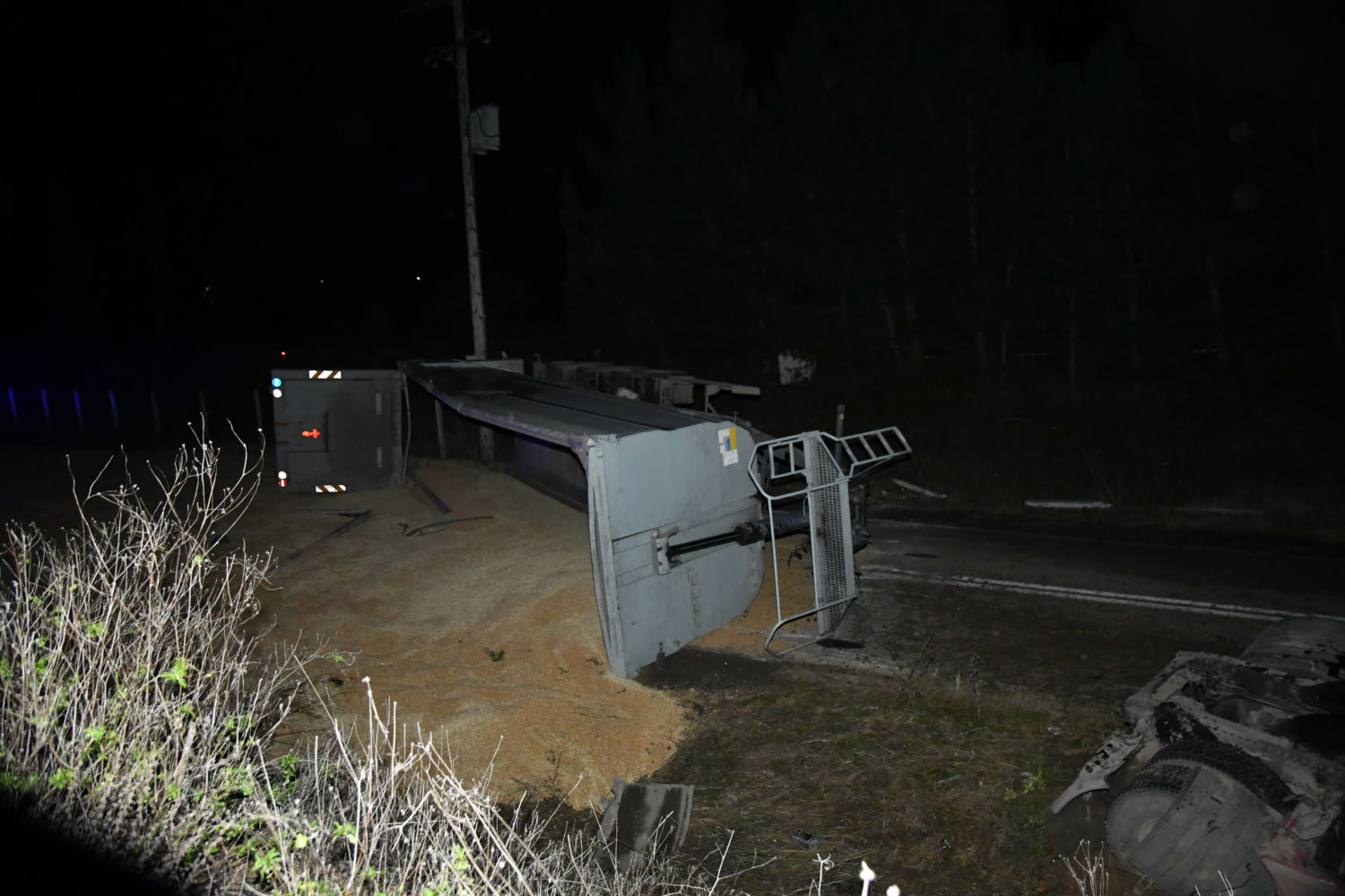 Το τροχαίο σημειώθηκε στον παράδρομο της Εθνικής οδού, μετά τα διόδια Μοσχοχωρίου και στο ρεύμα προς τη Θεσσαλονίκη, όταν για άγνωστη αιτία το φορτηγό βγήκε εκτός πορείας με αποτέλεσμα να ανοίξει η καρότσα του και να βρεθεί στο δρόμο όλο το φορτίο του (σιτάρι).