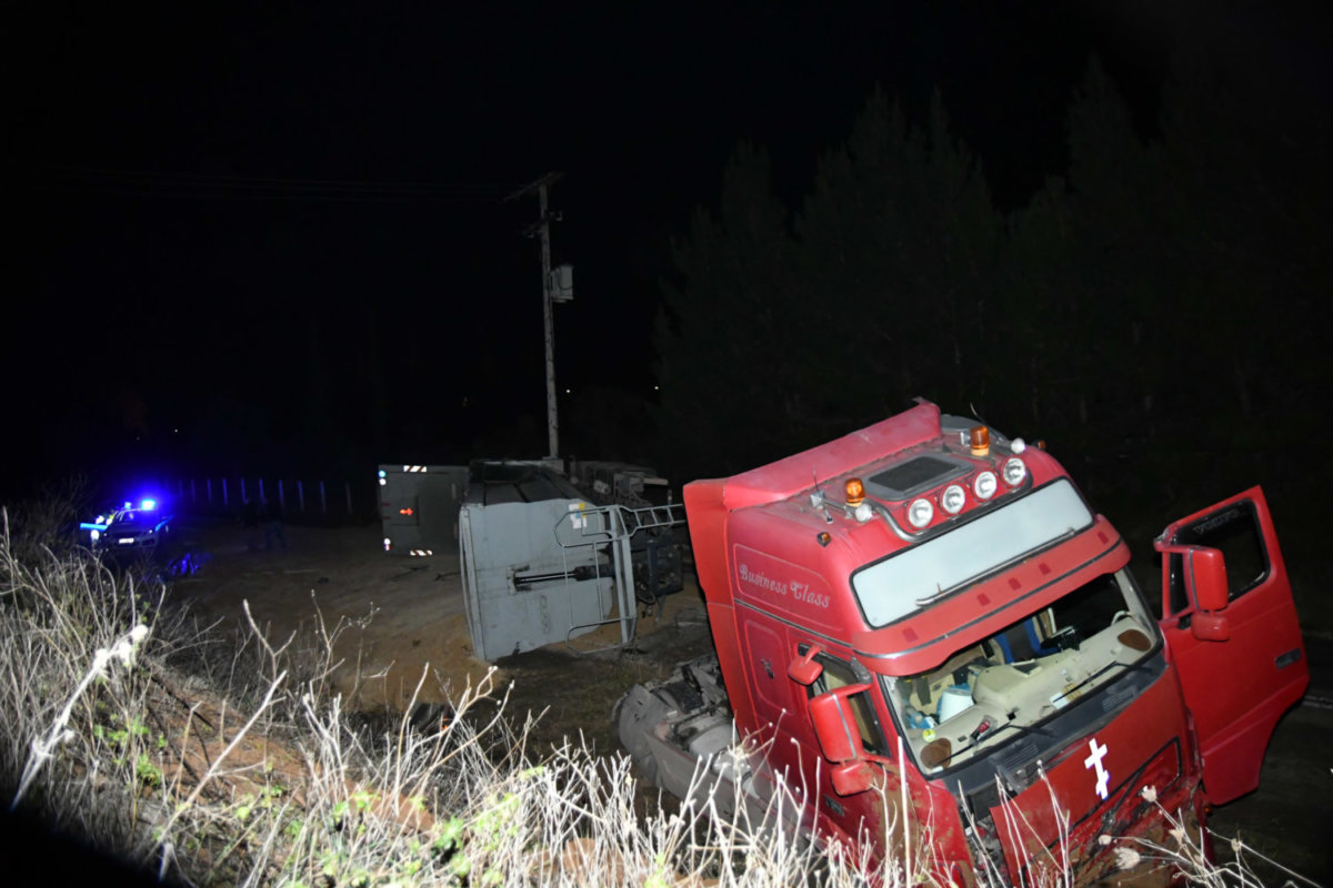 Στο σημείο βρέθηκαν άνδρες της Ελληνικής Αστυνομίας για να ρυθμίσουν την κυκλοφορία, ενώ ο οδηγός του φορτηγού δεν τραυματίστηκε.
