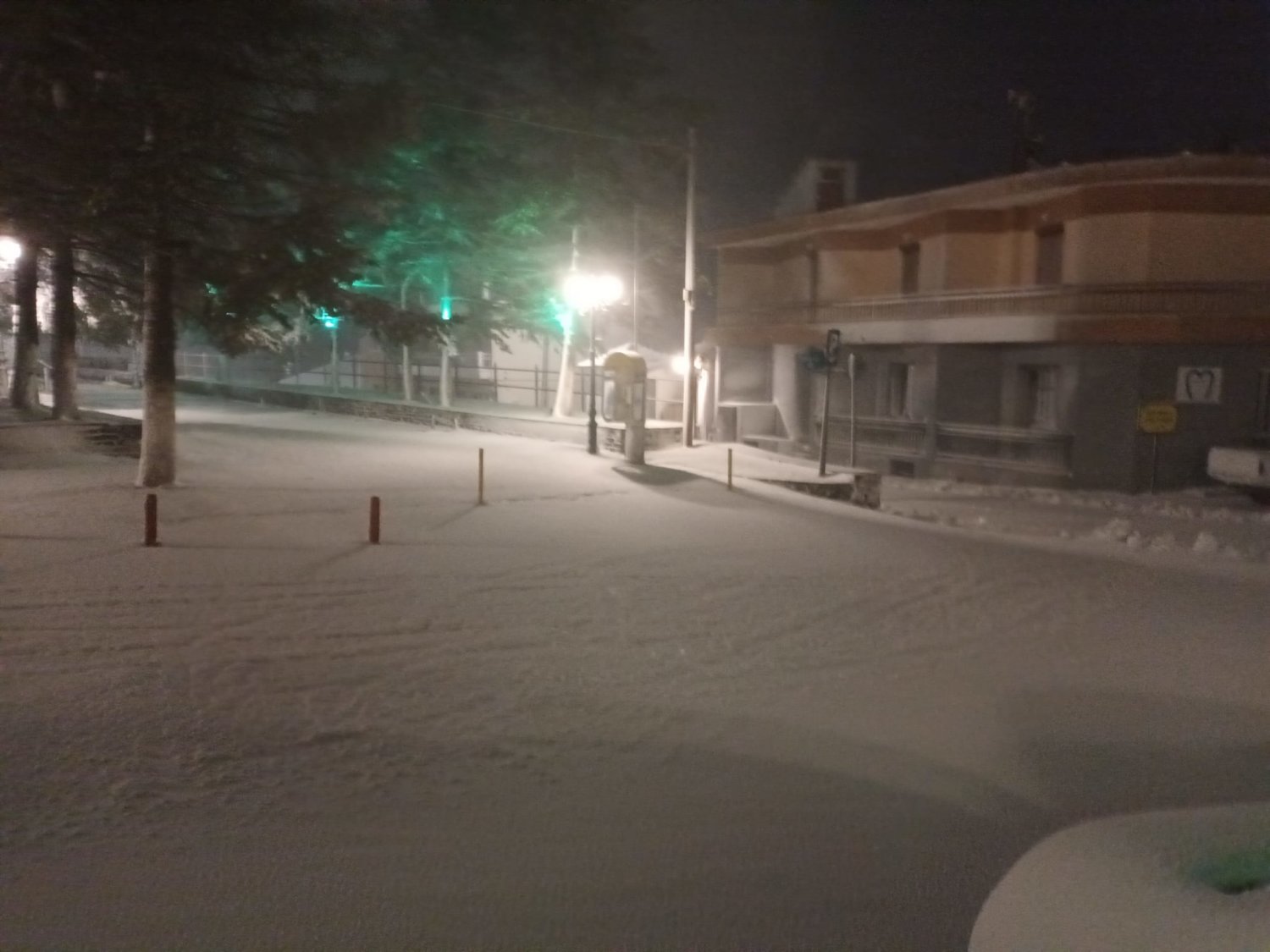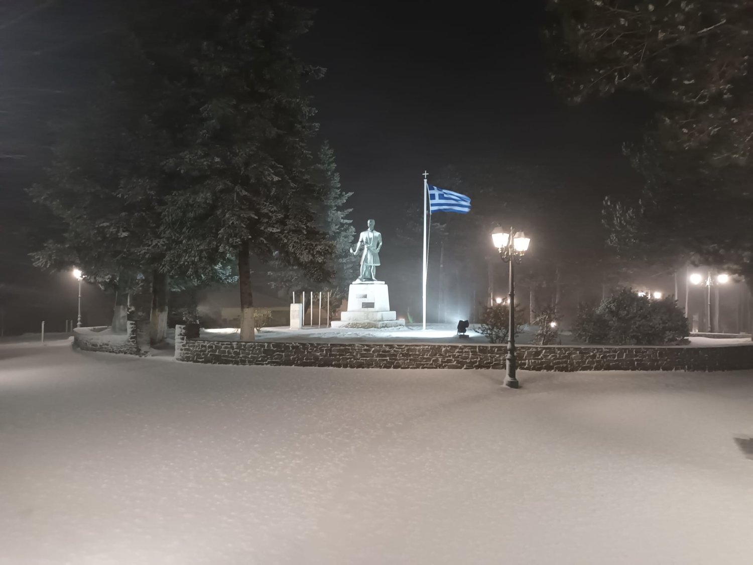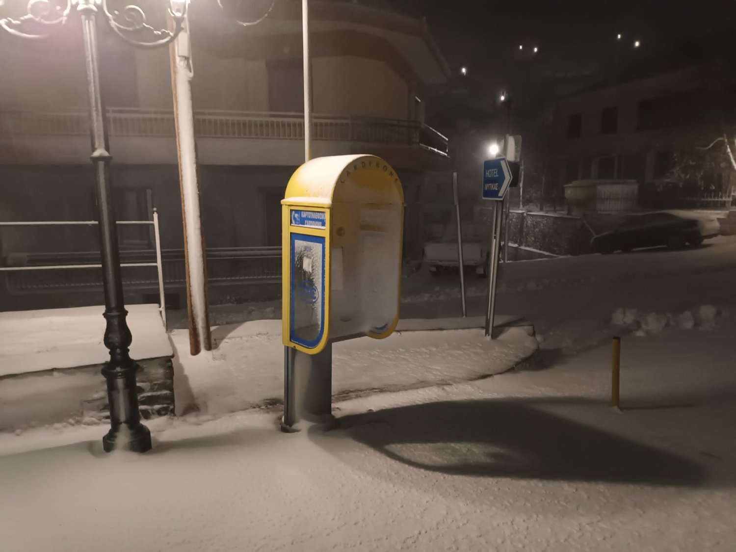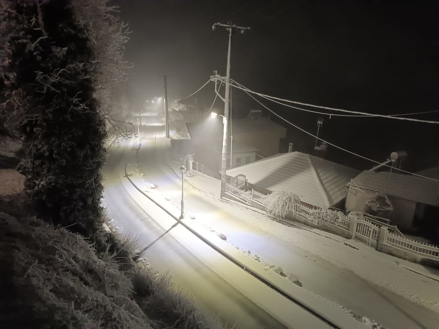 Χαρακτηριστικά στο Λιβάδι Ελασσόνας όλα έχουν καλυφθεί από το χιόνι, ενώ νωρίτερα το πρωί η θερμοκρασία ήταν στον -1 βαθμό Κελσίου.