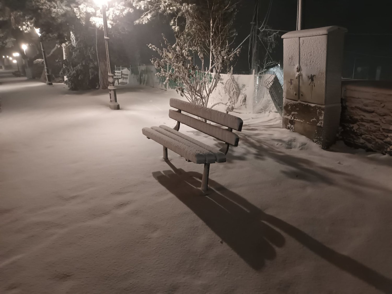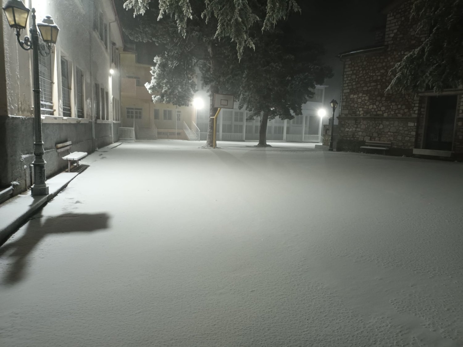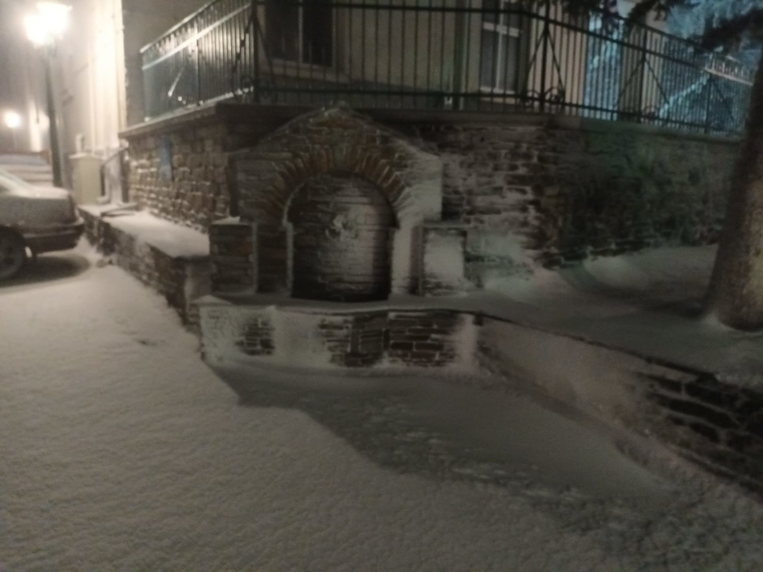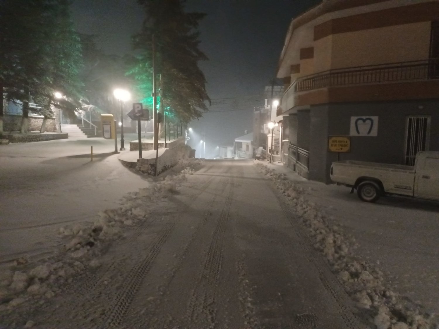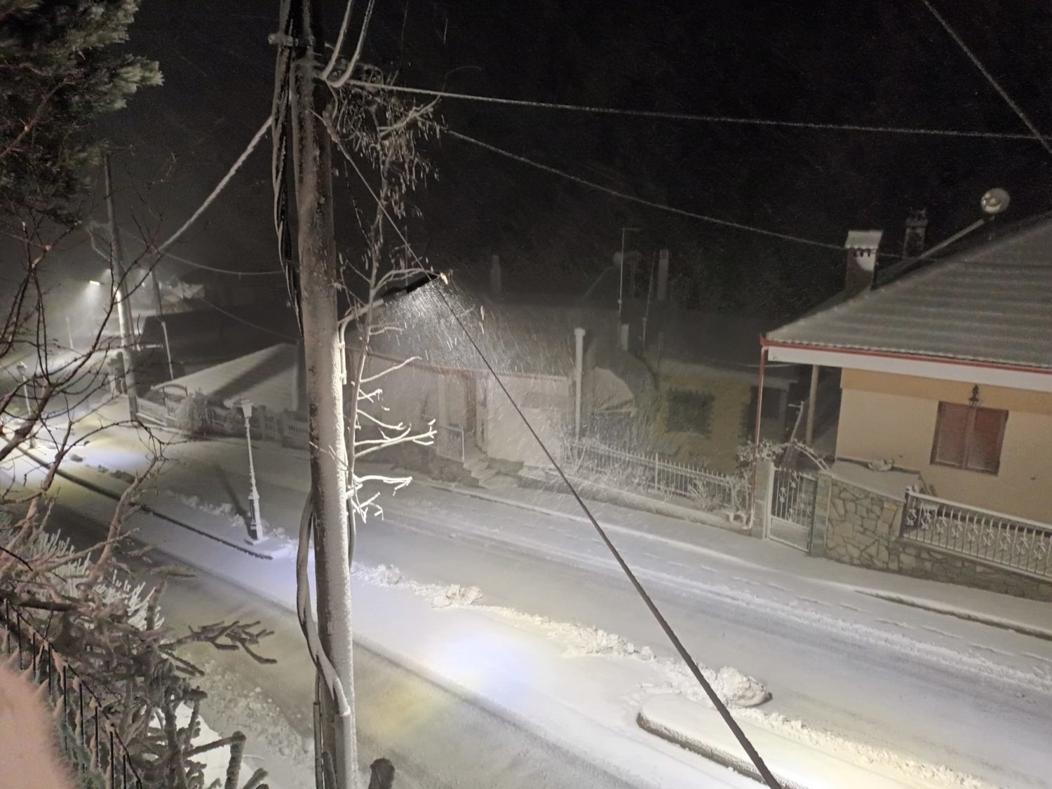Χαρακτηριστικά στο Λιβάδι Ελασσόνας όλα έχουν καλυφθεί από το χιόνι, ενώ νωρίτερα το πρωί η θερμοκρασία ήταν στον -1 βαθμό Κελσίου.