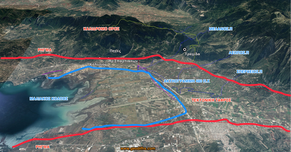 ΘΕΡΜΟΠΥΛΕΣ: Οι θερμομεταλλικές πηγές των Θερμοπυλών είναι γνωστές από την αρχαιότητα. Η ονομασία της περιοχής, όπως αναφέρει ο Ρωμαίος ιστορικός Τίτος Λίβιος το 59 π.Χ., οφείλεται στην ύπαρξη των «θερμών» ιαματικών πηγών που έρρεαν ανάμεσα από το Στενό τις «Πύλες». Κατά το Φιλόστρατο (170 – 249 μ.Χ.), ο Ηρώδης ο Αττικός χρησιμοποίησε πρώτος τις πηγές ως θεραπευτικές για τους πάσχοντες και κατασκεύασε δύο μαρμάρινες δεξαμενές, μια για τους άντρες και μία για τις γυναίκες. Κατά την μυθολογία τις πηγές αυτές τις δημιούργησε ο Ήφαιστος, κατόπιν παράκλησης της Αθηνάς για να λούζεται εκεί ο Ηρακλής και να ξαναβρίσκει τις δυνάμεις του μετά τους Άθλους του. Οι θερμομεταλλικές πηγές των Θερμοπυλών βρίσκονται στην επέκταση του ίδιου ρήγματος που περνά από τις πολύ πιο γνωστές θερμομεταλλικές πηγές των Καμμένων Βούρλων και σε απόσταση 20 km. Αναβλύσεις θερμομεταλλικού νερού παρατηρούνται στις υπώρειες του Καλλίδρομου όρους και στην επαφή των ασβεστολίθων πετρωμάτων με τις προσχώσεις του Σπερχειού ποταμού. Όλές αυτές οι πηγές οφείλουν τη γένεσή τους σε μεγάλα τεκτονικά ρήγματα, τα οποία προκάλεσαν το βύθισμα του Μαλιακού–Ευβοϊκού και στο ηφαιστειακό κέντρο των Λιχάδων, του οποίου η μεταηφαιστειακή δράση συντελεί στον εμπλουτισμό των νερών σε αέρια (διοξείδο του άνθρακα, υδρόθειο κ.λ.π.) και εν μέρει στην άνοδο της θερμοκρασίας. Οι πηγές είναι υδροθειοχλωρονατριούχες, θερμοκρασίας 41C. Είναι χαρακτηριστικό ότι ενώ αυξάνεται η ποσότητα διοξειδίου του άνθρακα ελαττώνεται το ραδόνιο. Από αυτό συμπεραίνουμε ότι αν η προέλευση του ραδονίου προέρχεται από τα ηφαιστειογενή νησιά των Λιχάδων (ηφαιστειακό κέντρο). Η ελάττωση στο ραδόνιο δικαιολογείται αφενός από την απομάκρυνση των πηγών από το ηφαιστειακό κέντρο των Λιχάδων νήσων και αφετέρου από τον εμπλουτισμό αυτών με υπόγειο και θαλασσινό νερό.
