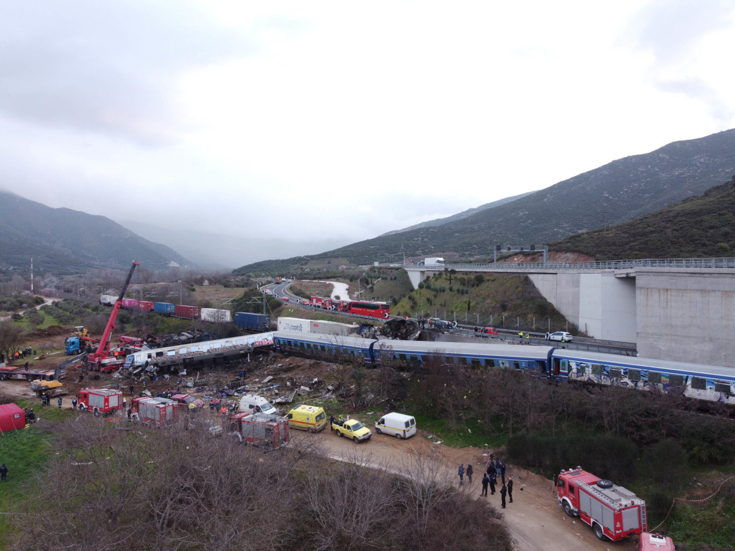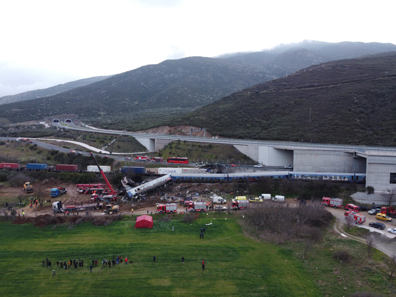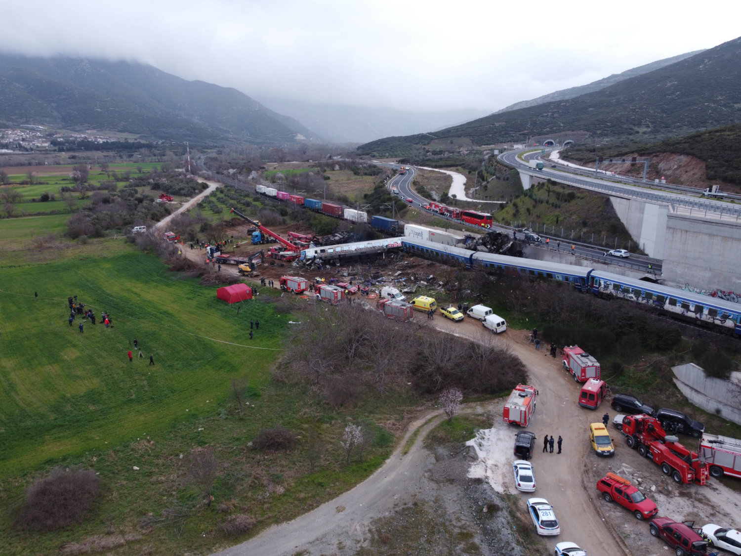 Λέξεις που με δυσκολία μπορούν να περιγράψουν όσα εξελίσσονται από αργά τη νύχτα στην είσοδο της Κοιλάδα των Τεμπών – στο ύψος του Ευαγγελισμού – μετά την σύγκρουση των δύο αμαξοστοιχιών.