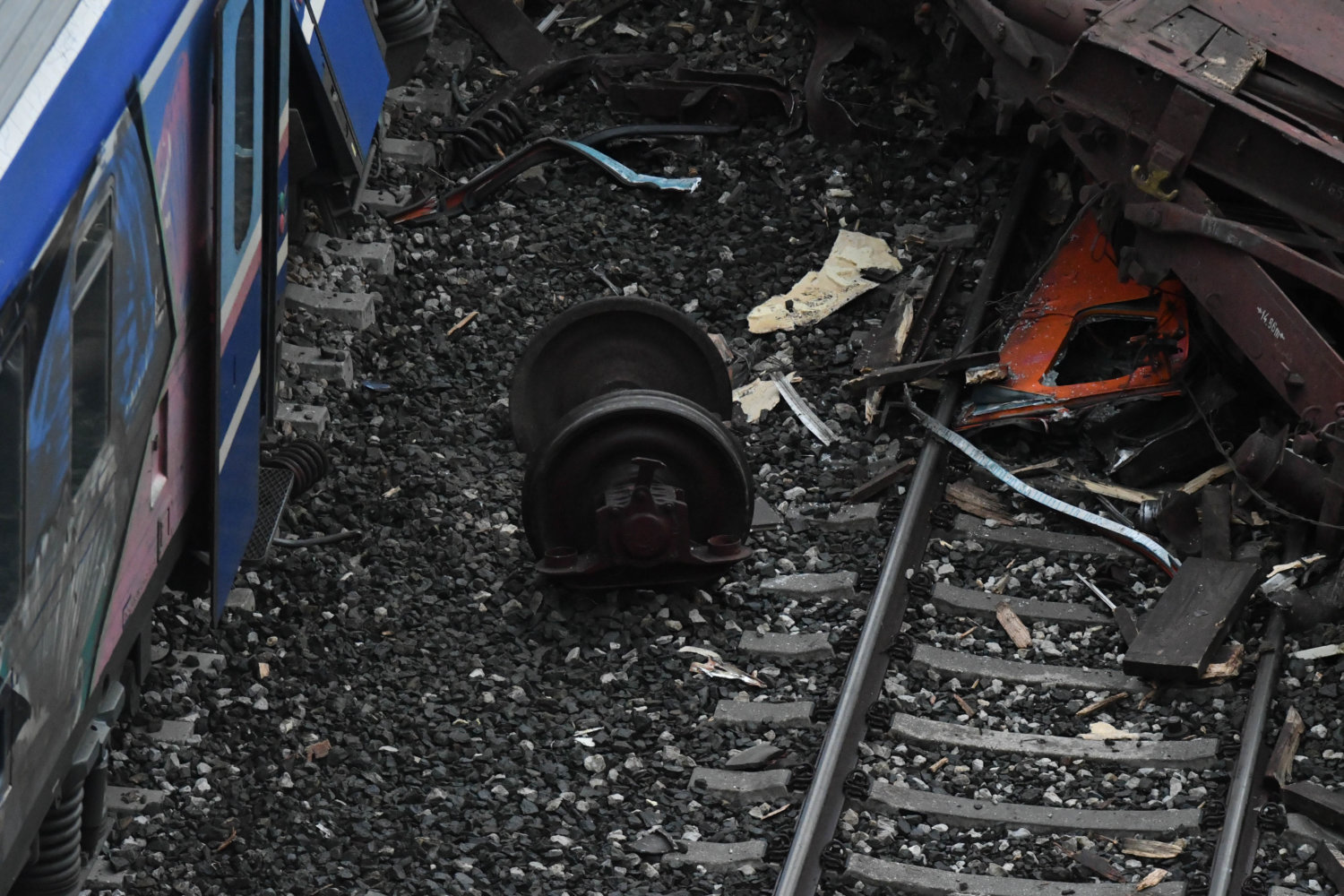 Ο φωτογραφικός φακός απαθανατίζει το σημείο της σύγκρουσης των δύο αμαξοστοιχιών, όπως επίσης τα διαλυμένα βαγόνια και τα πάσης φύσεως εξαρτήματα που έχουν εκτιναχθεί σε μεγάλη απόσταση. Είναι χαρακτηριστικό ότι τα θραύσματα έφτασαν μέχρι το κιγκλίδωμα του παρακείμενο δρόμου.