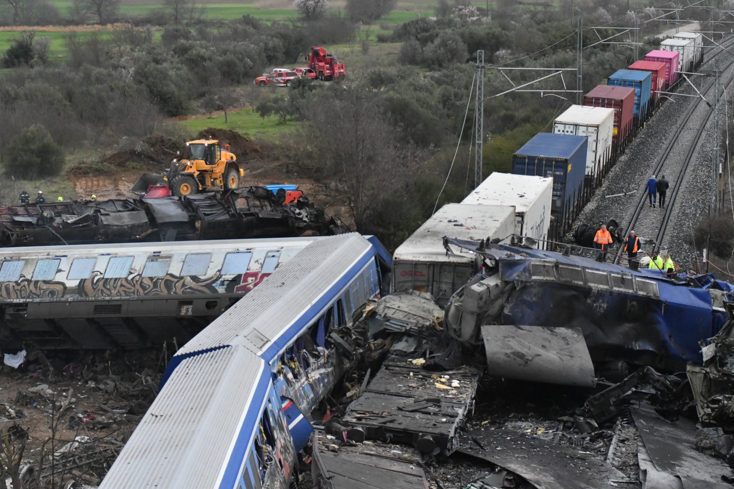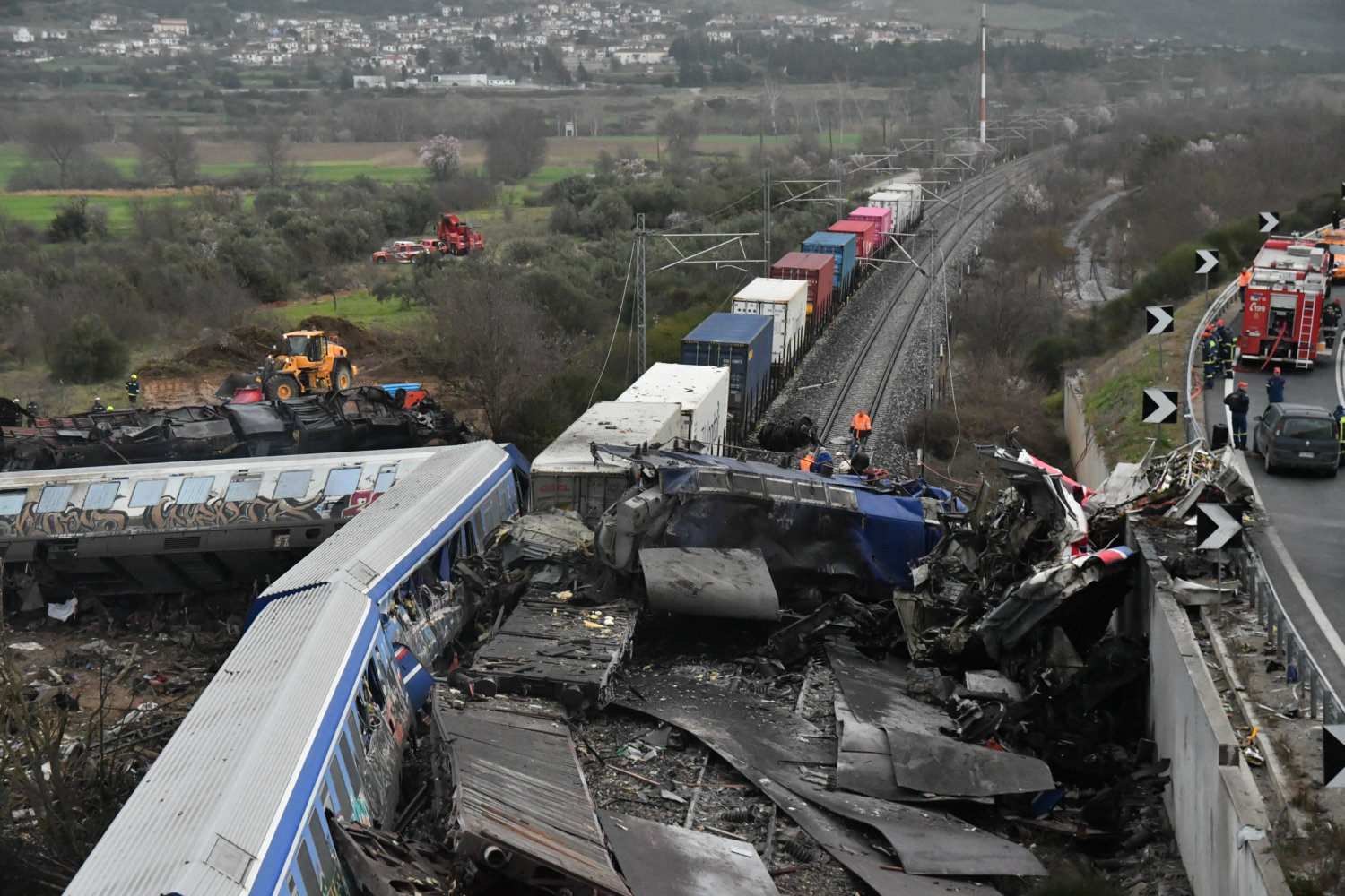 Εικόνες καταστροφής έρχονται από τον τόπο της τραγωδίας στην είσοδο της Κοιλάδας των Τεμπών…