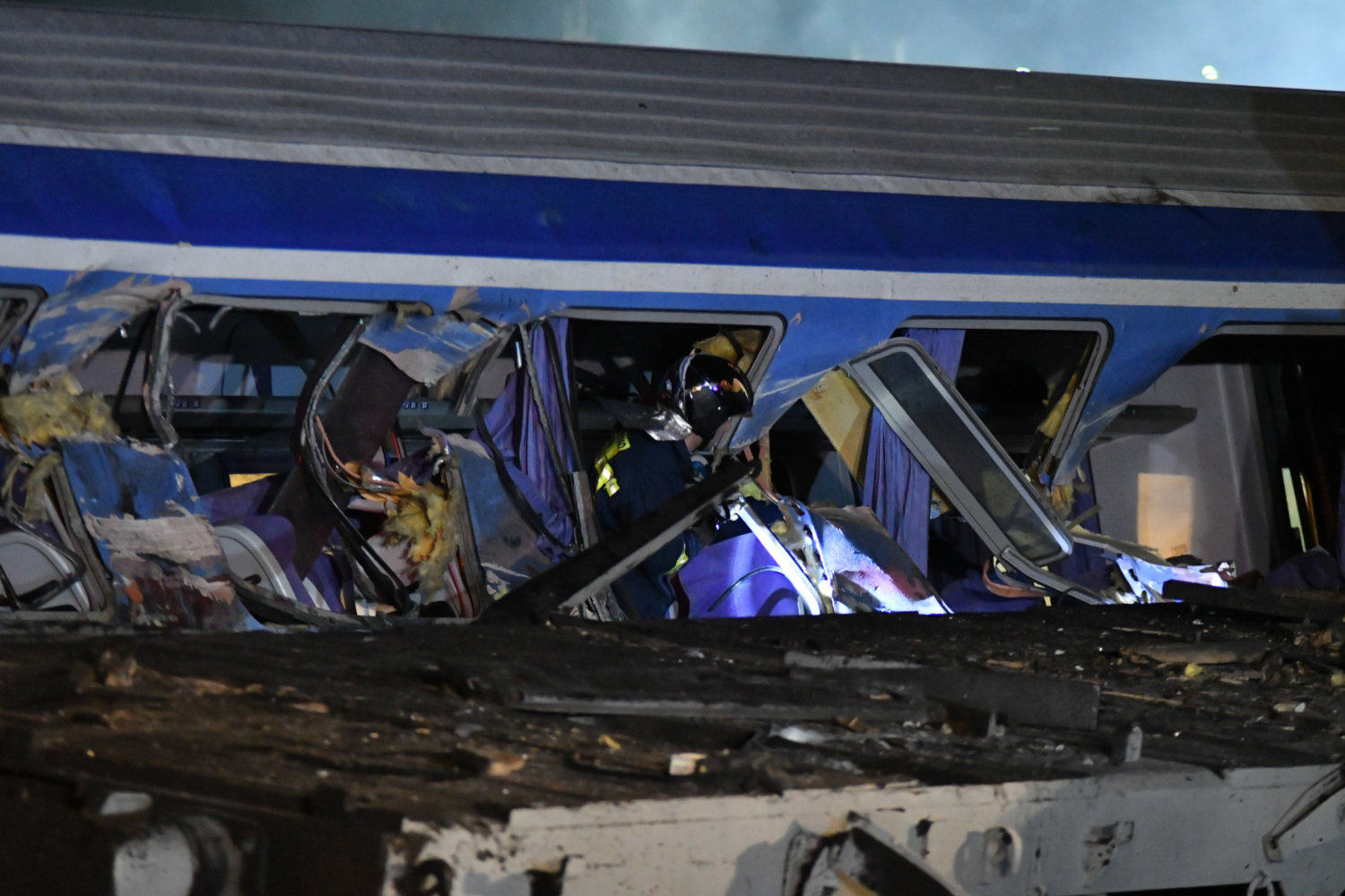 Τα φωτογραφικά στιγμιότυπα απαθανατίζουν το μέγεθος της καταστροφής, όπως και τις προσπάθειες που καταβάλουν οι πυροσβέστες μέσα στα διαλυμένα βαγόνια συνεχίζοντας την πολύωρη επιχείρηση απεγκλωβισμού: