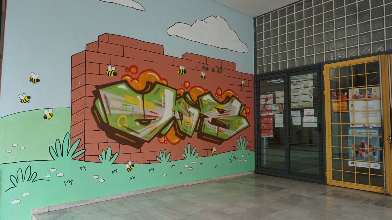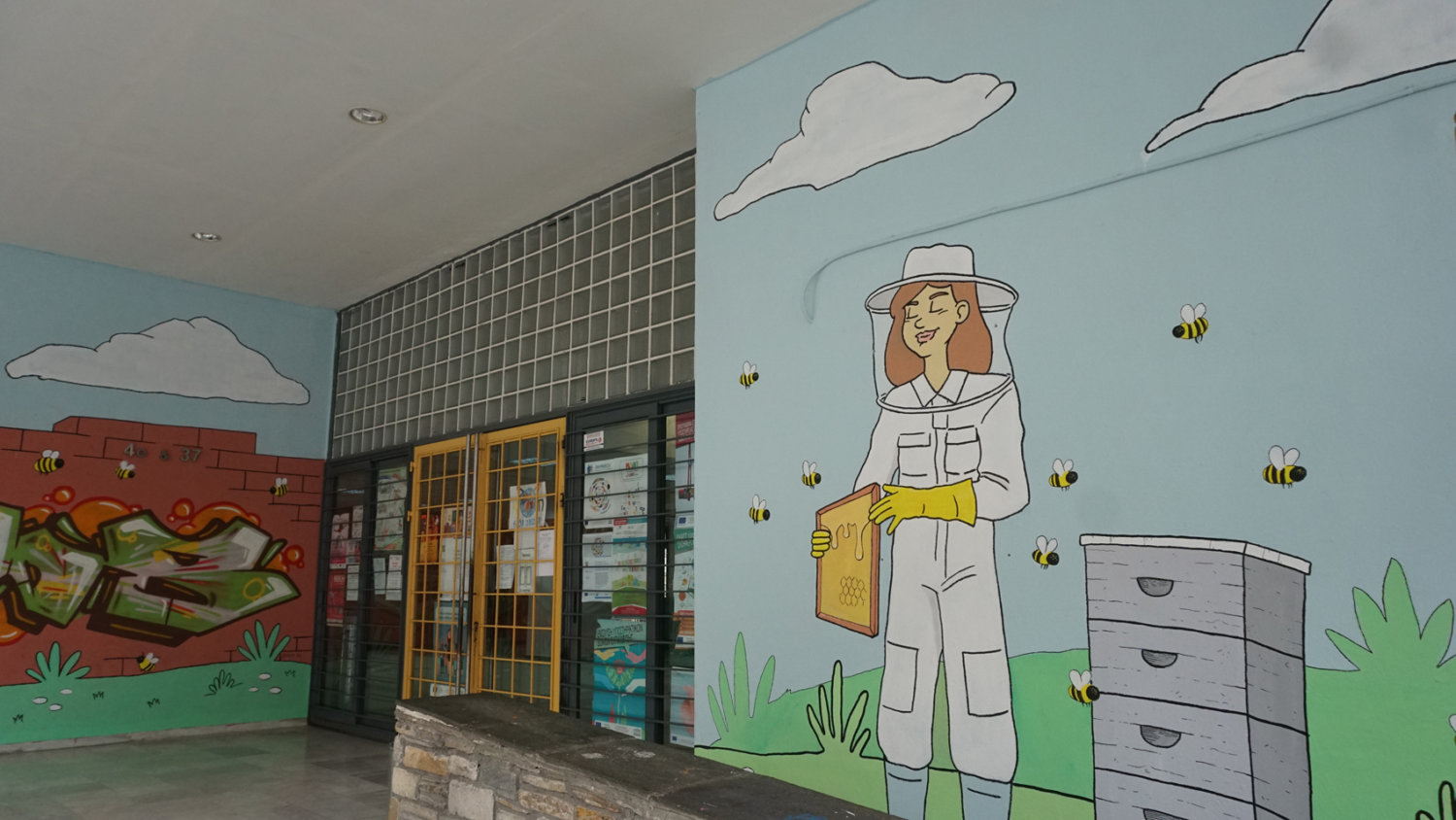 Δείτε το γκράφιτι με το μελίσσι στο Δημοτικό Σχολείο.
