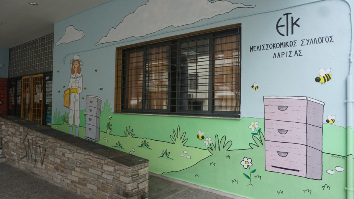 Μια εικαστική παρέμβαση με μέλισσες πραγματοποίησε στις εισόδους του 4ου Δημοτικού Σχολείου Λάρισας ο Μελισσοκομικός Σύλλογος Λάρισας και ο Σύλλογος Κόμικς και Τεχνών ΕΤουΚου σε συνεργασία με τη διεύθυνση του Σχολείου.