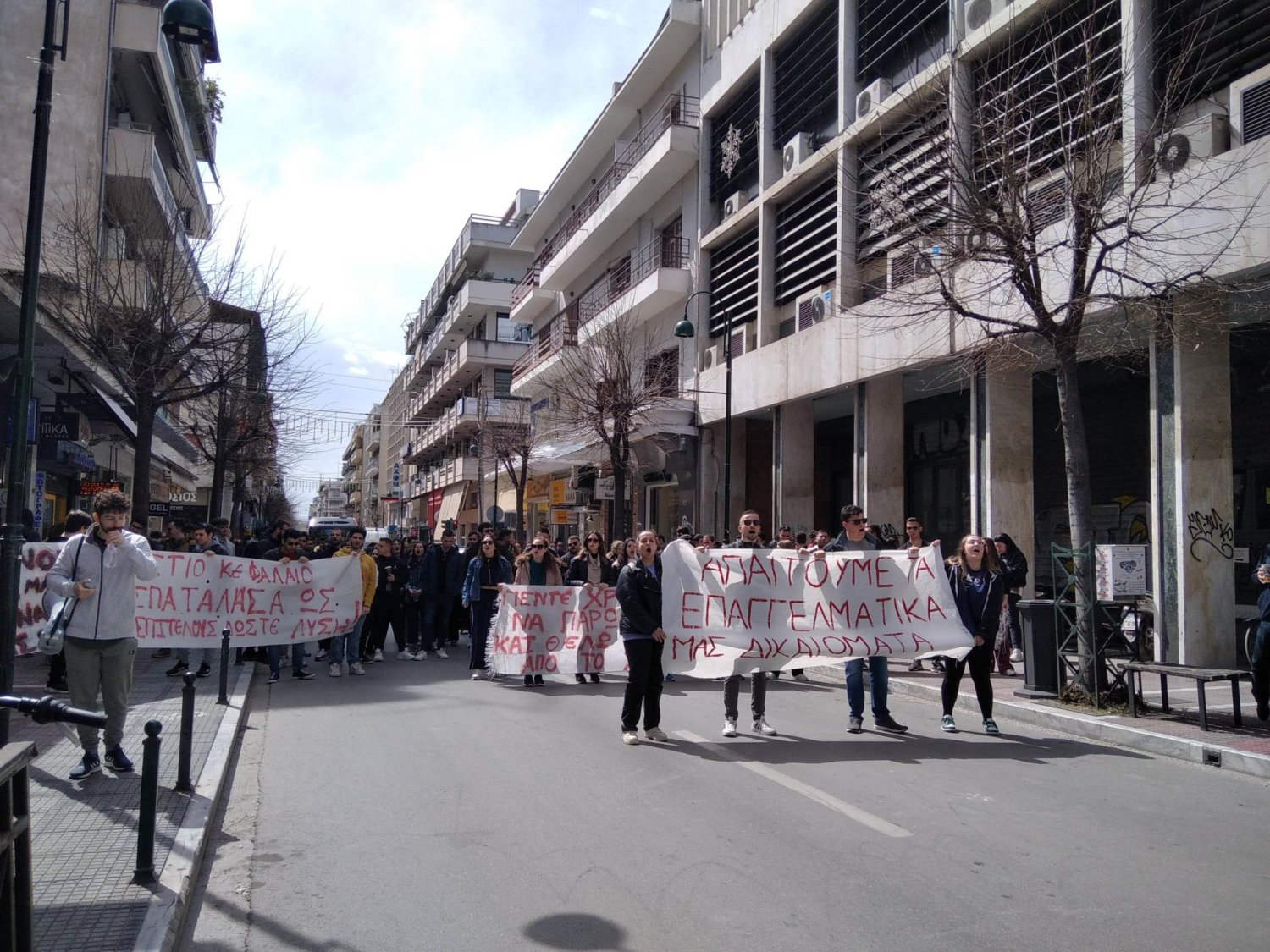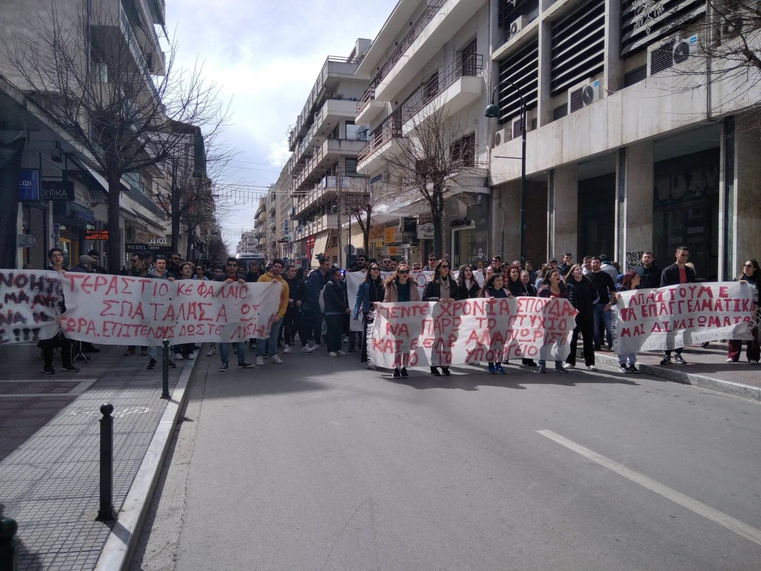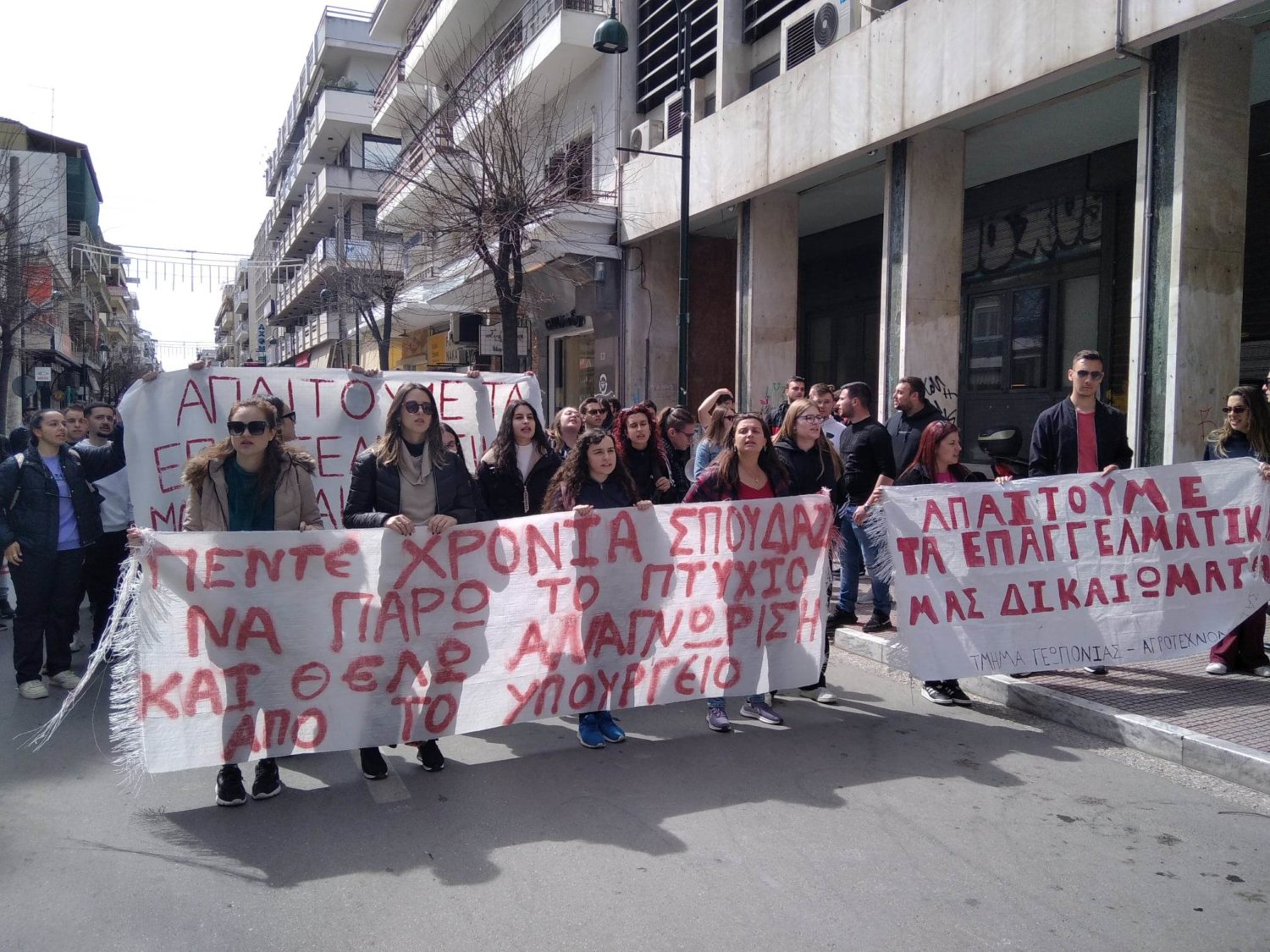 Νέα δυναμική πορεία πραγματοποιούν την Τρίτη φοιτητές του Τμήματος Γεωπονίας – Αγροτεχνολογίας και του Τμήματος Επιστήμης Ζωικής Παραγωγής του Πανεπιστημίου Θεσσαλίας στην πόλη της Λάρισας, ζητώντας να τους αποδοθούν επαγγελματικά δικαιώματα.