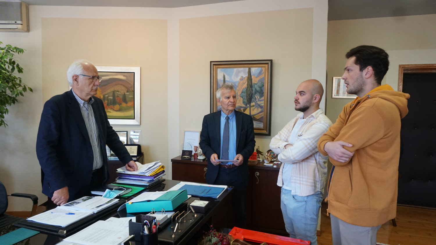 Εκεί έγινε μια πρώτη συνάντηση με τον πρόεδρο του Δημοτικού Συμβουλίου Δημήτρη Τάχο, ενώ στη συνέχεια αντιπροσωπεία έγινε δεκτή από τον δήμαρχο Λαρισαίων Απόστολο Καλογιάννη.