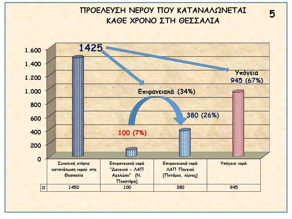 Επίσης ας μην αγνοείται το γεγονός πως μόνο από την λειτουργία των περίπου 30 – 33.000 γεωτρήσεων στη Θεσσαλία καταναλώνεται ετησίως η ιδιαίτερα μεγάλη ποσότητα των 700 GWh ηλεκτρικής ενέργειας, και μάλιστα σε μια περίοδο υψηλών τιμών ενέργειας και αυξημένων εισαγωγών (αέριο κλπ.).