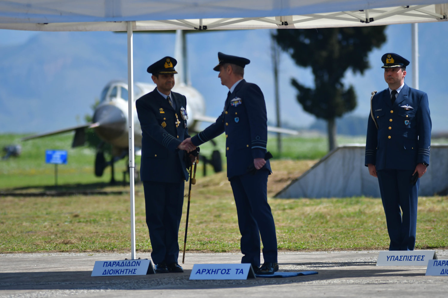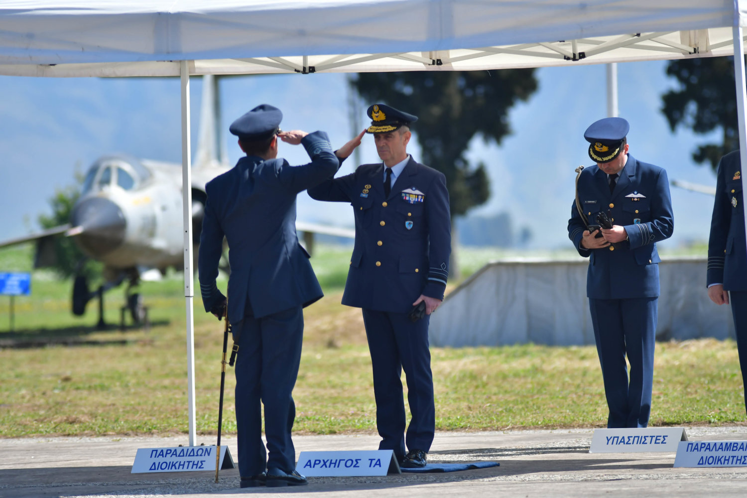 Αλλαγή Διοίκησης σήμερα στην 110 Πτέρυγα Μάχης με τον Σμήναρχο (Ι) Αργύριο Μουστρούφη να παραδίδει στον Σμήναρχο (Ι) ∆ημοσθένη Ντόλα, παρουσία του Αρχηγού Τακτικής Αεροπορίας Αντιπτεράρχου (Ι) Γεώργιου Φασούλα.