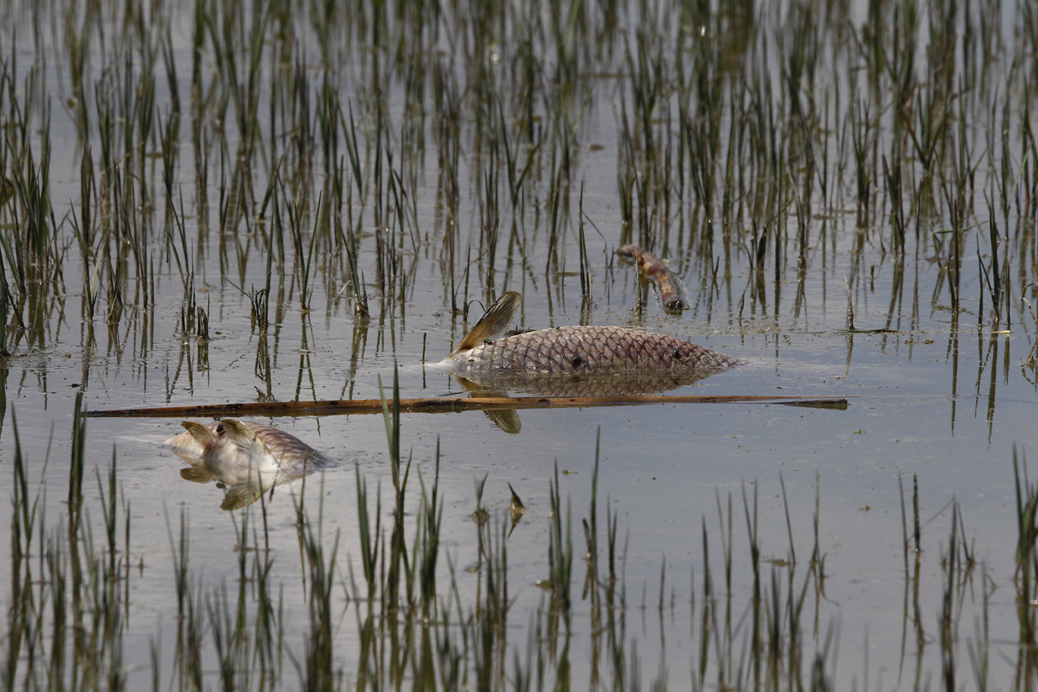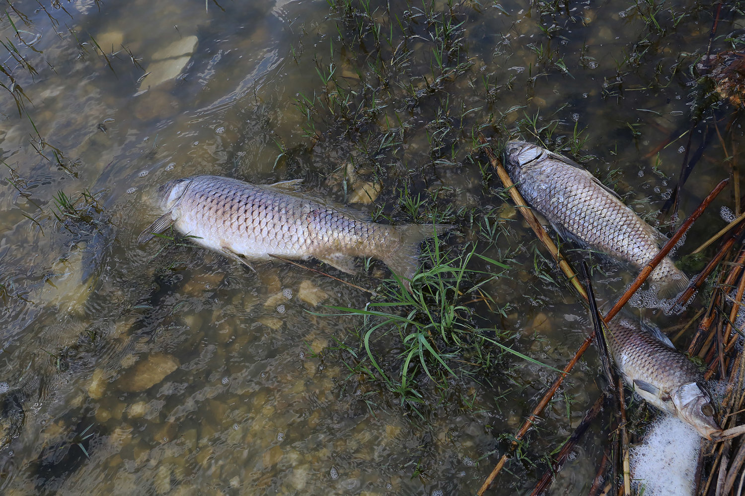 Παράλληλα, όπως προκύπτει από φωτογραφικά στιγμιότυπα, τα οποία απαθανατίστηκαν την Τρίτη 25 Απριλίου, σε διαφορετικά σημεία της λίμνης ξεβράστηκαν νεκρά ψάρια.