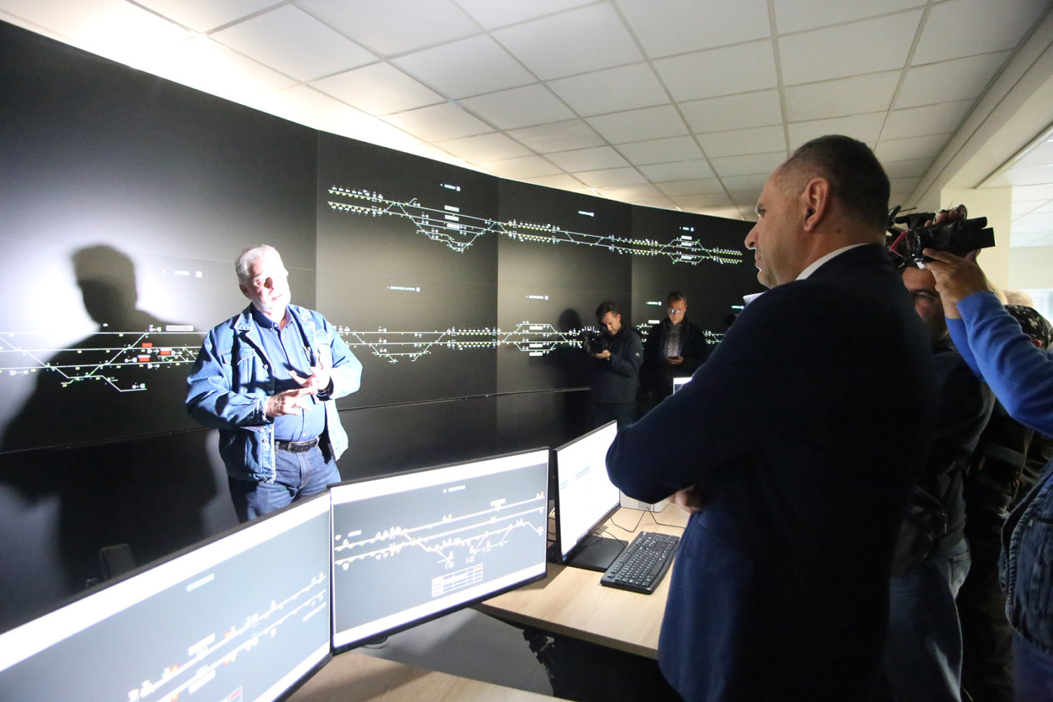 Μαζί με τον κ. Γεραπετρίτη ήταν και ο διευθύνων σύμβουλος του ΟΣΕ, Παναγιώτη Τερεζάκης ο οποίος εξήγησε στον υπουργό τη λειτουργία του πίνακα τηλεδιοίκησης αναφέροντας πως είναι σε δοκιμαστική λειτουργία το κομμάτι Παλαιοφαρσάλων μέχρι την έξοδο της Λάρισας ενώ μέχρι τέλος Ιουνίου θα λειτουργήσει η τηλεδιοίκηση απο Δομοκό μέχρι Αιγίνιο, ενώ απο Πλατύ μέχρι Θεσσαλονίκη λειτουργεί ήδη το σύστημα τηλεδιοίκησης από το σταθμό Θεσσαλονίκης.
