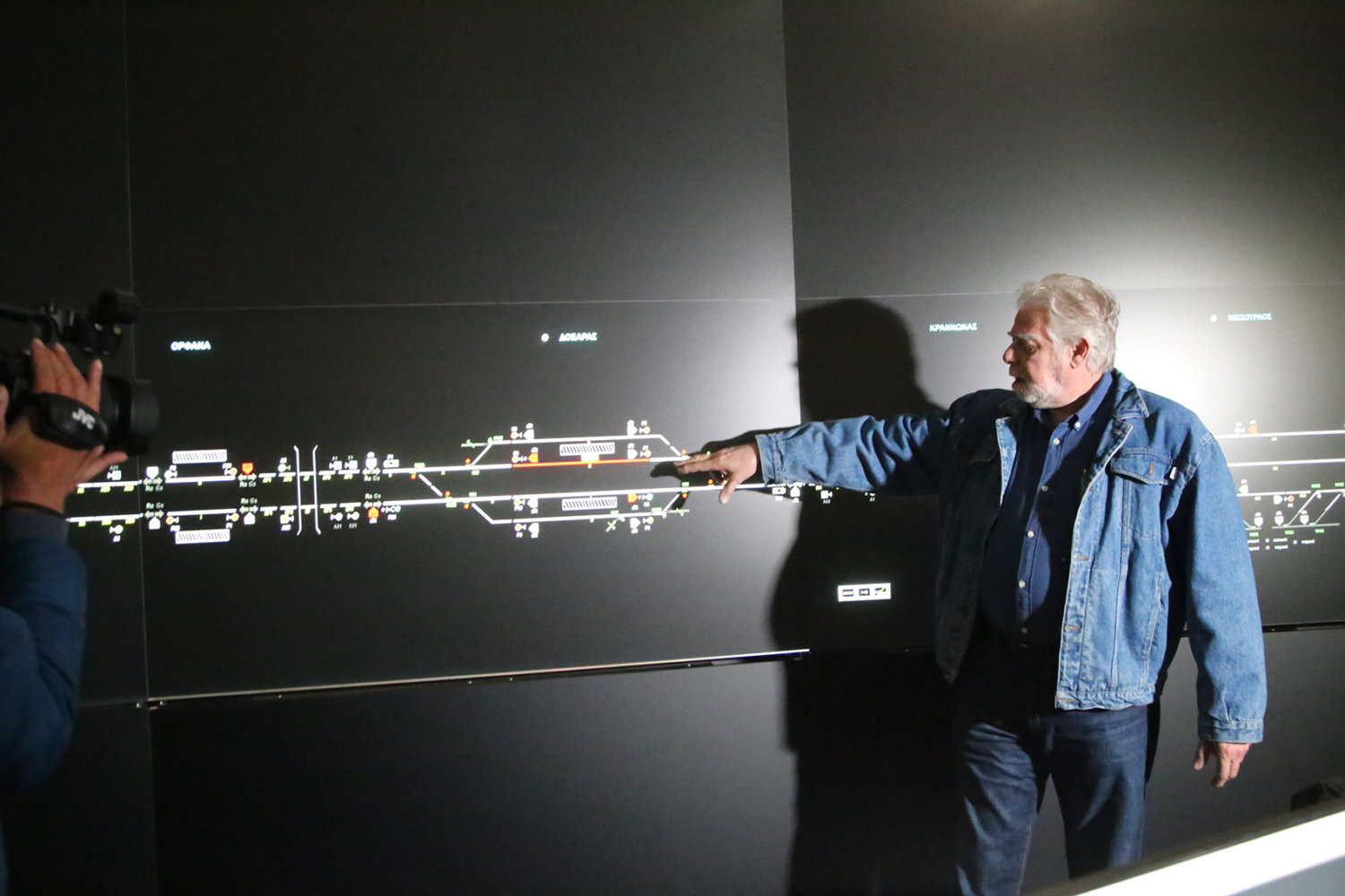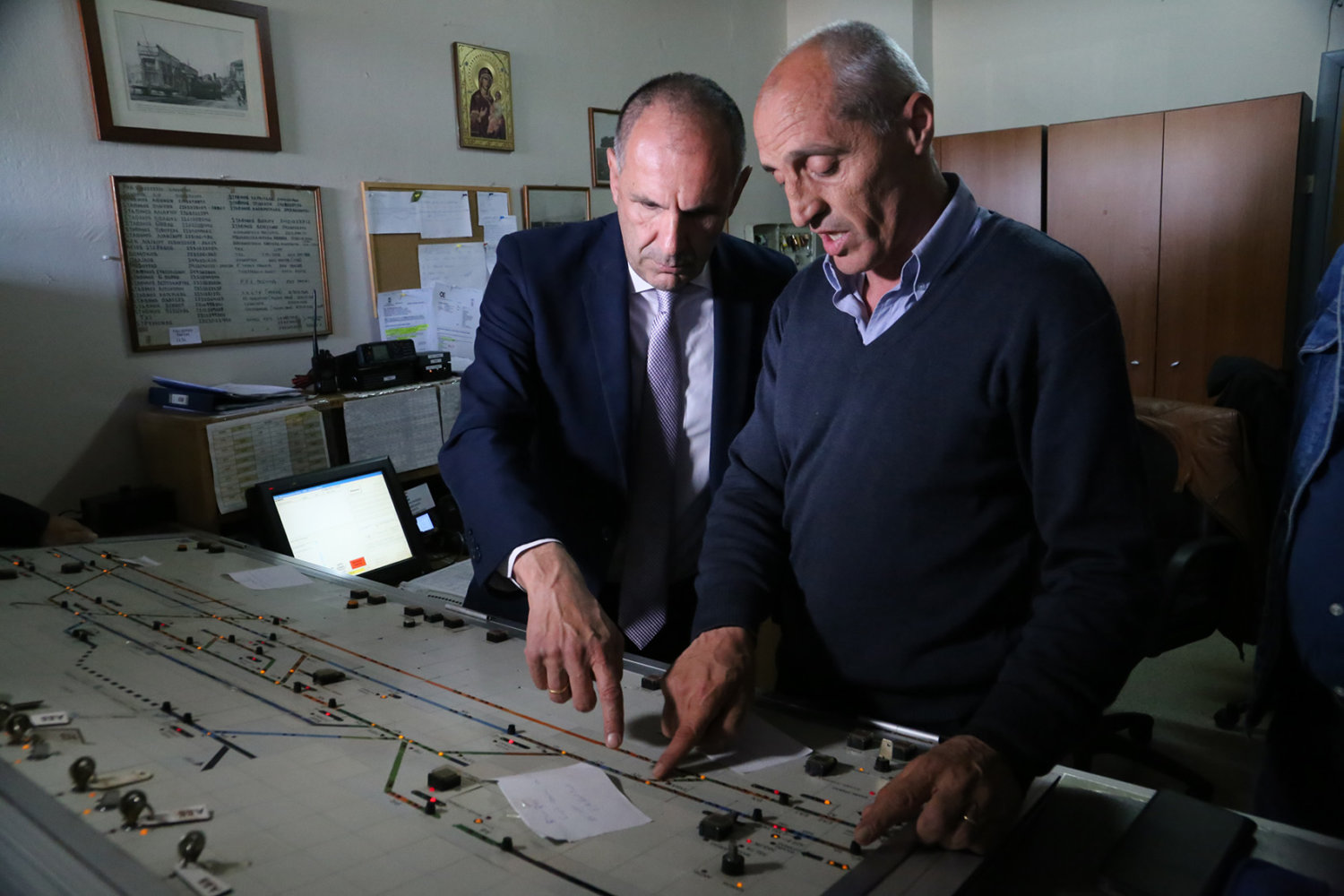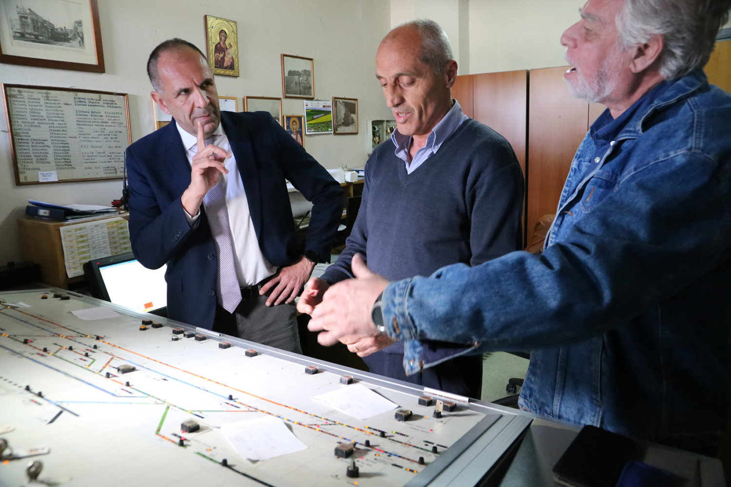 Νωρίτερα ο κ. Γεραπετρίτης βρέθηκε στο Σταθμαρχείο Λάρισας όπου υπάλληλοι του Σταθμού, εξήγησαν τον τρόπο λειτουργίας του πίνακα αυτόματης τοπικής χάραξης πορείας.