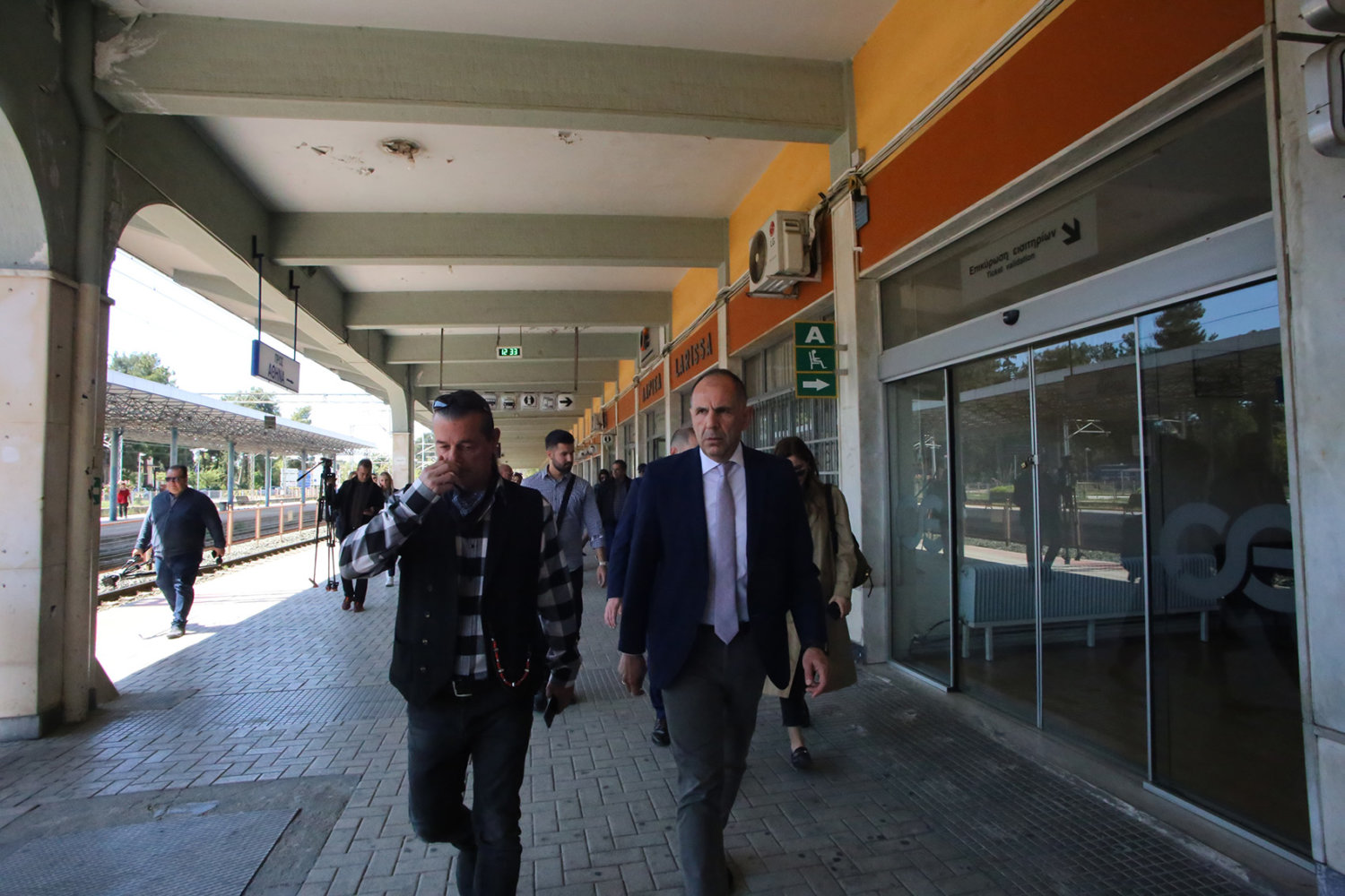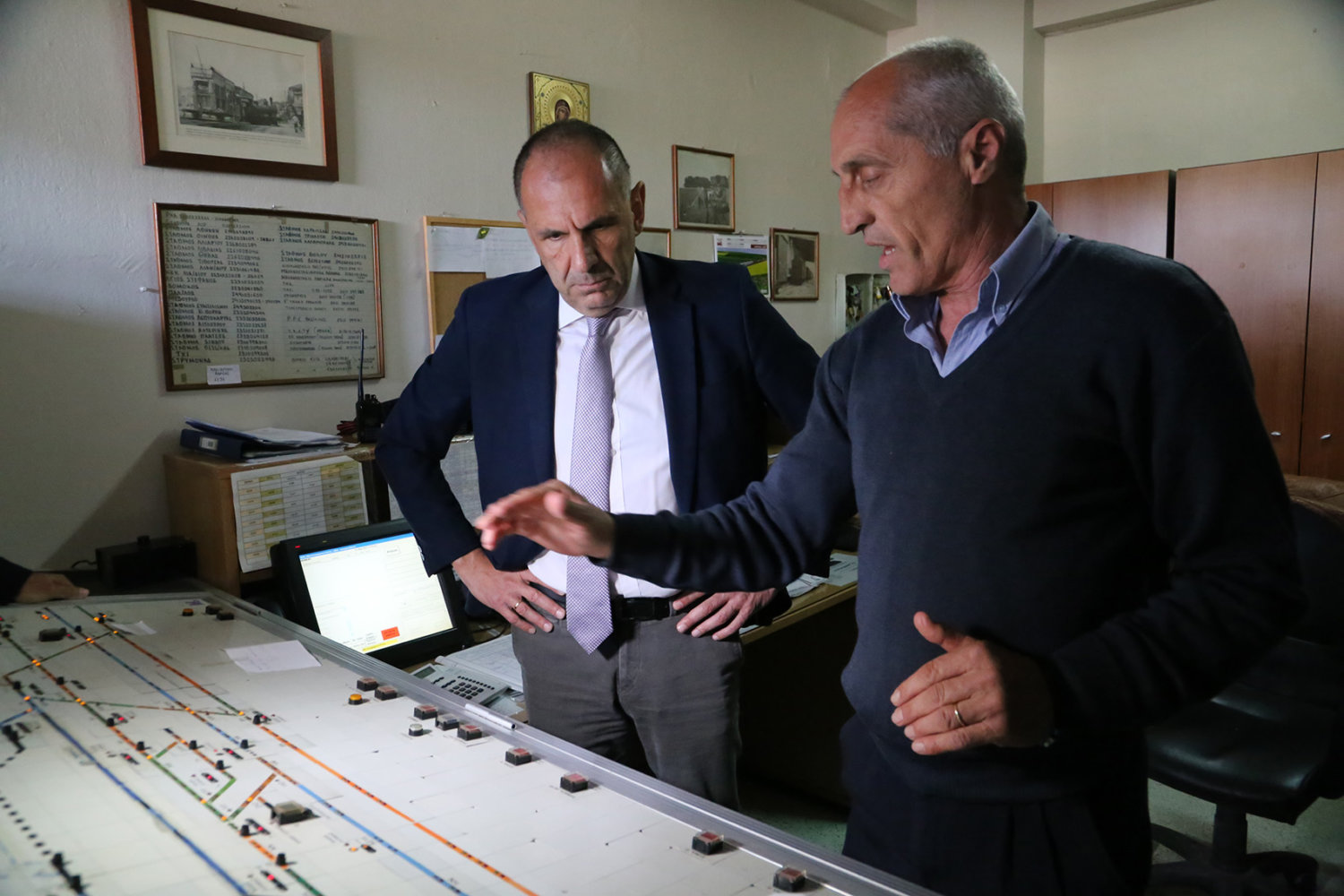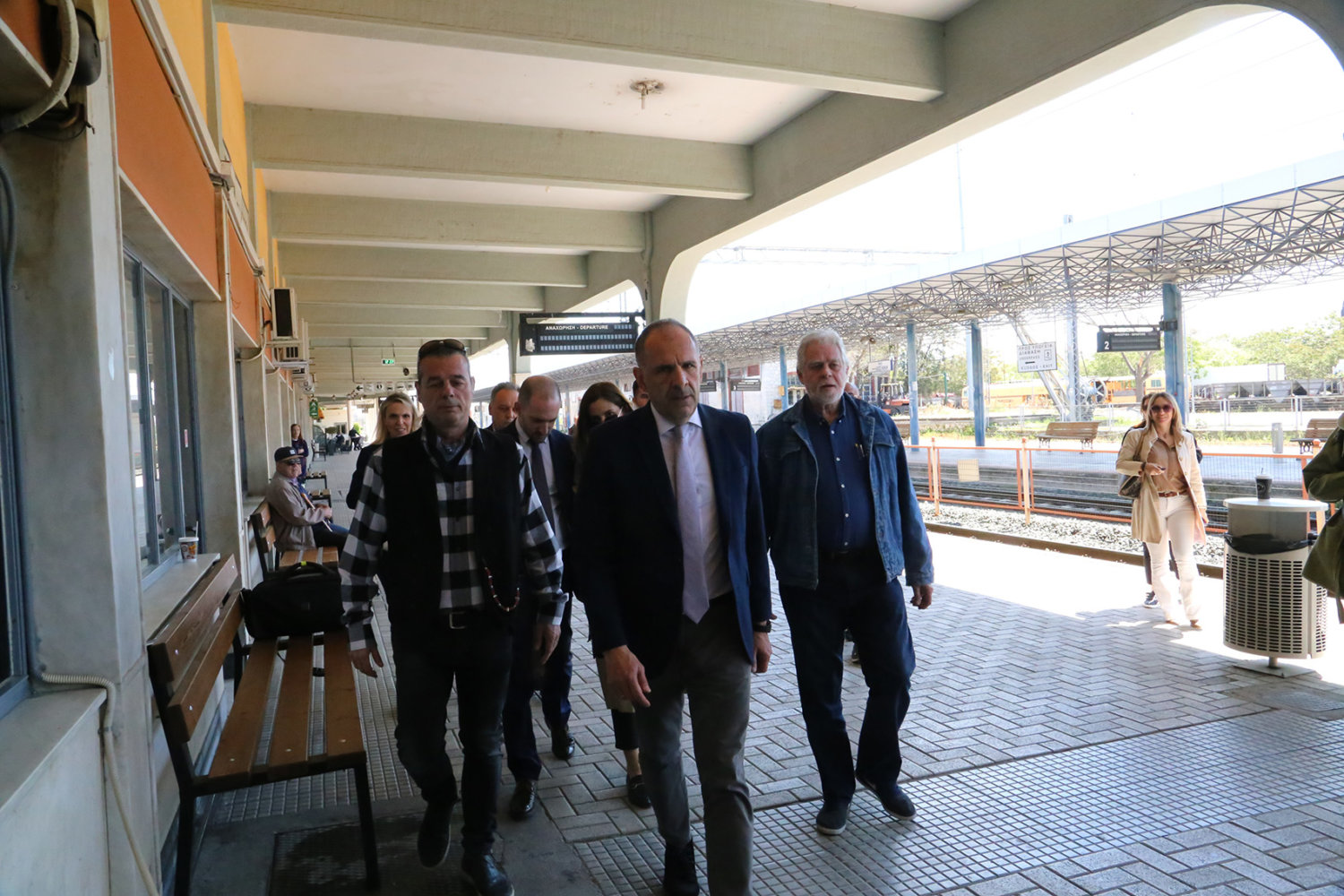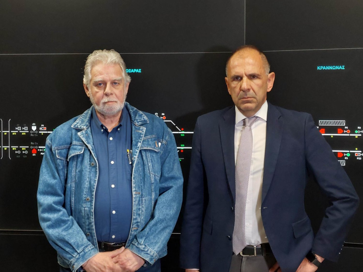 Νωρίτερα ο κ. Γεραπετρίτης βρέθηκε στο Σταθμαρχείο Λάρισας όπου υπάλληλοι του Σταθμού, εξήγησαν τον τρόπο λειτουργίας του πίνακα αυτόματης τοπικής χάραξης πορείας.
