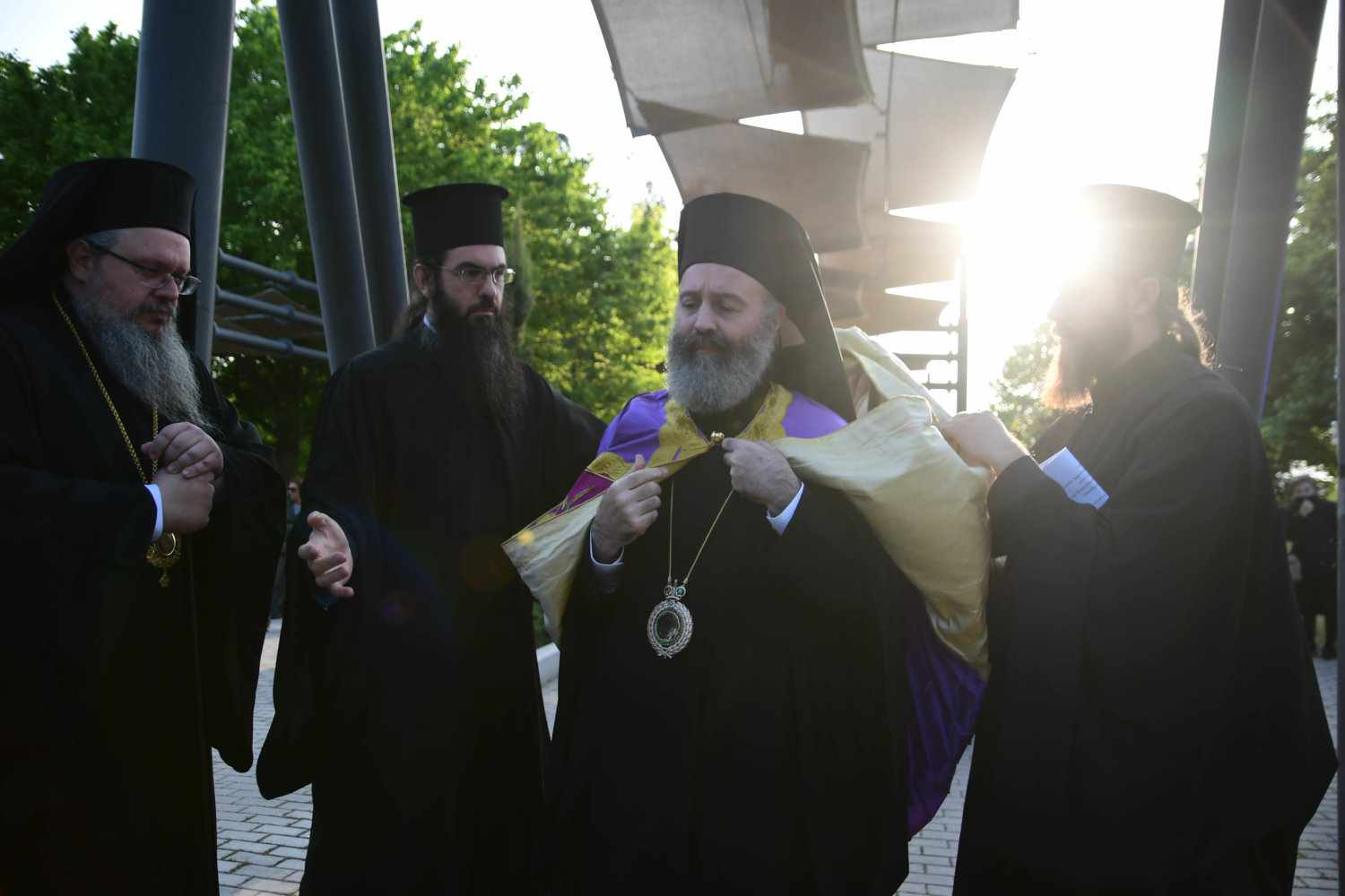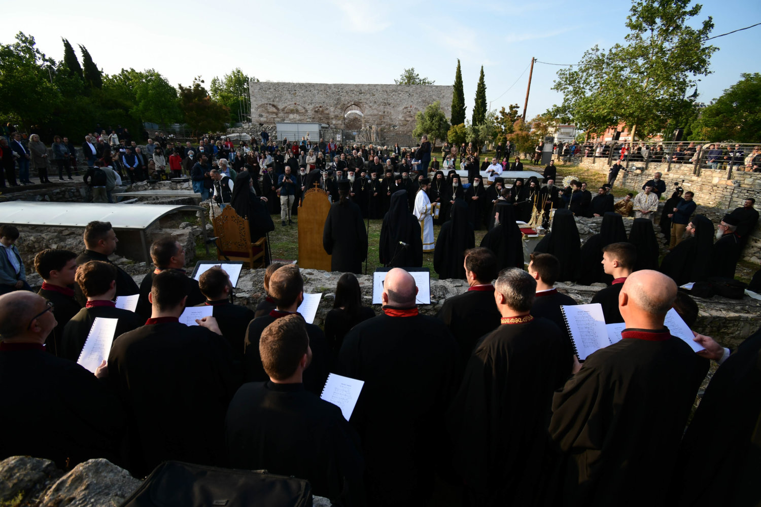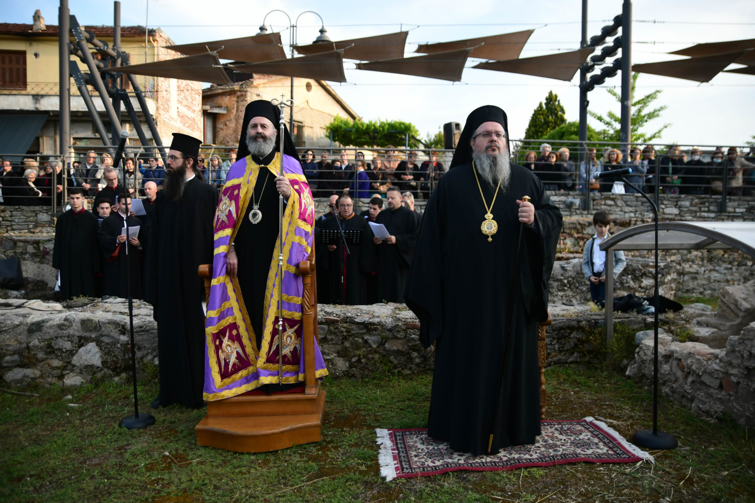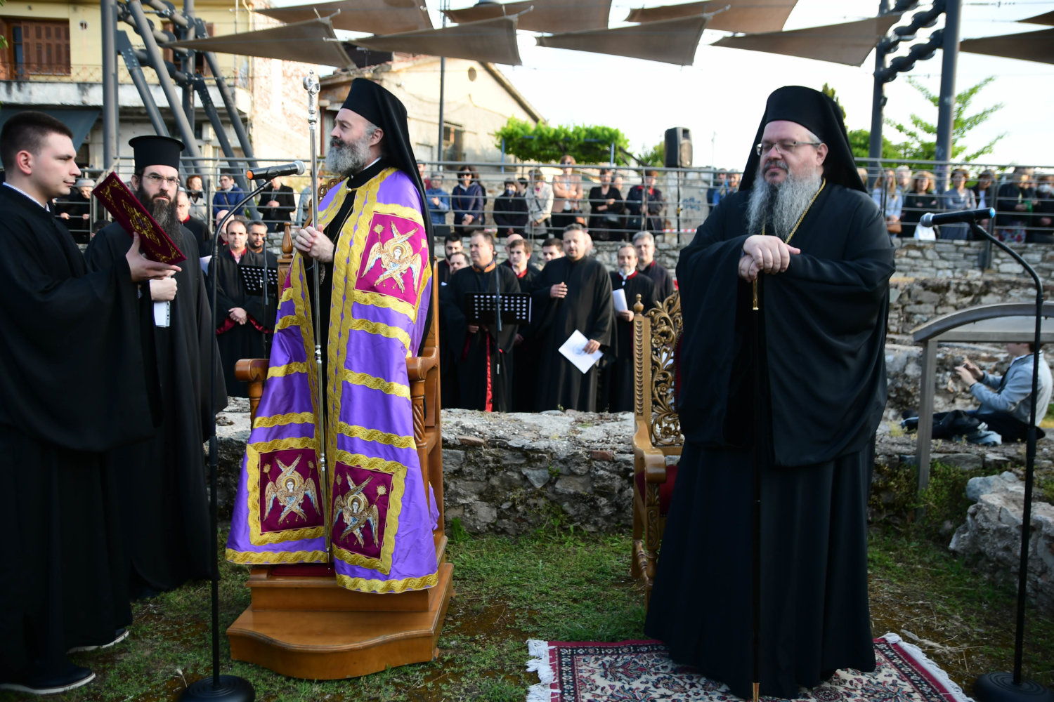 Πραγματοποιήθηκε ο πανηγυρικός υπαίθριος προεόρτιος Αρχιερατικός Εσπερινός στην αρχαία Βασιλική του Αγίου Αχιλλίου, στη Λάρισα, χοροστατούντος του Σεβασμιωτάτου Αρχιεπισκόπου Αυστραλίας κ. Μακαρίου και συγχοροστατούντος του Σεβασμιωτάτου Μητροπολίτου Λαρίσης και Τυρνάβου κ. Ιερωνύμου.