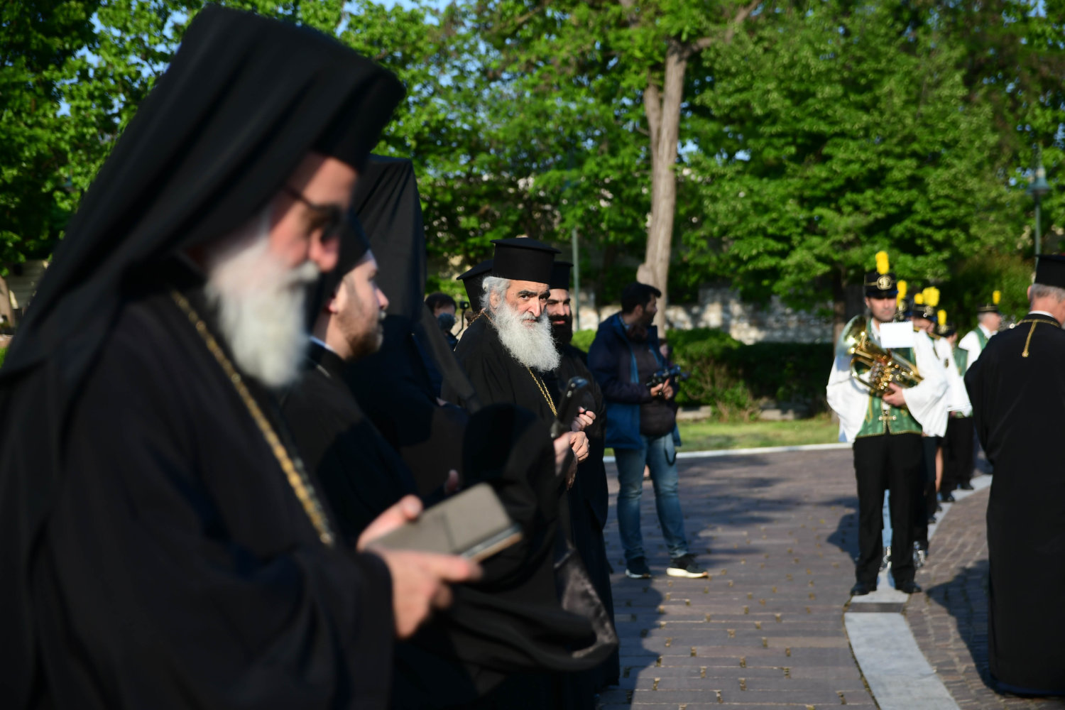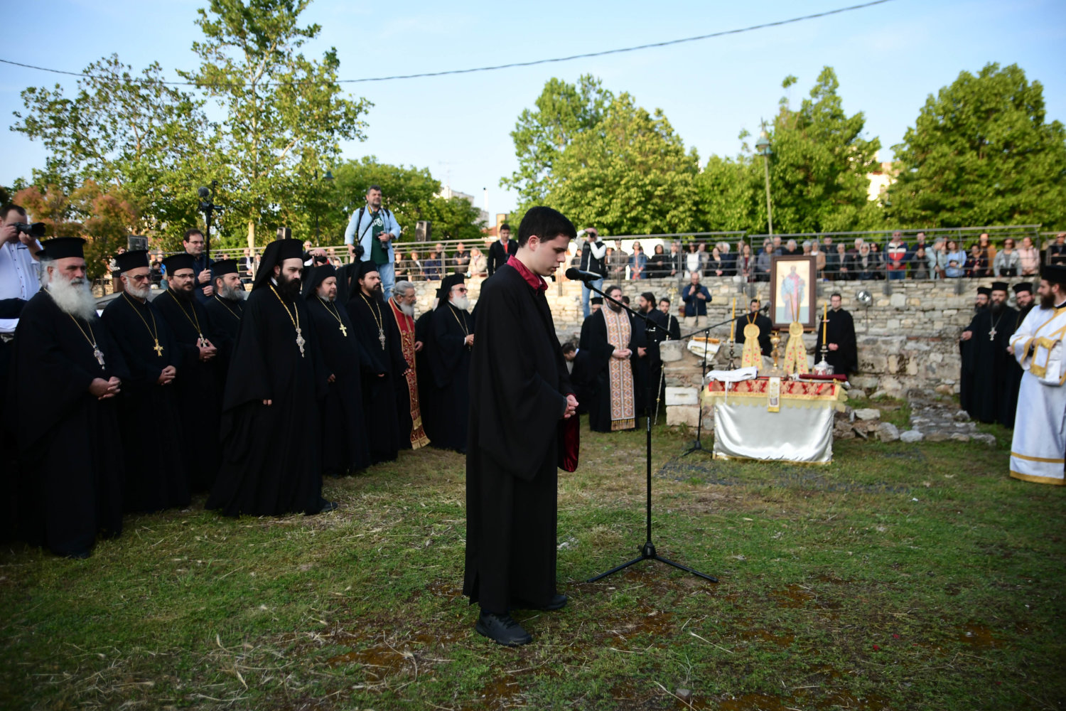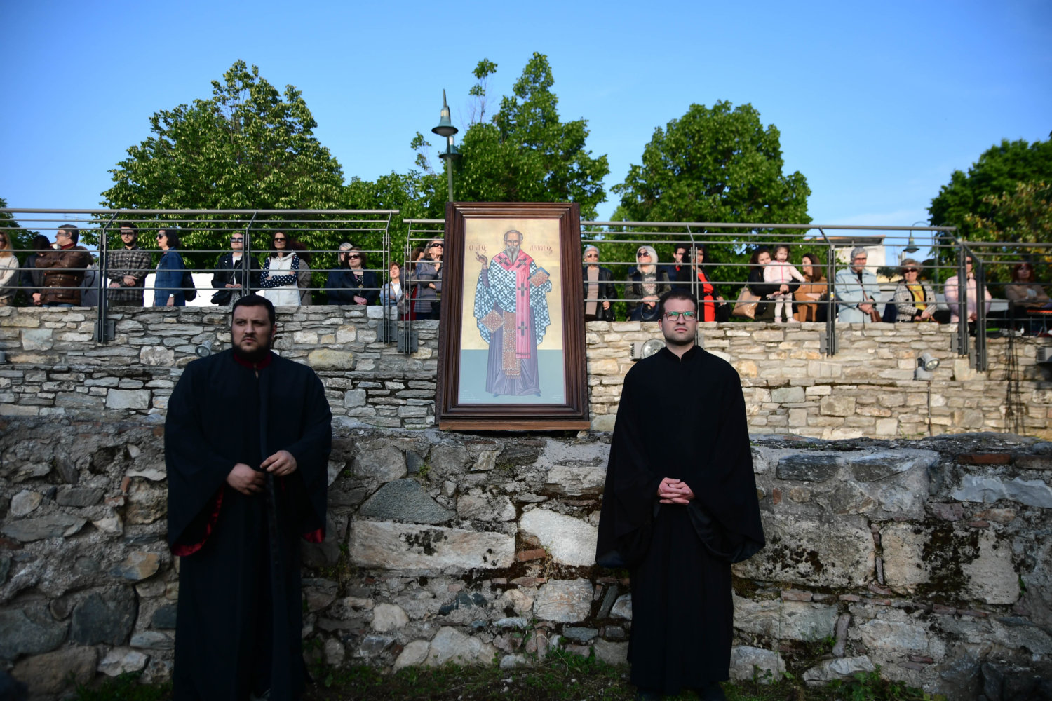 Πλήθος πιστών παρακολούθησε τον πανηγυρικό εσπερινό στο Λόφο του Φρουρίου ενώ πραγματοποιήθηκε λιτανευτική πομπή μέχρι τον Μητροπολιτικό Ναό και άνοιγμα της Λάρνακας των Ιερών του Λειψάνων.