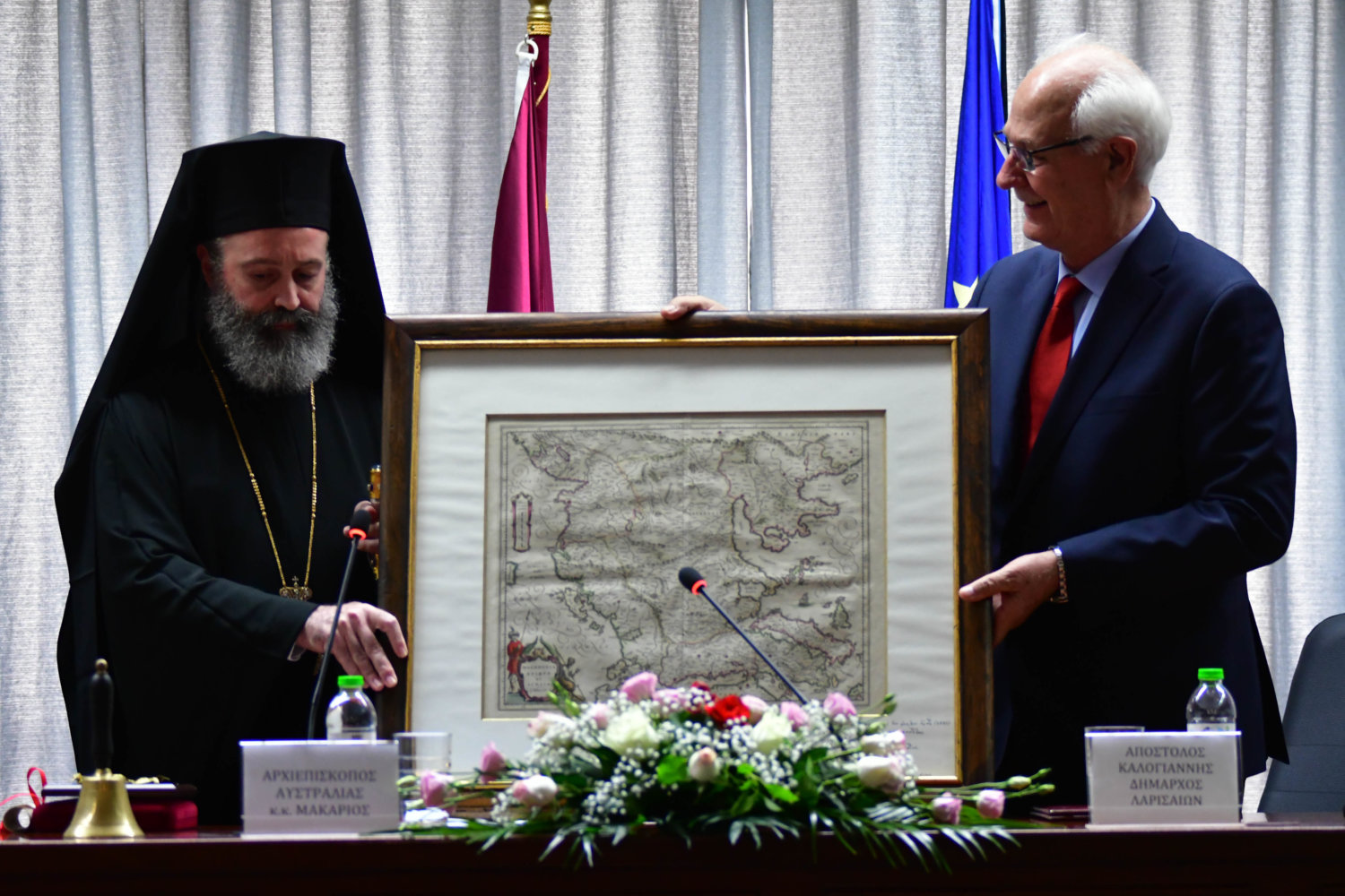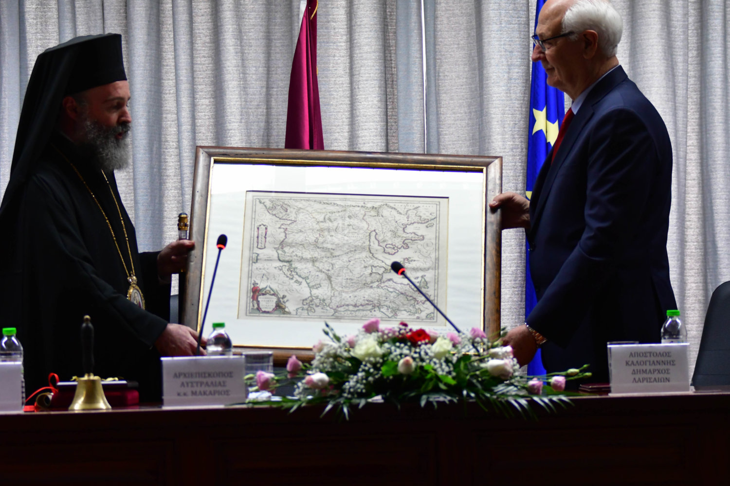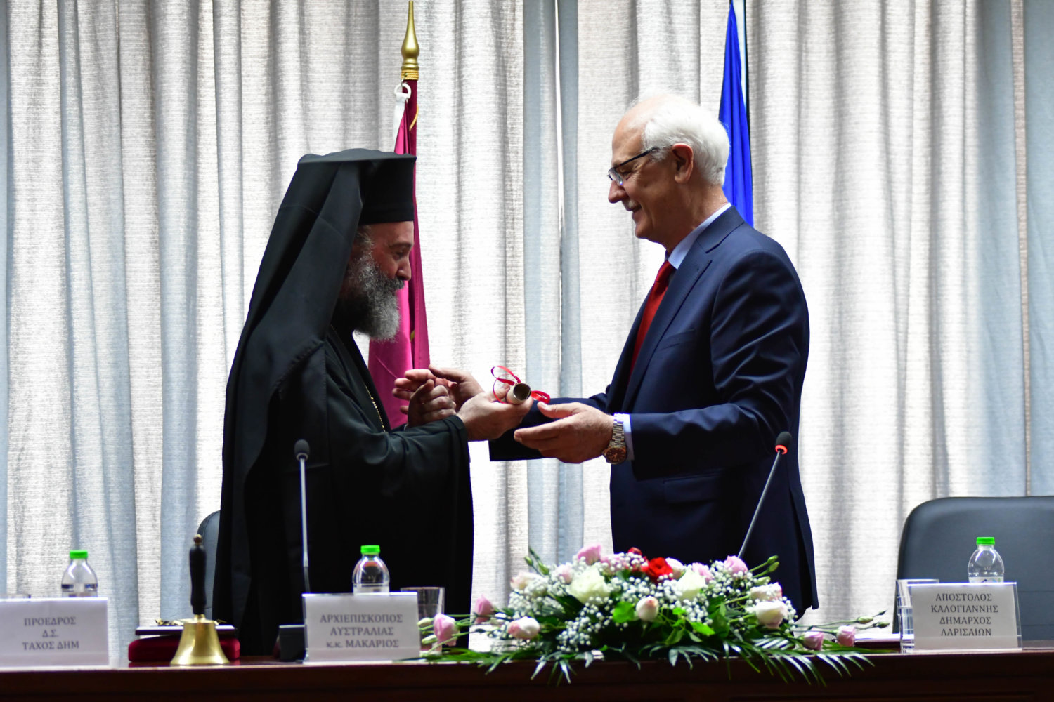 Μέσα σε κλίμα συγκίνησης πραγματοποιήθηκε η τελετή ανακήρυξης του Αρχιεπισκόπου Αυστραλίας Μακαρίου σε Επίτιμο Δημότη Δήμου Λαρισαίων.