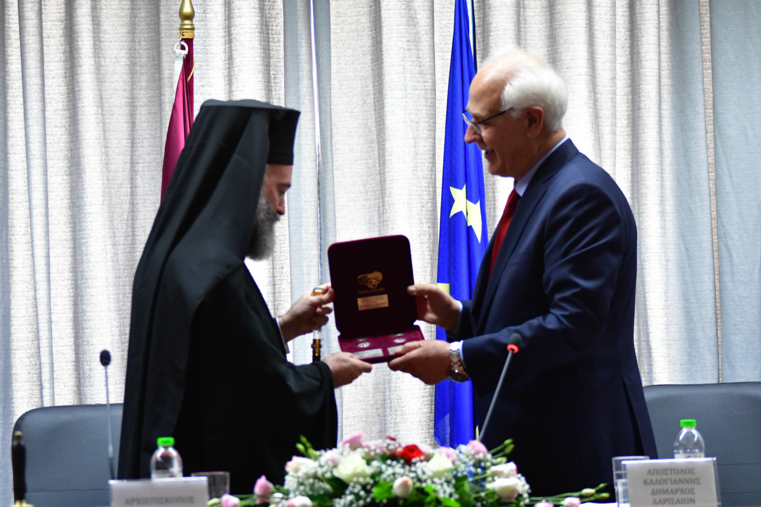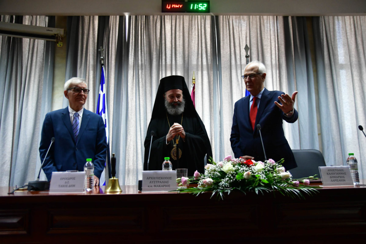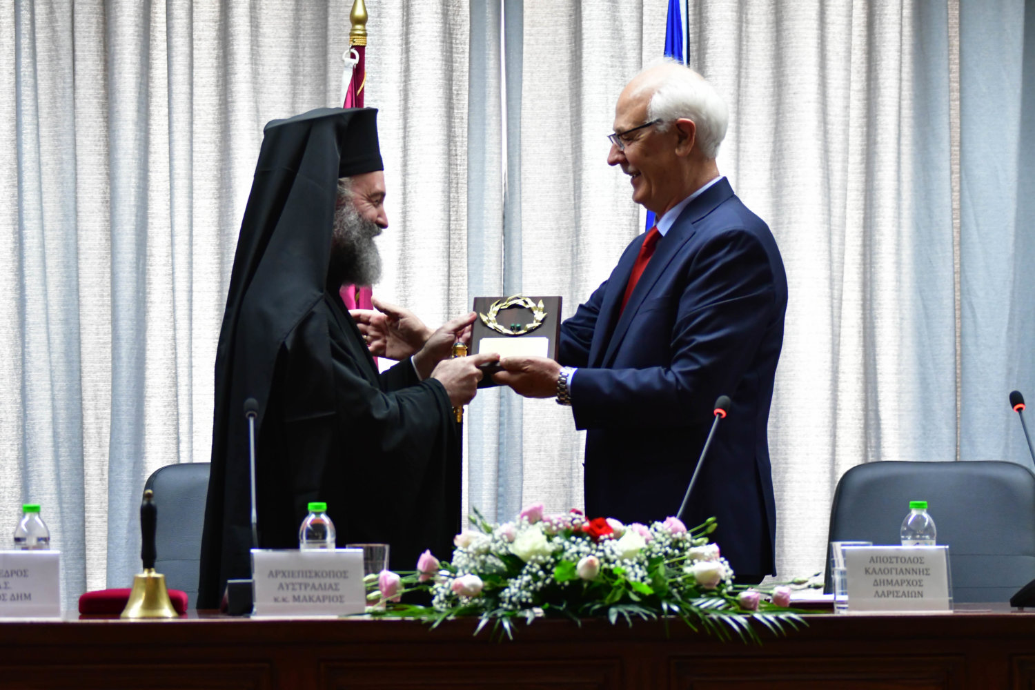 Μέσα σε κλίμα συγκίνησης πραγματοποιήθηκε η τελετή ανακήρυξης του Αρχιεπισκόπου Αυστραλίας Μακαρίου σε Επίτιμο Δημότη Δήμου Λαρισαίων.