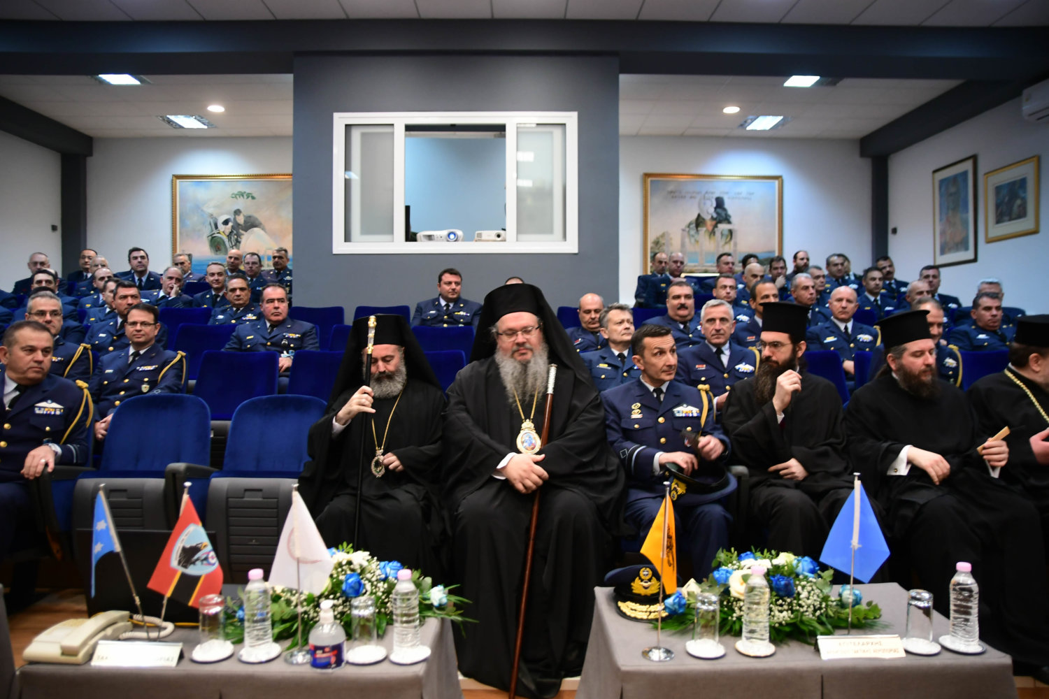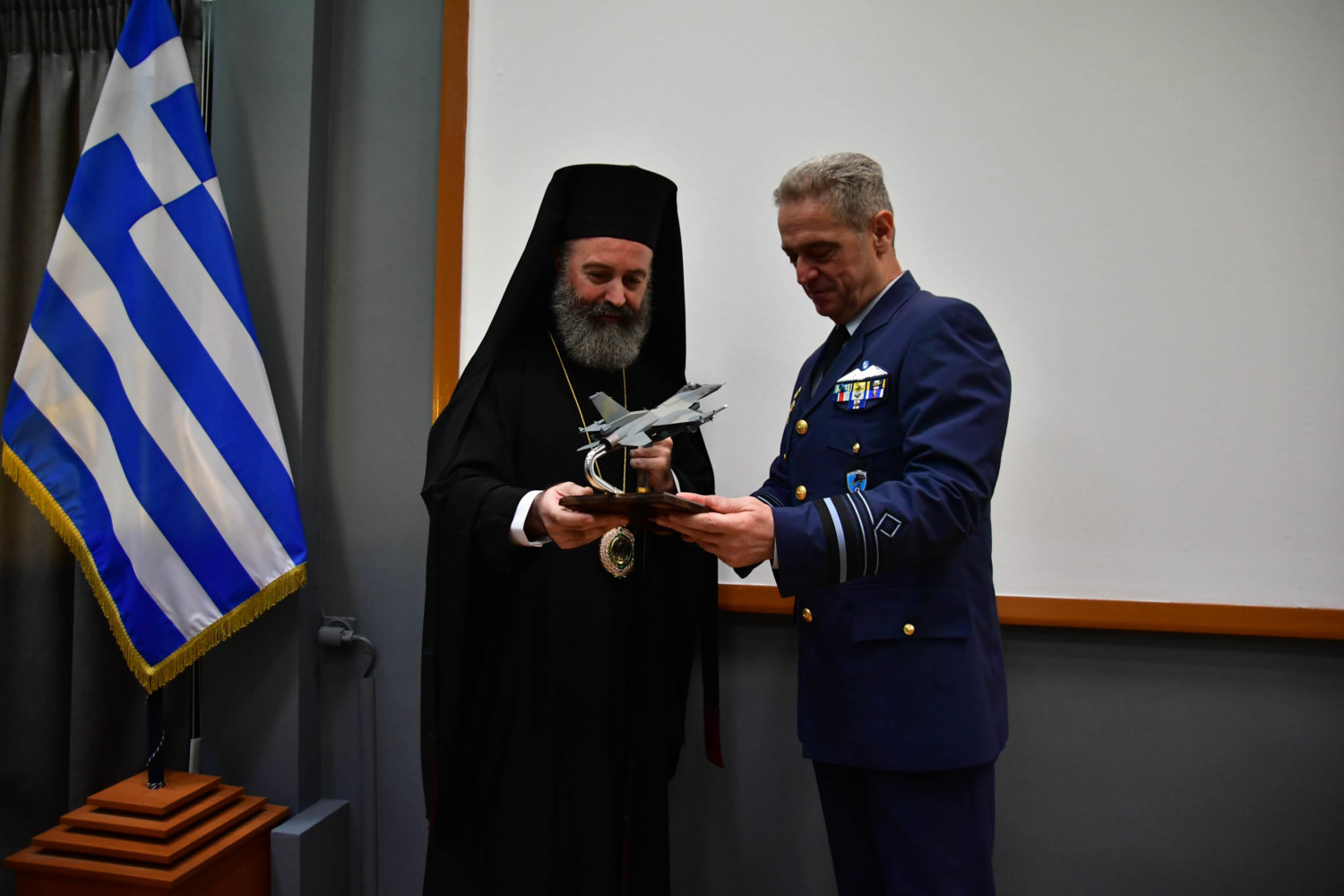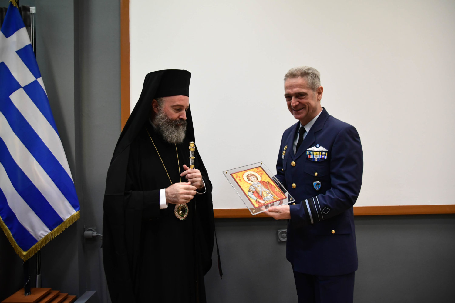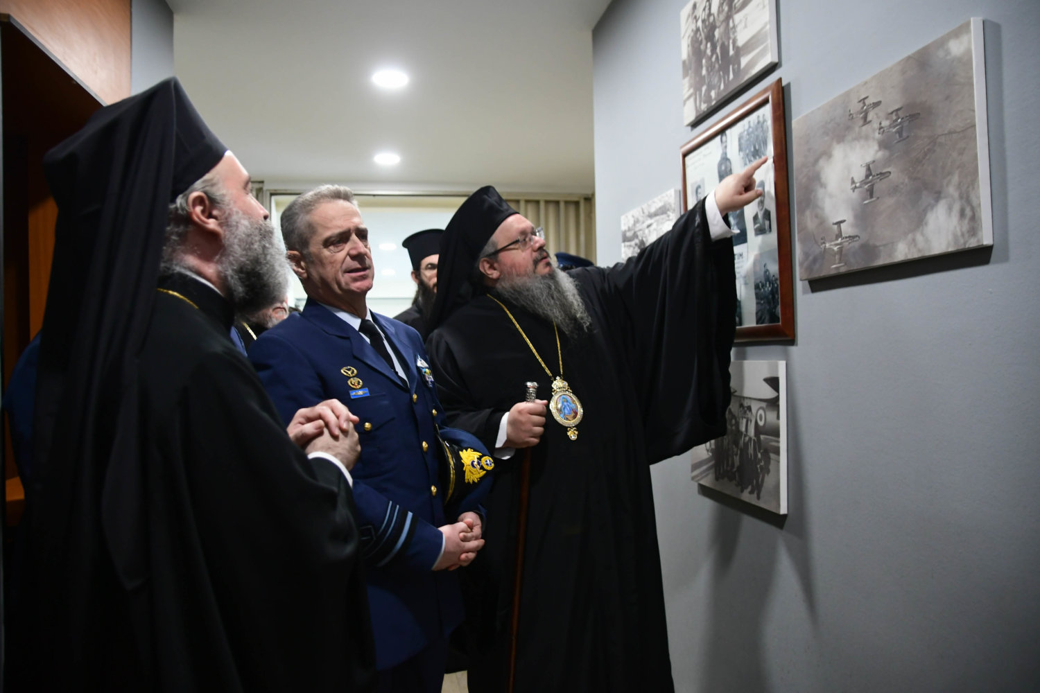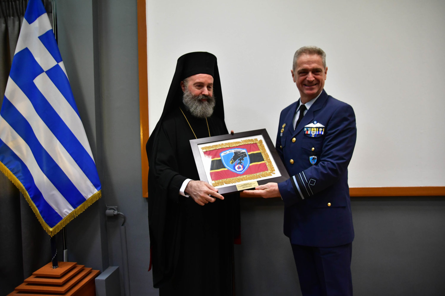 Τον Αρχιεπίσκοπο υποδέχθηκε ο Αρχηγός Τακτικής Αεροπορίας Γ. Φασούλας, ενώ στη συνέχεια ακολούθησε παρουσίαση των Ανώτατων Αξιωματικών και ενημέρωση για την αποστολή του Αρχηγείου.