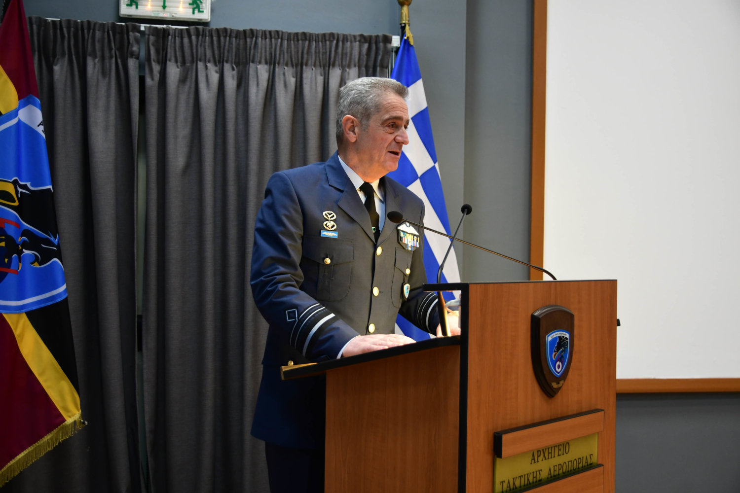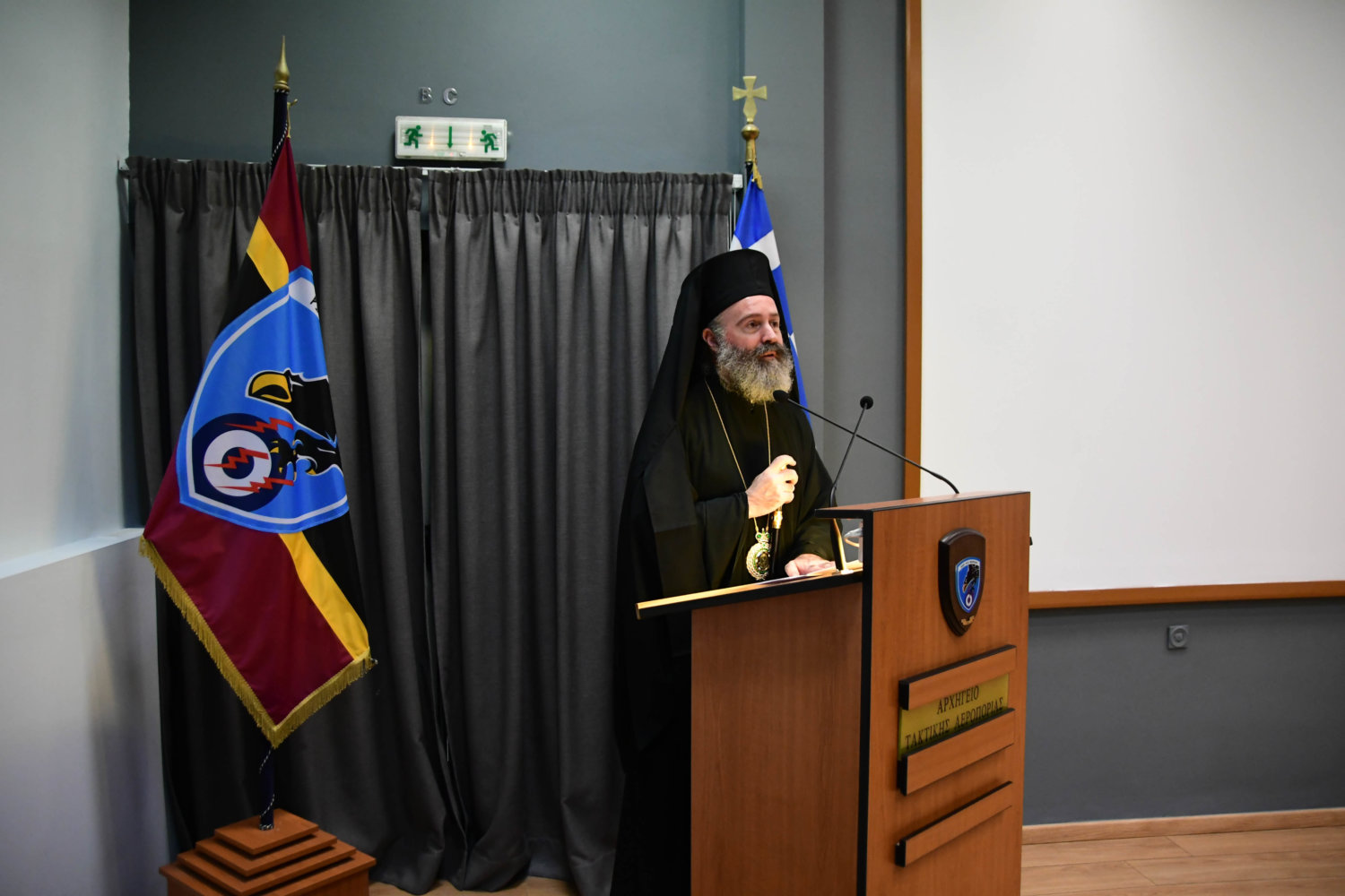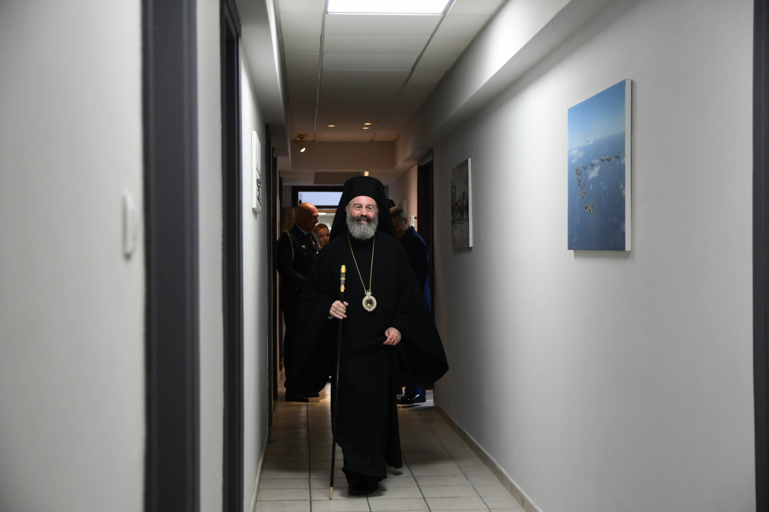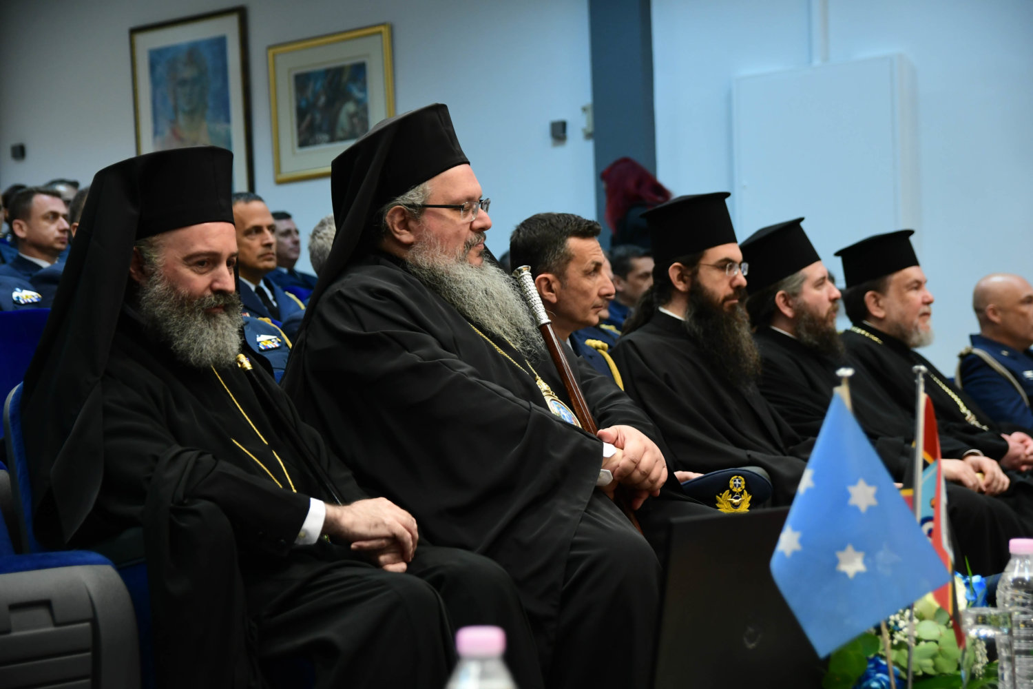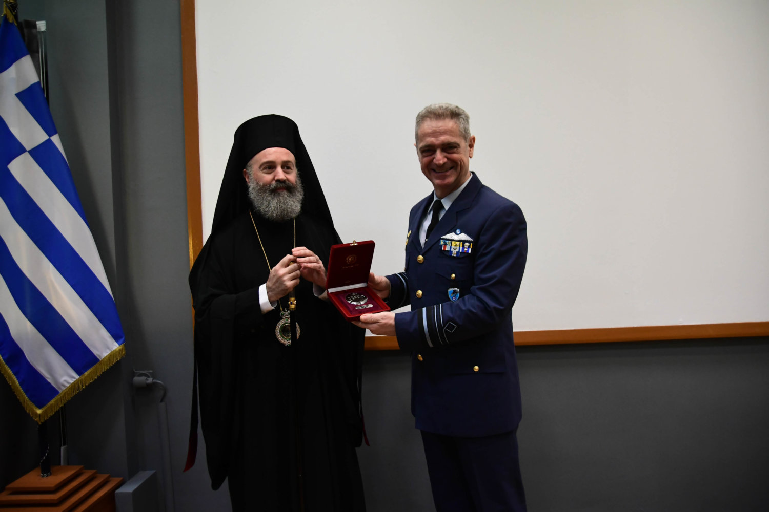 Τον Αρχιεπίσκοπο υποδέχθηκε ο Αρχηγός Τακτικής Αεροπορίας Γ. Φασούλας, ενώ στη συνέχεια ακολούθησε παρουσίαση των Ανώτατων Αξιωματικών και ενημέρωση για την αποστολή του Αρχηγείου.