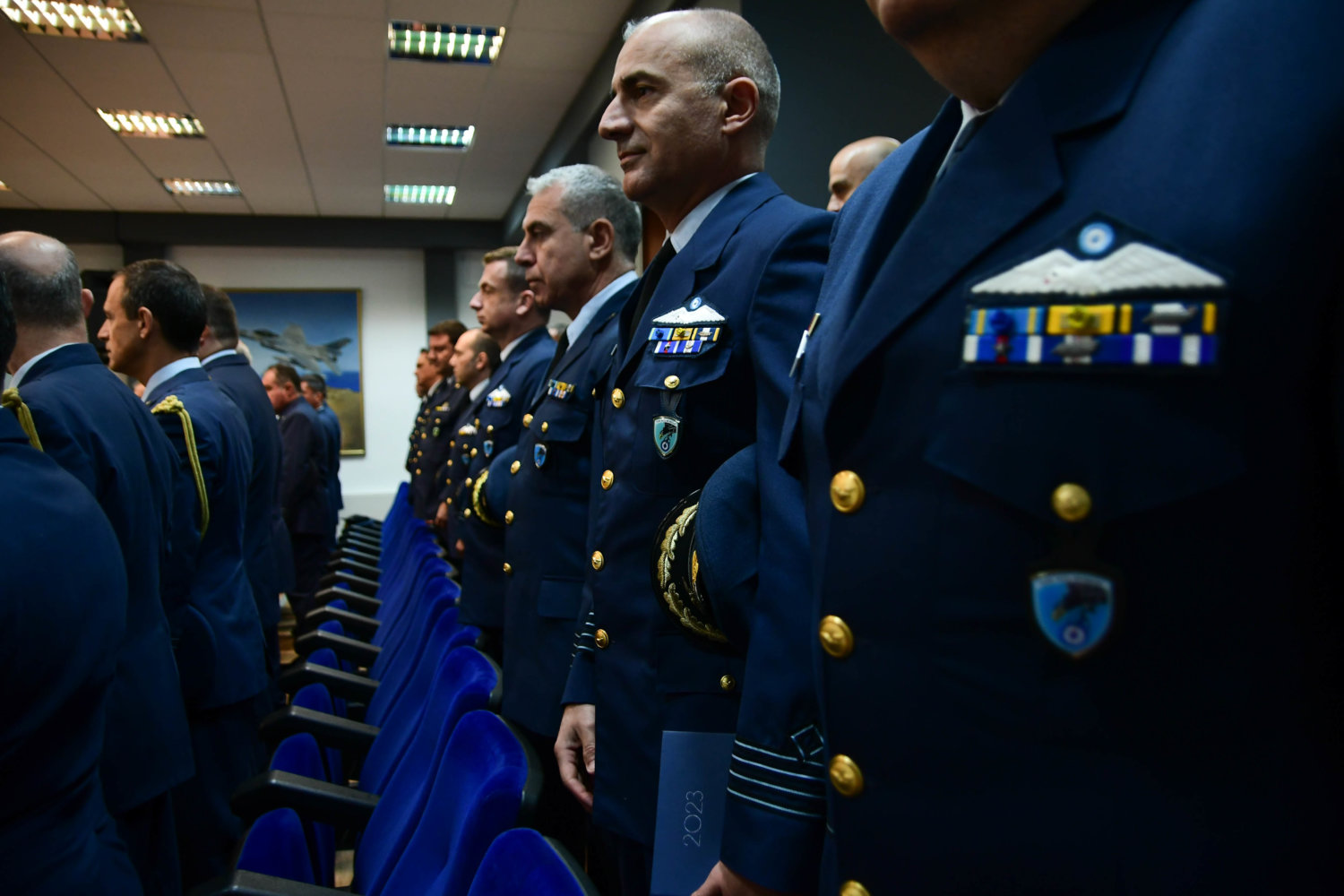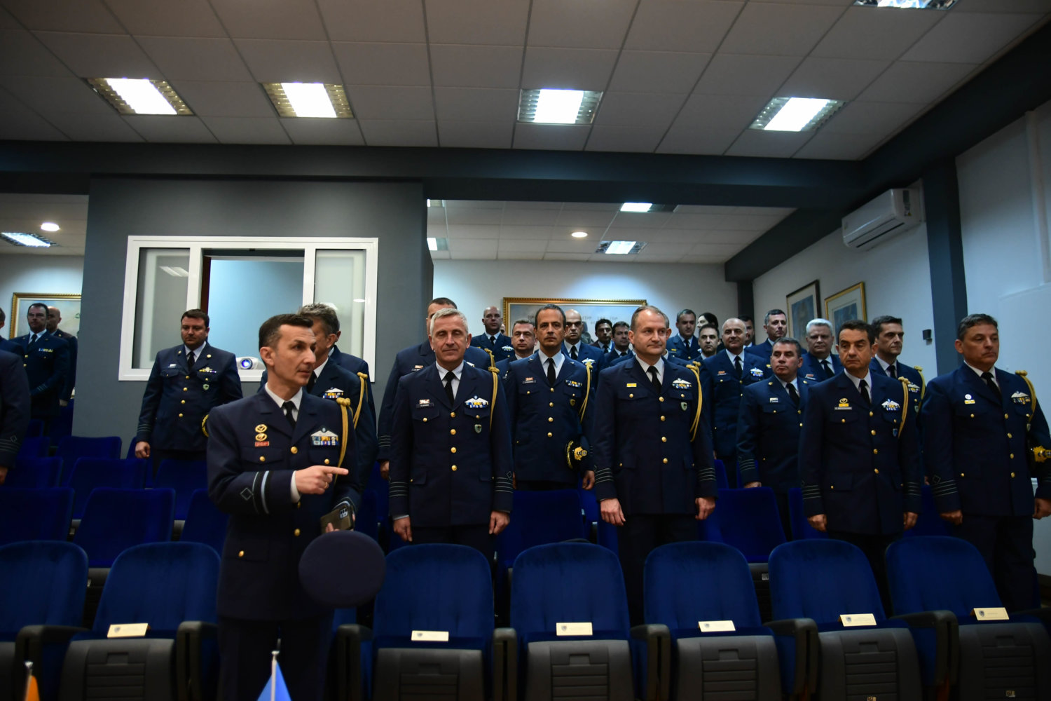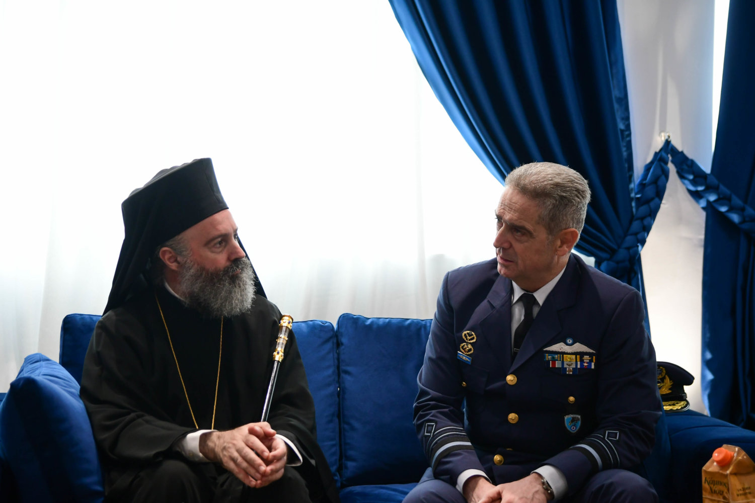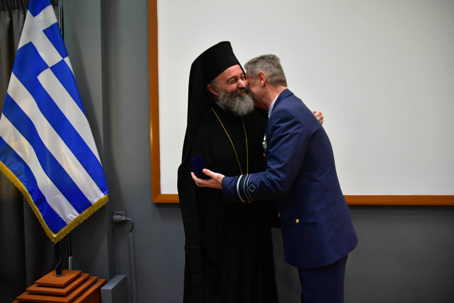 Τον Αρχιεπίσκοπο υποδέχθηκε ο Αρχηγός Τακτικής Αεροπορίας Γ. Φασούλας, ενώ στη συνέχεια ακολούθησε παρουσίαση των Ανώτατων Αξιωματικών και ενημέρωση για την αποστολή του Αρχηγείου.