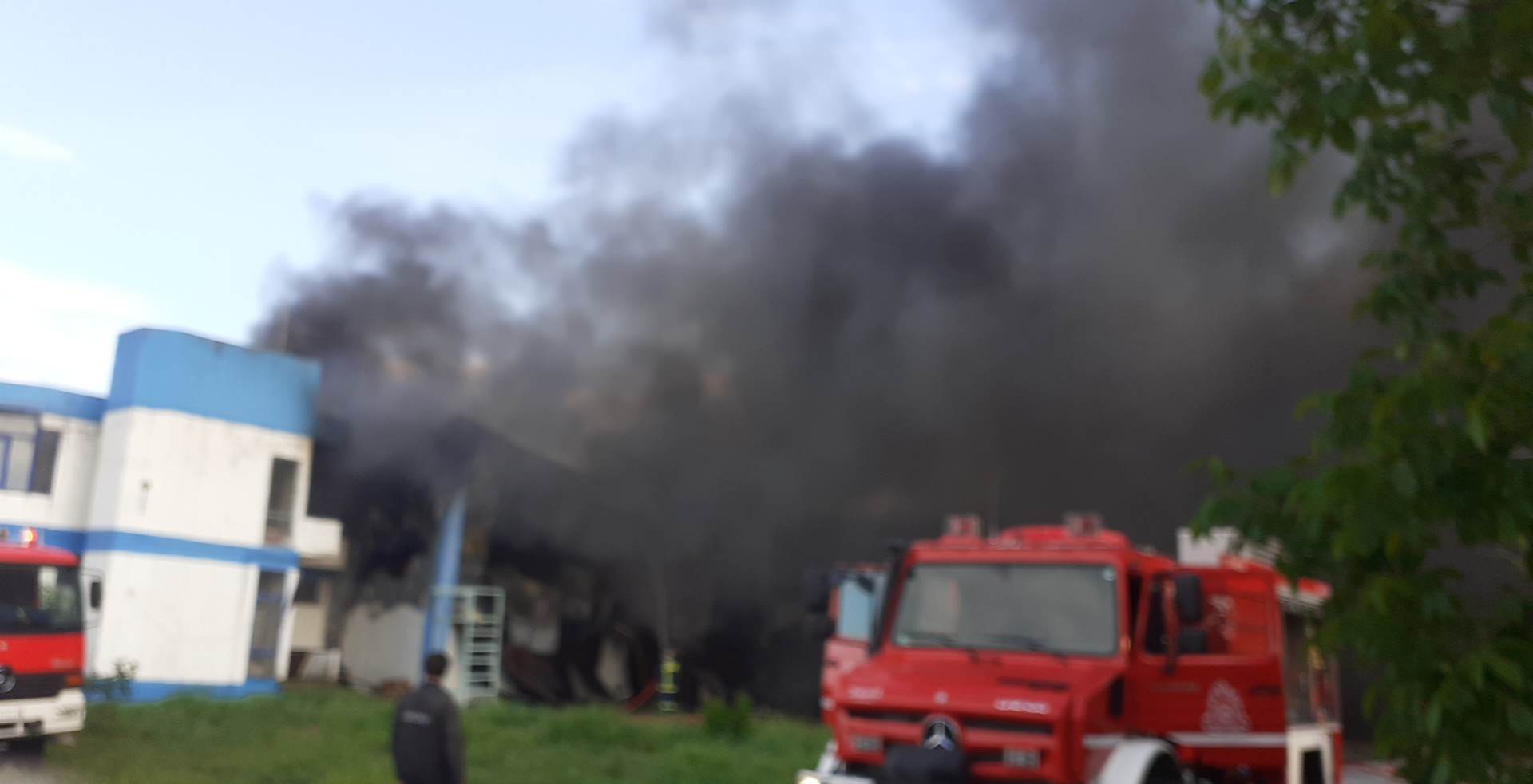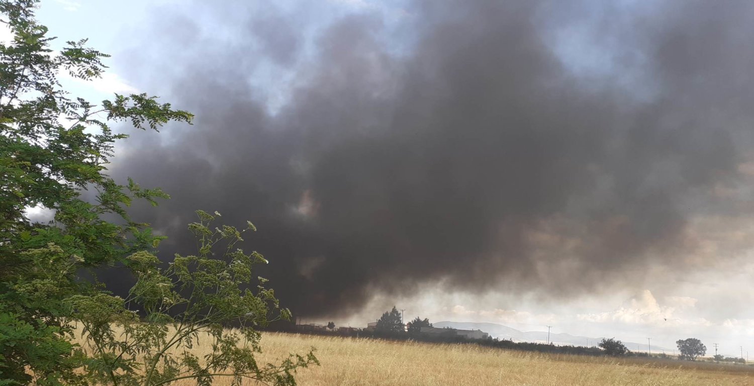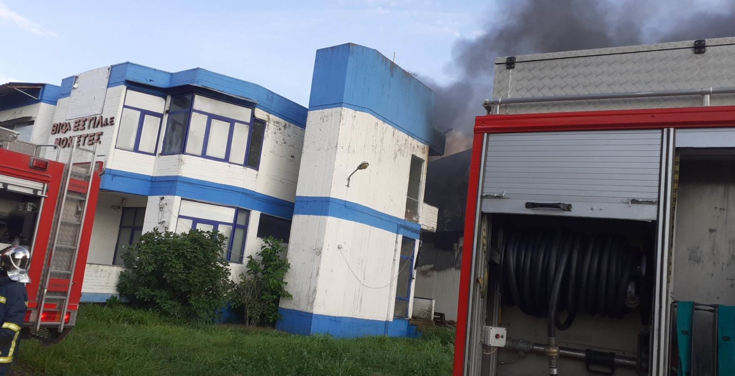 Στις φλόγες τυλίχθηκε παλιό εργοστάσιο μοκετών στην παλιά εθνική οδό Λάρισας – Βόλου, λίγο πριν τη διασταύρωση για Πλατύκαμπο.