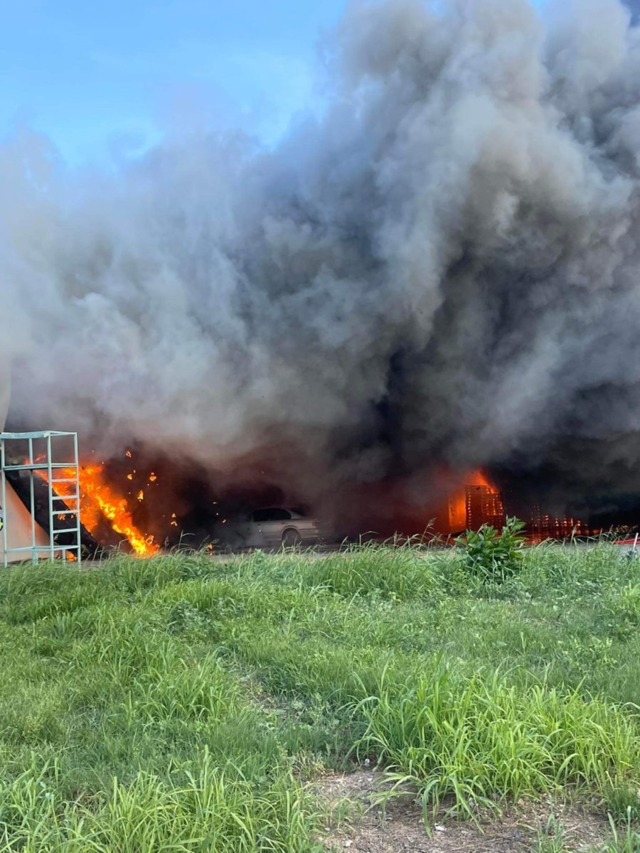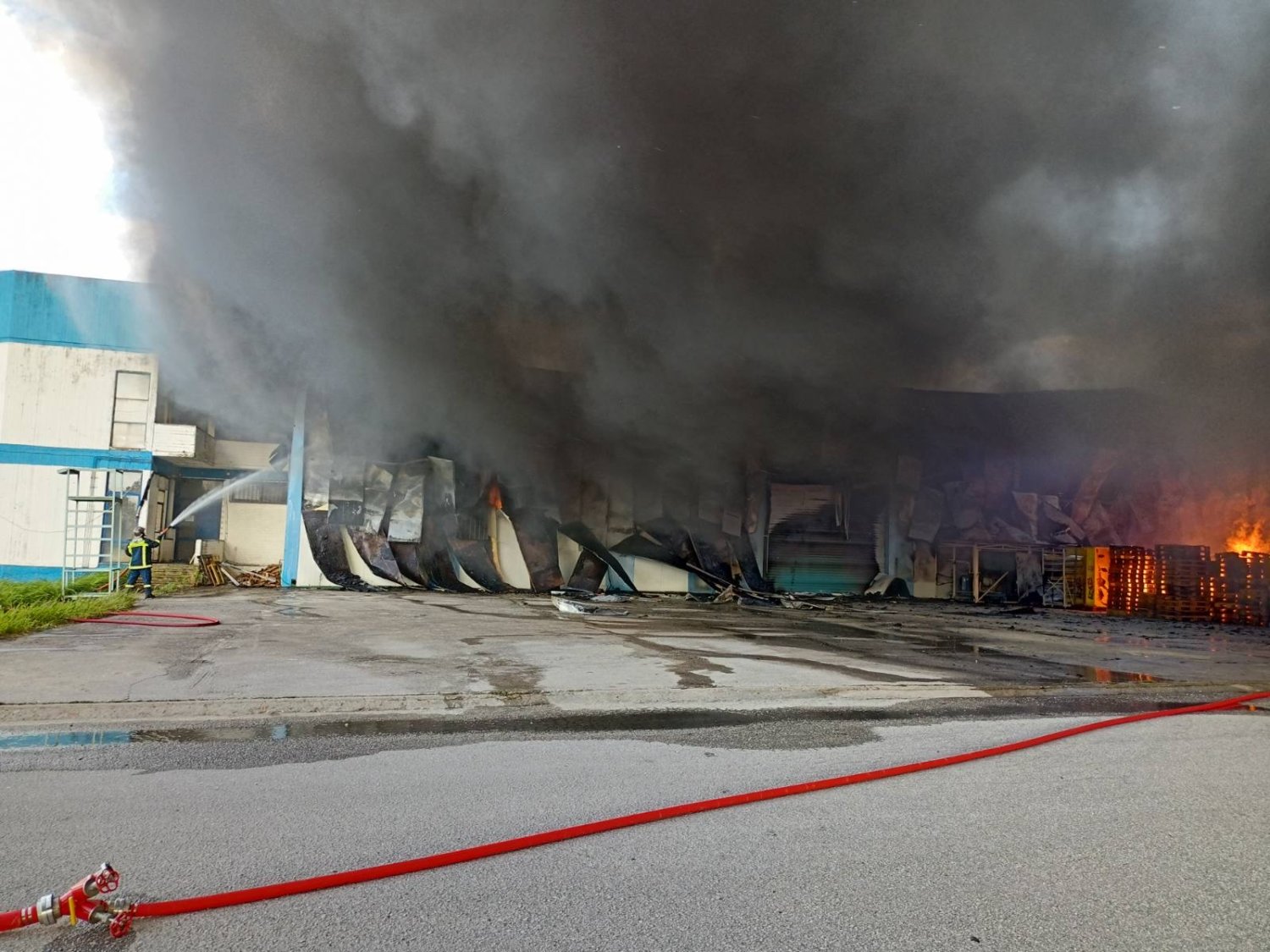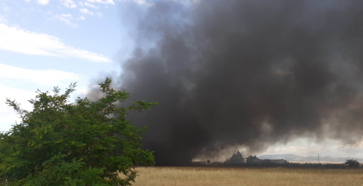 Στις φλόγες τυλίχθηκε παλιό εργοστάσιο μοκετών στην παλιά εθνική οδό Λάρισας – Βόλου, λίγο πριν τη διασταύρωση για Πλατύκαμπο.