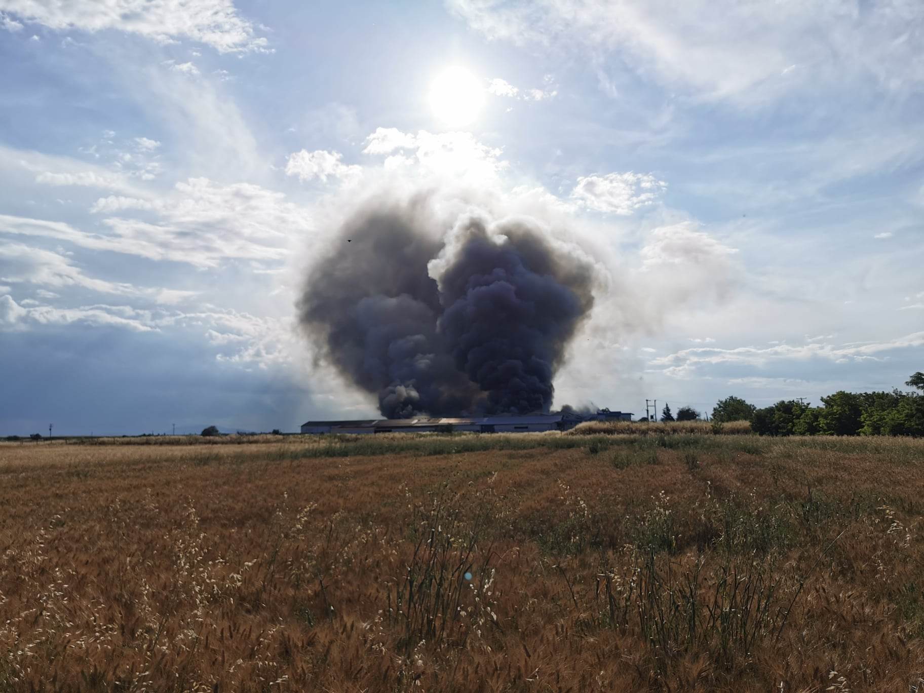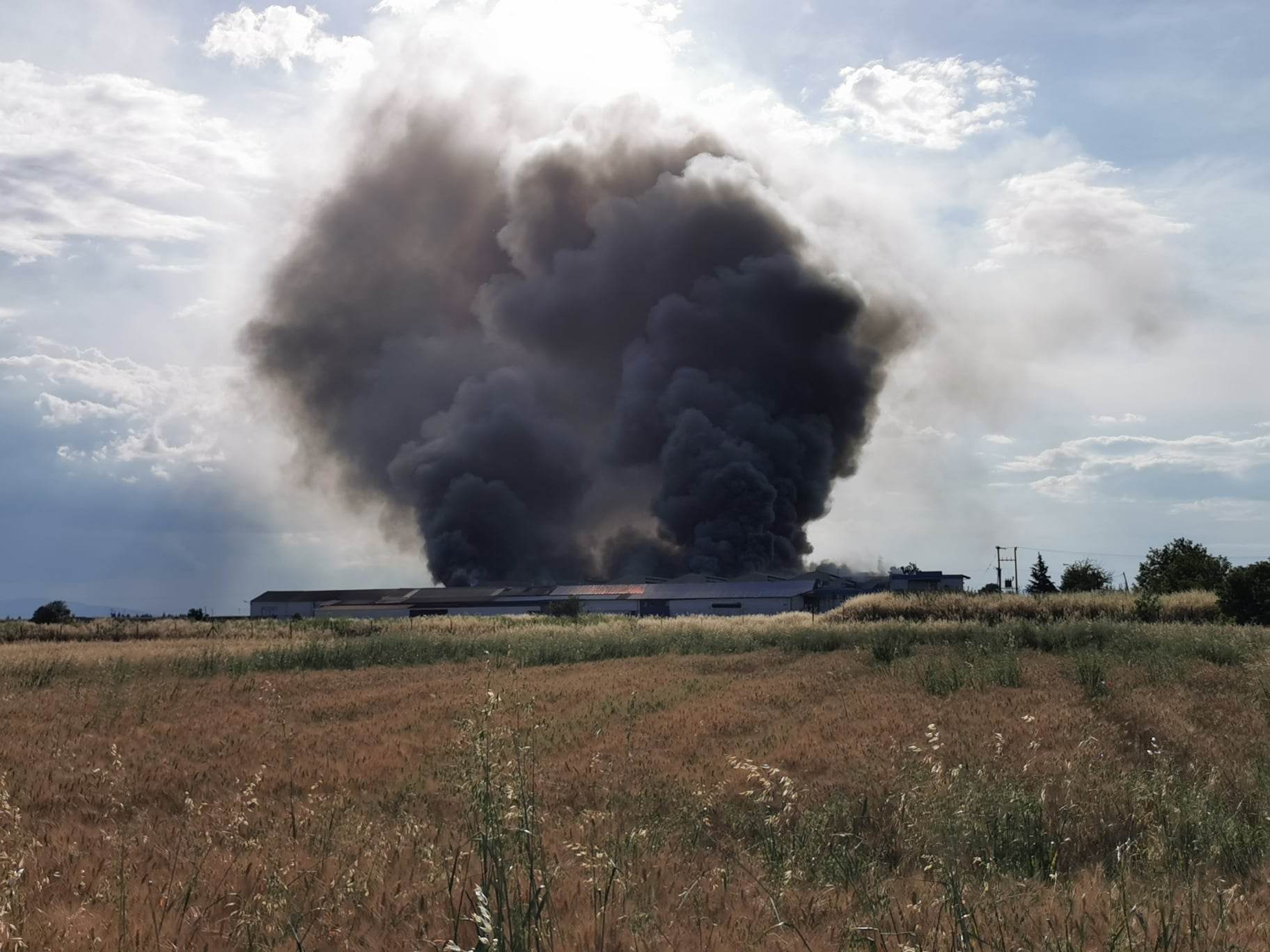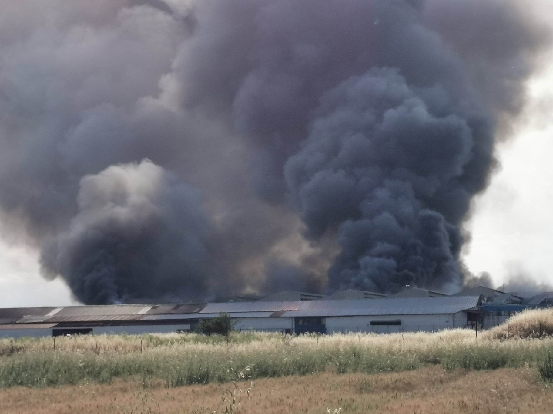 Μαύρισε ο ουρανός στη Λάρισα από την πυρκαγιά που ξέσπασε σε παλιό εργοστάσιο κατασκευής μοκετών λίγο έξω από την πόλη στον παλιό δρόμο για Βόλο στο ύψος του Πλατυκάμπου.
