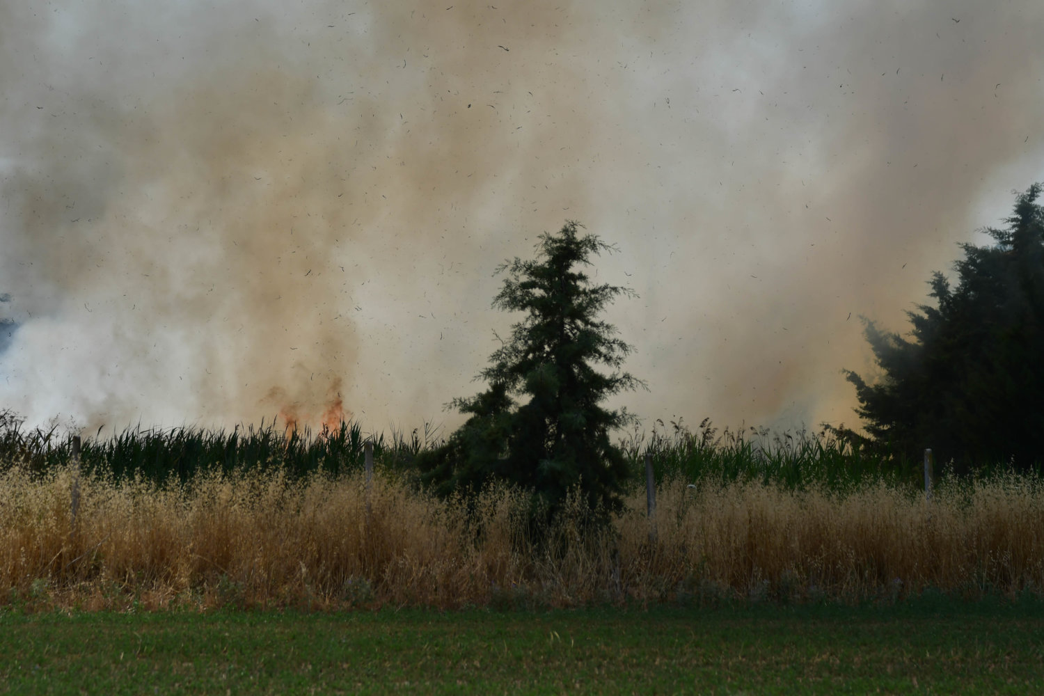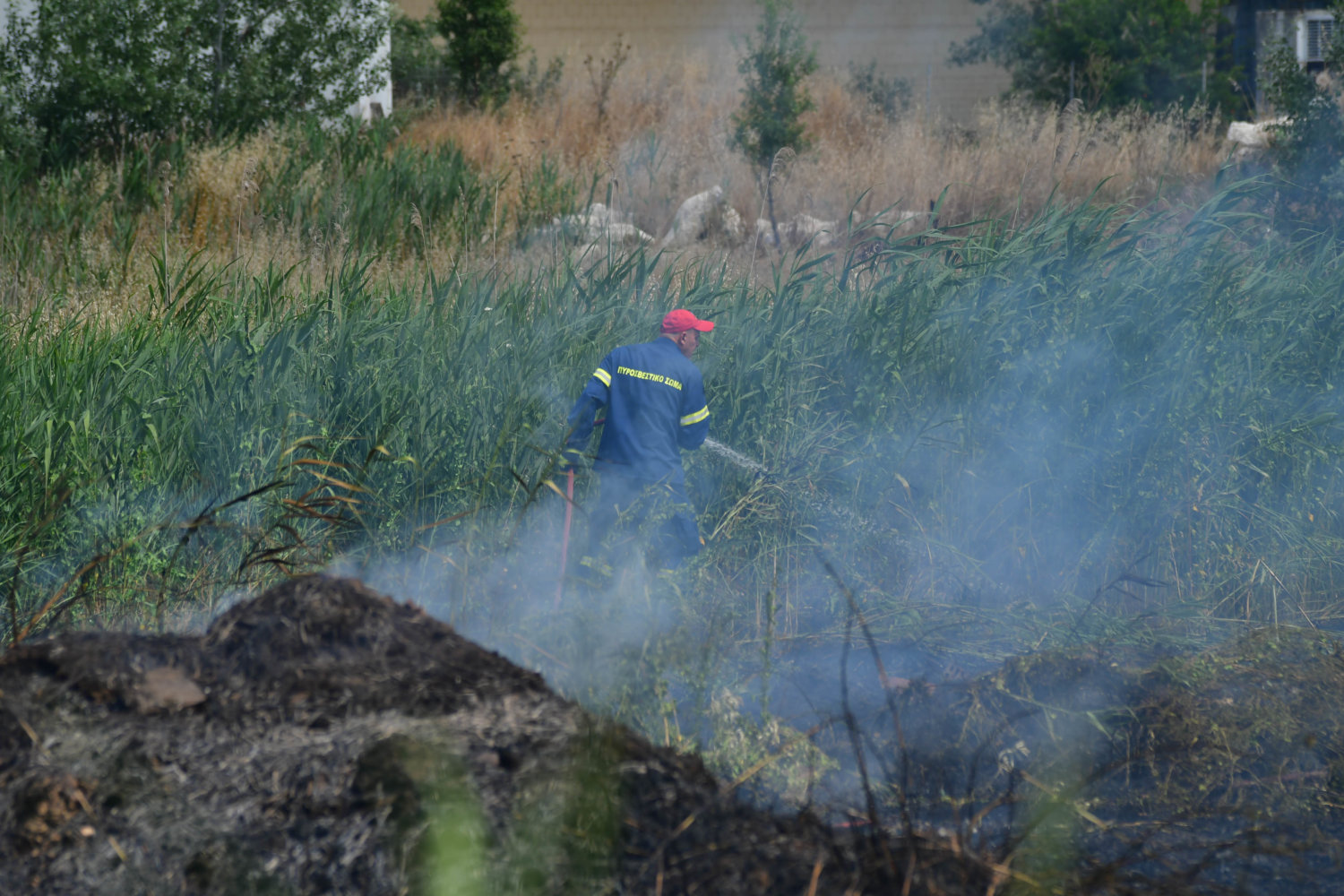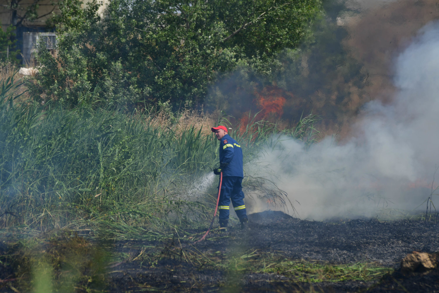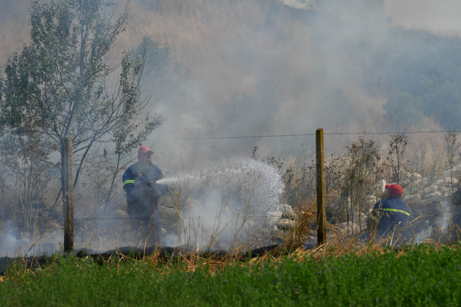 Στο σημείο βρίσκονται τέσσερα υδροφόρα οχήματα και 16 πυροσβέστες, αλλά και δυνάμεις της αστυνομίας για τη ρύθμιση της κυκλοφορίας.