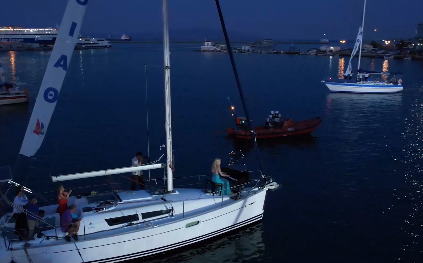 Ενα πιάνο πάνω σε Ιστιοπλοϊκό, περιτριγυρισμένο από άλλα 13 ιστιοπλοϊκα γεμάτα με χορευτές, οι οποίοι χόρεψαν στους ήχους του Ζορμπά!