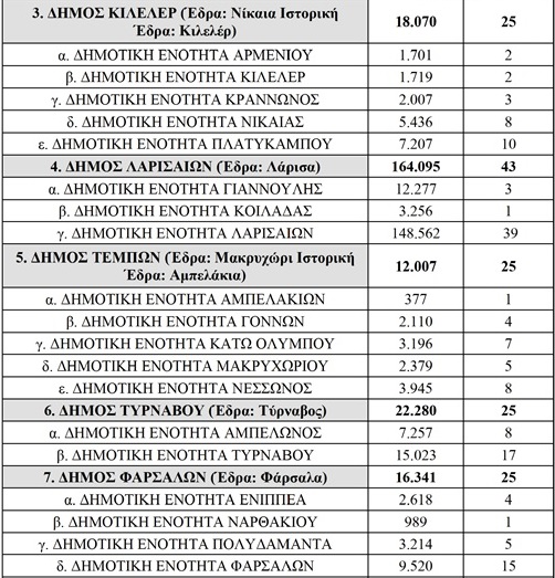 Δήμος Λαρισαίων: χάνει 6 έδρες από τις 49 των εκλογών του 2019, δηλαδή το νέο Δημοτικό Συμβούλιο θα έχει 43 μέλη.