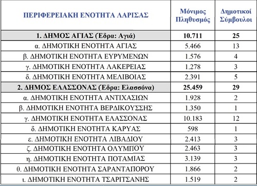 Δήμος Ελασσόνας: χάνει 12 έδρες από τις 41 των προηγούμενων εκλογών με 29 δημοτικούς συμβούλους .
