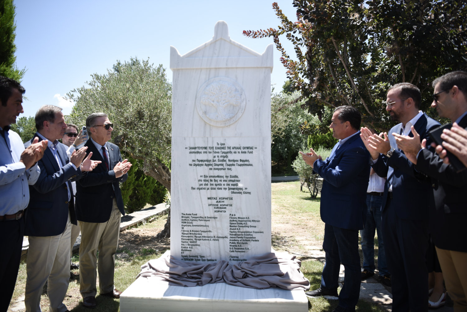 Η εκδήλωση έκλεισε με τη βράβευση των χορηγών, τη φύτευση ελιάς και την αποκάλυψη αναμνηστικής στήλης του έργου από τον Πρωθυπουργό, ενώ ακολούθησε φύτευση υπεραιωνόβιας ελιάς στον χώρο της εκδήλωσης.