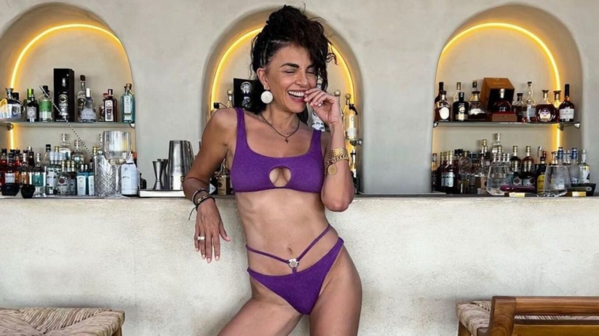 Έτσι λοιπόν και στην τελευταία της ανάρτηση φόρεσε το μωβ μπικίνι της και φωτογραφίζεται μπροστά από το μπαρ