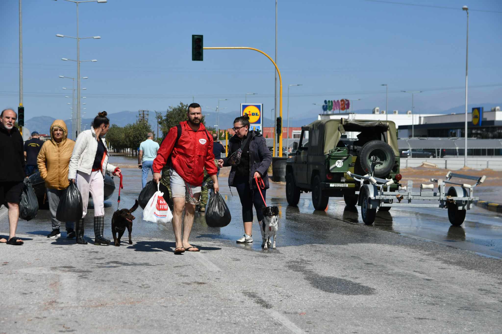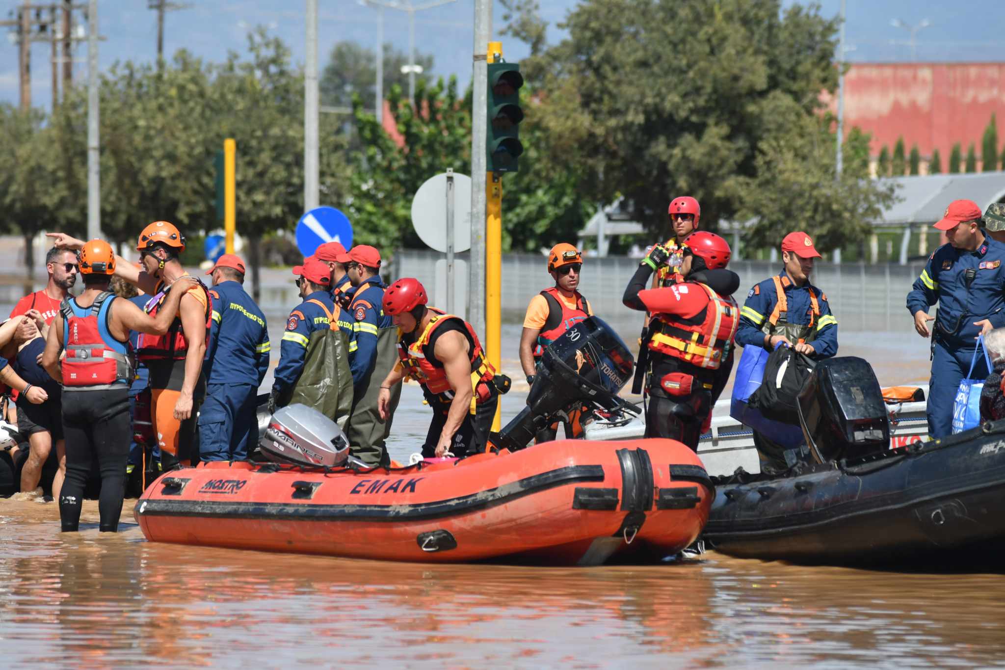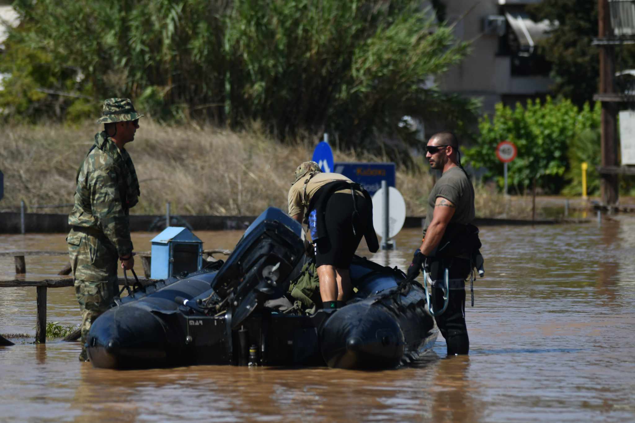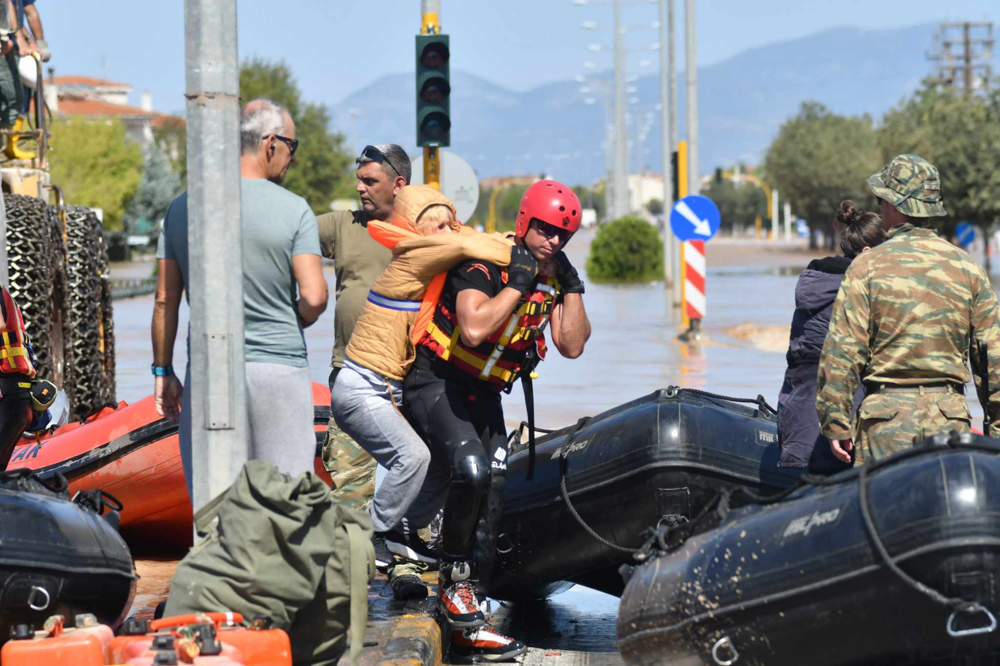Με αυταπάρνηση στελέχη των Ενόπλων Δυνάμεων και της Πυροσβεστικής κατευθύνονται με βάρκες μέσα στο συγκρότημα πολυκατοικιών, παραλαμβάνουν πολίτες που είχαν αποκλειστεί και στη συνέχεια με προσεκτικές κινήσεις τους βγάζουν σε σημεία όπου δεν υπάρχει νερό στο έδαφος.