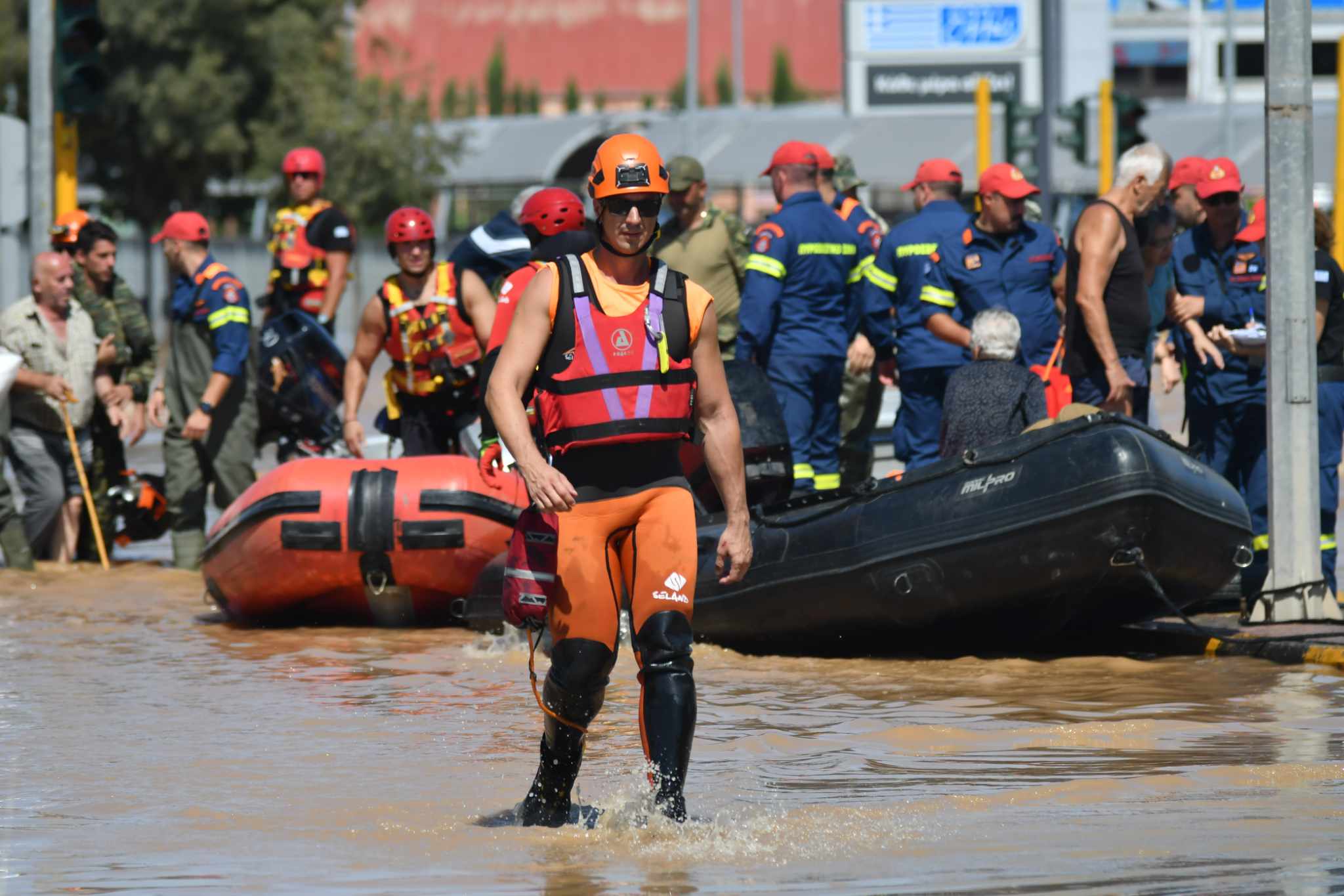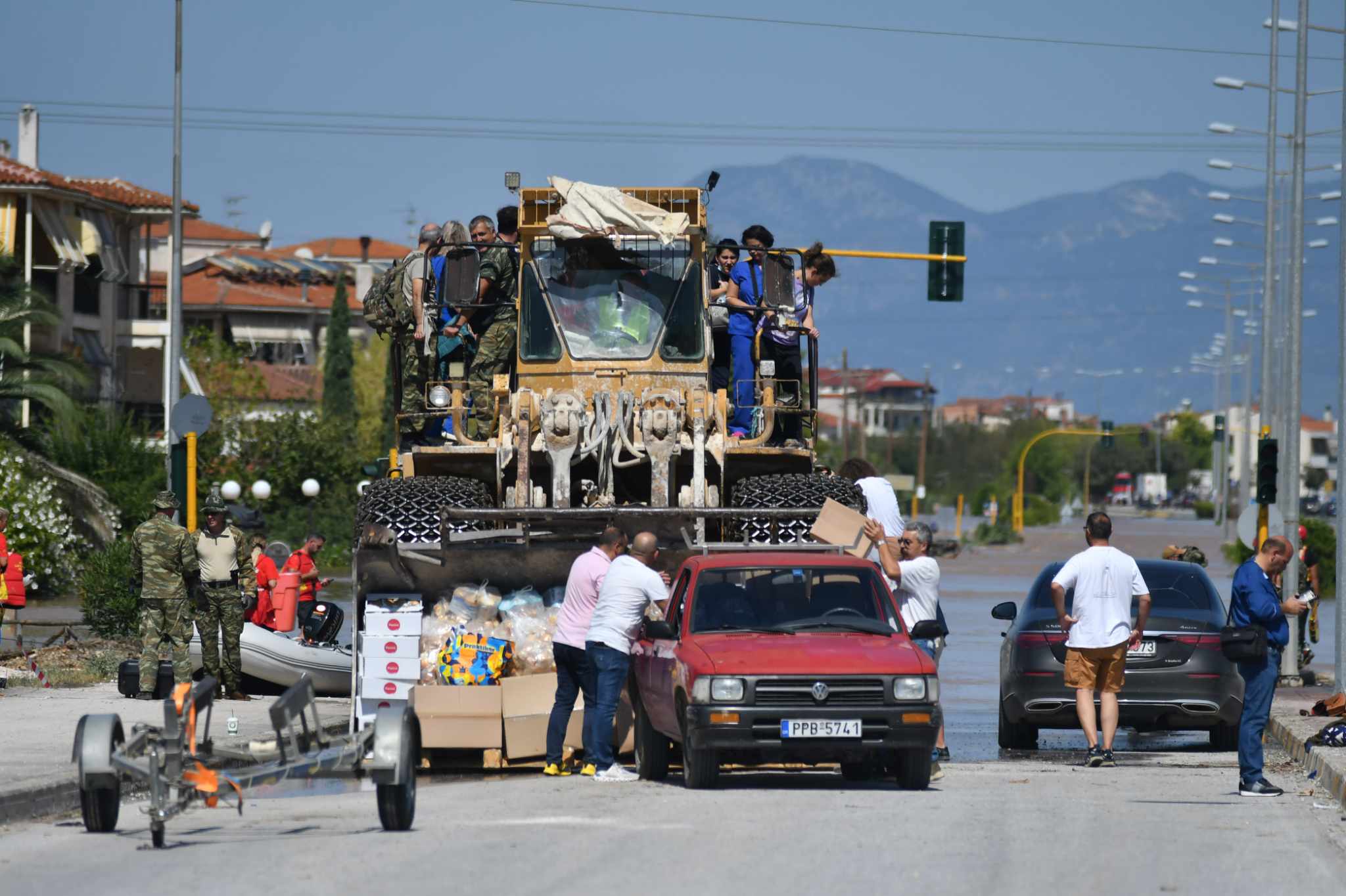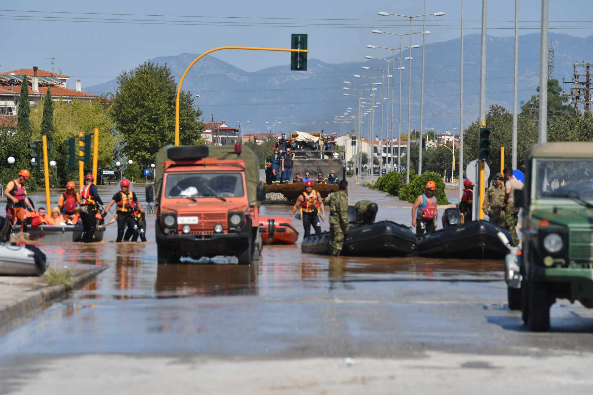 Με αυταπάρνηση στελέχη των Ενόπλων Δυνάμεων και της Πυροσβεστικής κατευθύνονται με βάρκες μέσα στο συγκρότημα πολυκατοικιών, παραλαμβάνουν πολίτες που είχαν αποκλειστεί και στη συνέχεια με προσεκτικές κινήσεις τους βγάζουν σε σημεία όπου δεν υπάρχει νερό στο έδαφος.