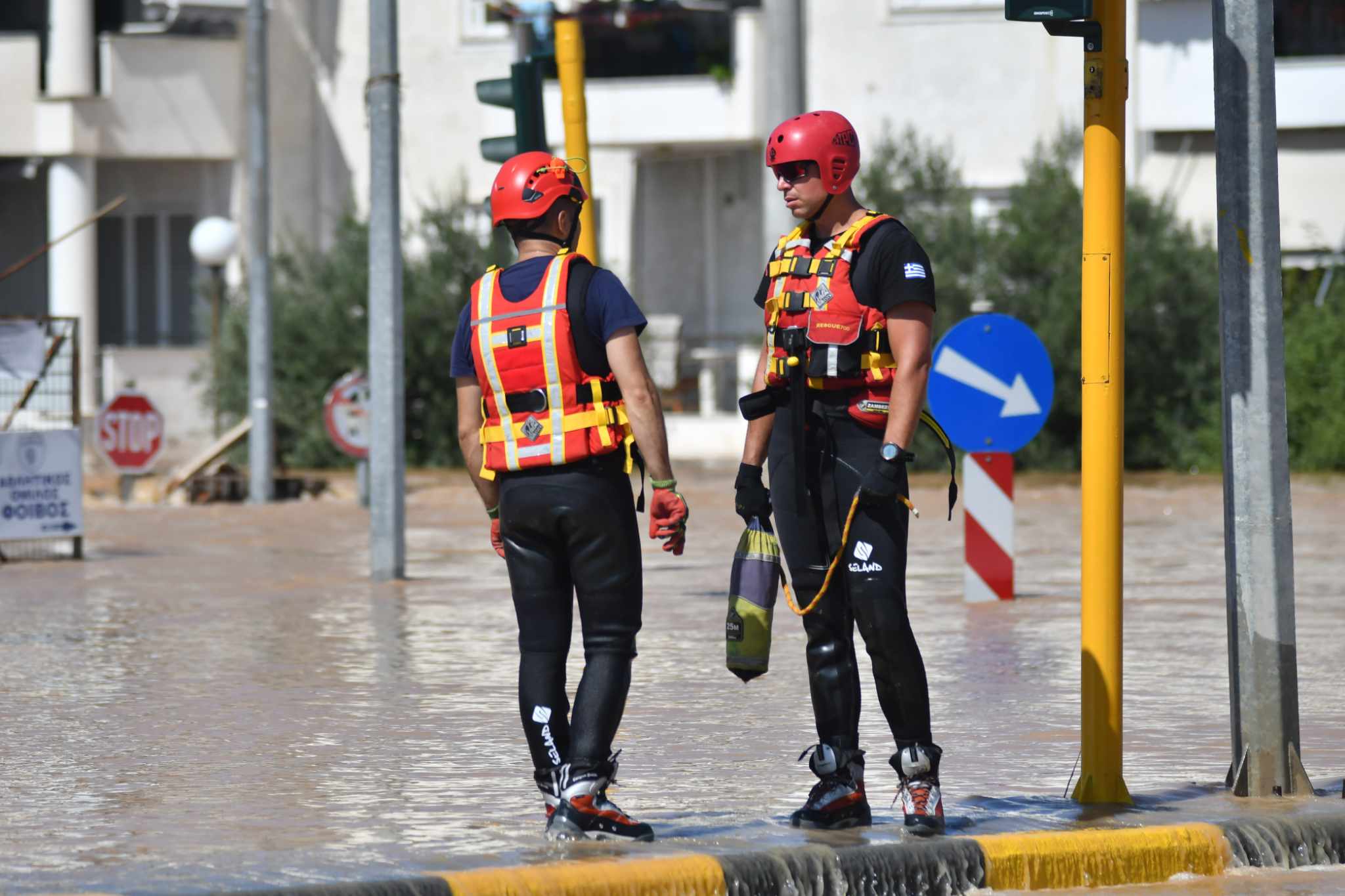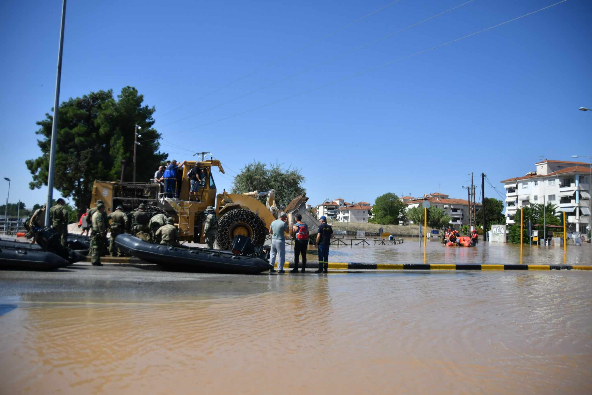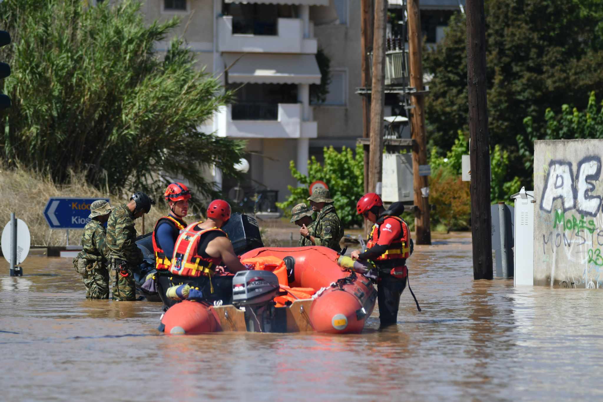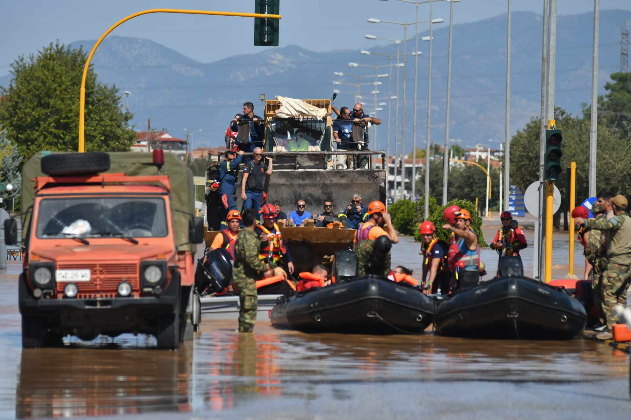 Με αυταπάρνηση στελέχη των Ενόπλων Δυνάμεων και της Πυροσβεστικής κατευθύνονται με βάρκες μέσα στο συγκρότημα πολυκατοικιών, παραλαμβάνουν πολίτες που είχαν αποκλειστεί και στη συνέχεια με προσεκτικές κινήσεις τους βγάζουν σε σημεία όπου δεν υπάρχει νερό στο έδαφος.