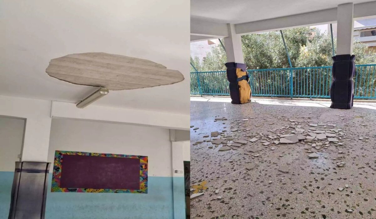 Τρία παιδιά χτύπησαν από την πτώση των σοβάδων στο Δημοτικό Σχολείο των Πετραλώνων, αλλά ευτυχώς τα τραύματά τους ήταν ελαφρά.