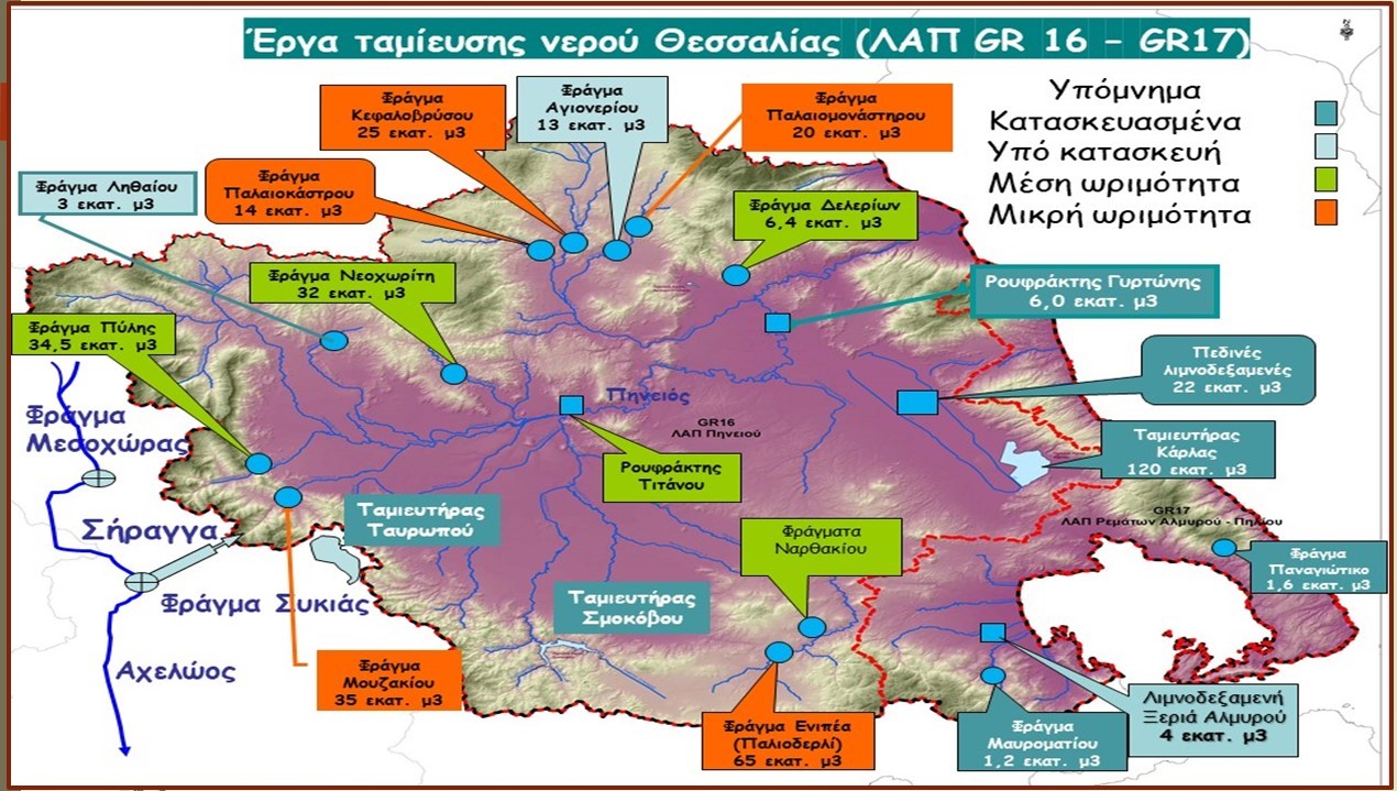 Δυστυχώς όμως, η Θεσσαλία σήμερα διαθέτει ελάχιστα παρόμοια έργα, με συνολική χωρητικότητα κατά πολύ μικρότερη από εκείνη που οι γεωμορφολογικές της συνθήκες επιτρέπουν, και πάλι με διαχρονική ευθύνη όσων (από τους τοπικούς φορείς της αυτοδιοίκησης) δεν αγωνίζονται και δεν ασκούν πίεση προς την κεντρική εξουσία.