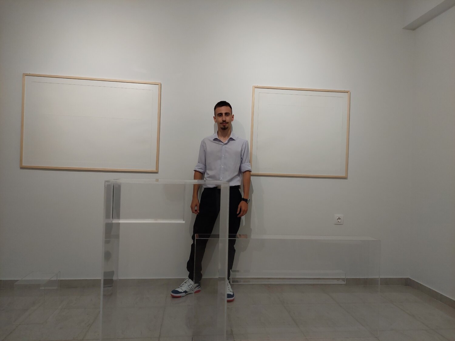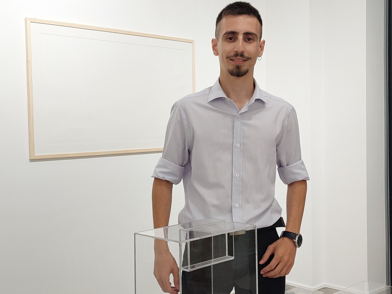 Όπως δήλωσε μεταξύ άλλων ο νεαρός εικαστικός στo larissanet.gr «η έκθεση αποτελείται απο 8 κατασκευές με διαφανές πλεξιγκλας οι οποίες συνομιλούν κυρίως με το χώρο. Διαπραγματεύονται την έννοια του κενού, του αφανούς».